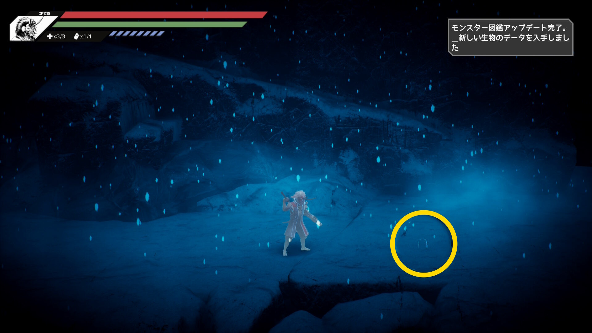 - 下におりたら右に進み、間隙を飛び越えるとユキオンナが1体出現