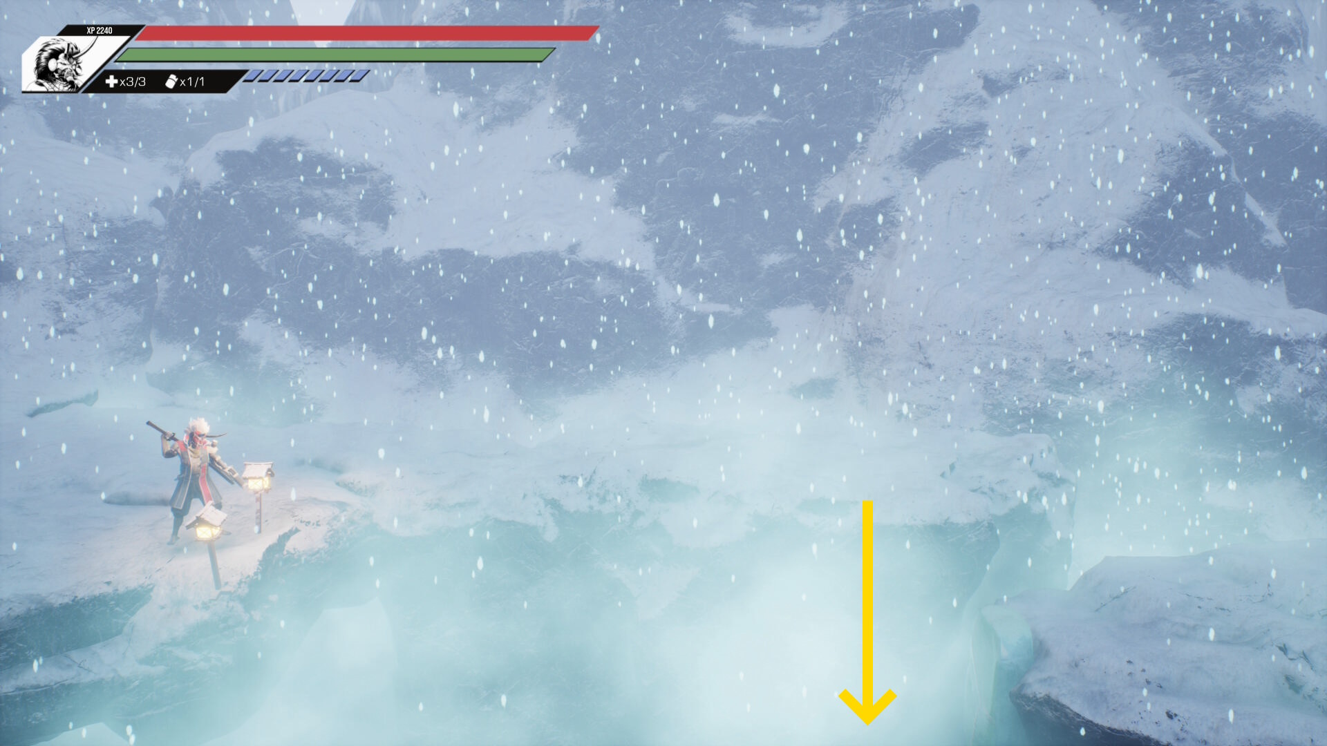 - ジャンプして次の足場に移動するとユキオンナが1体出現