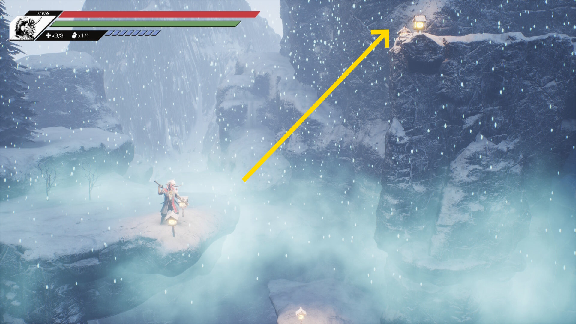 - その場合、エリア右端の壁に設置されたグリップポイントを登れば、いつでもシラヌイがいる上層に戻れる