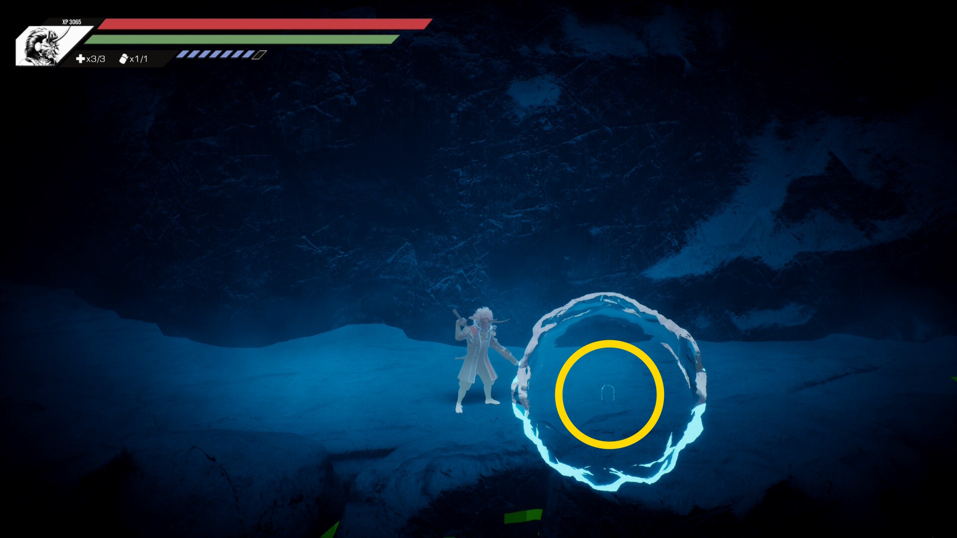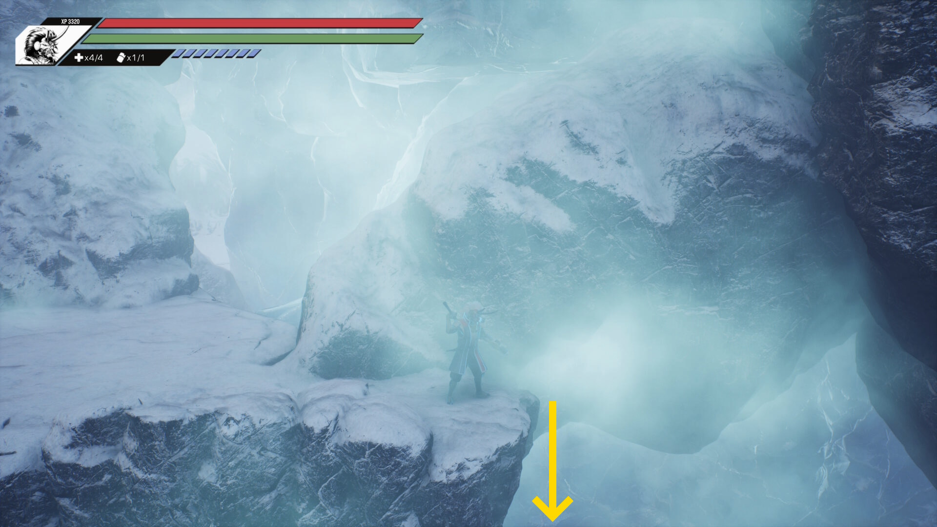 - 右に進むと行き止まりだが、上層に登ることができ、旧データの氷の中に回復キットあり