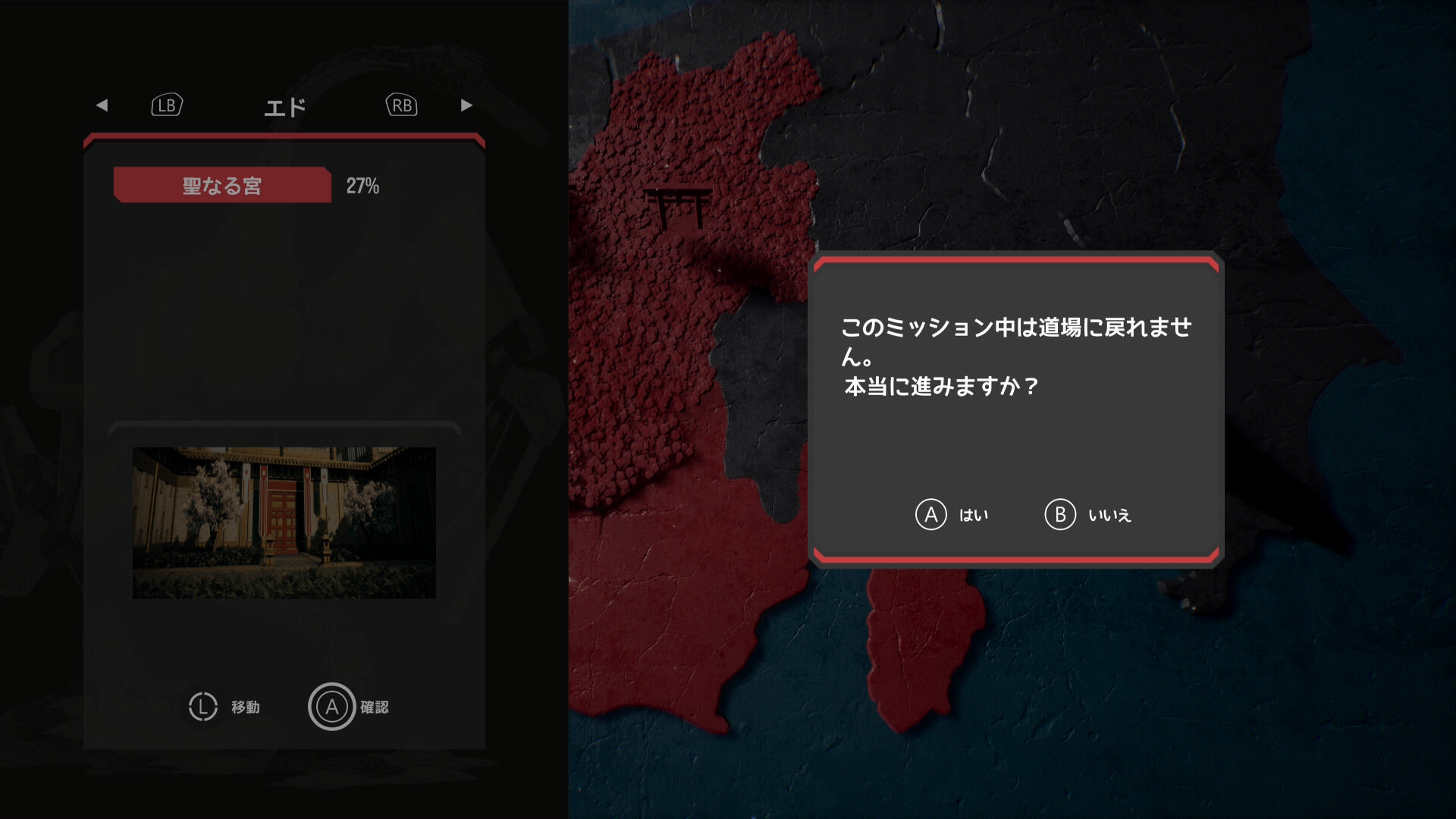 - 「静岡(嵐の峰)」のページでも記載したが、「江戸(聖なる宮)」を開始しようとするとアラートが表示され、「いいえ」を選ぶと他エリアが選択できなくなるバグがあるので注意