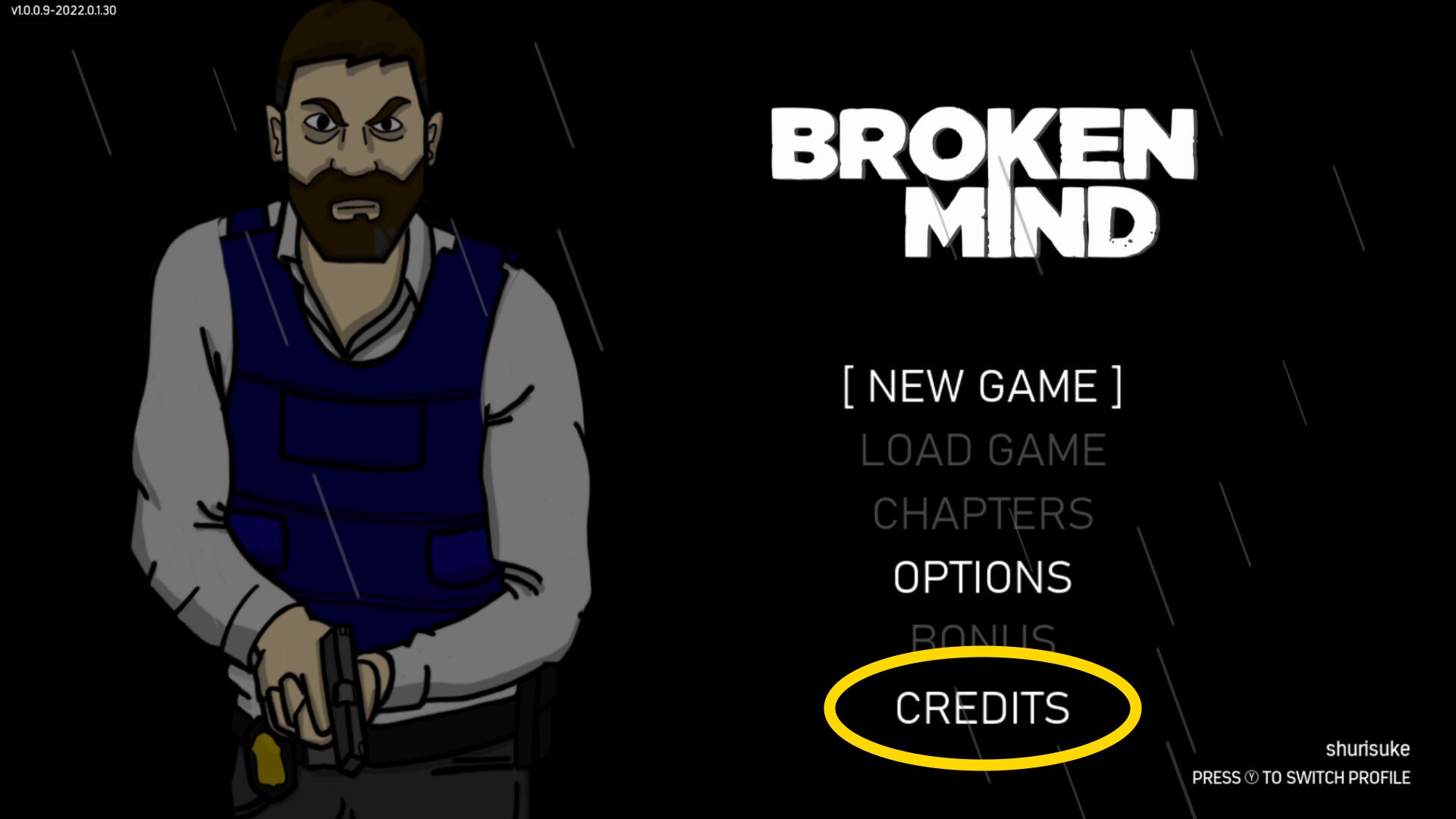 • ゲームを開始する前にタイトル画面の一番下「 CREDITS 」を選ぶ