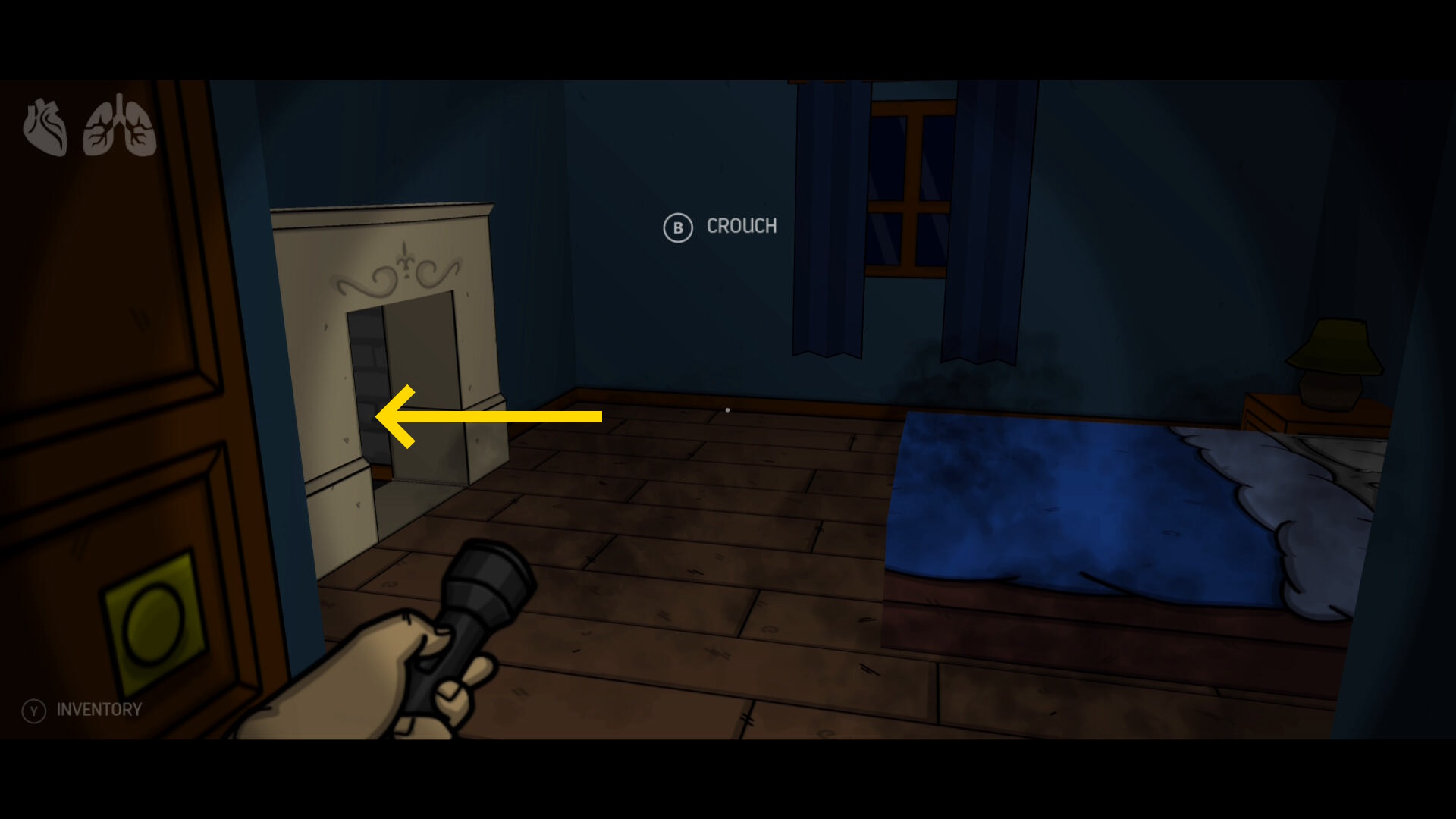 • しゃがんで暖炉の中を通過し、向こう側の部屋へ
