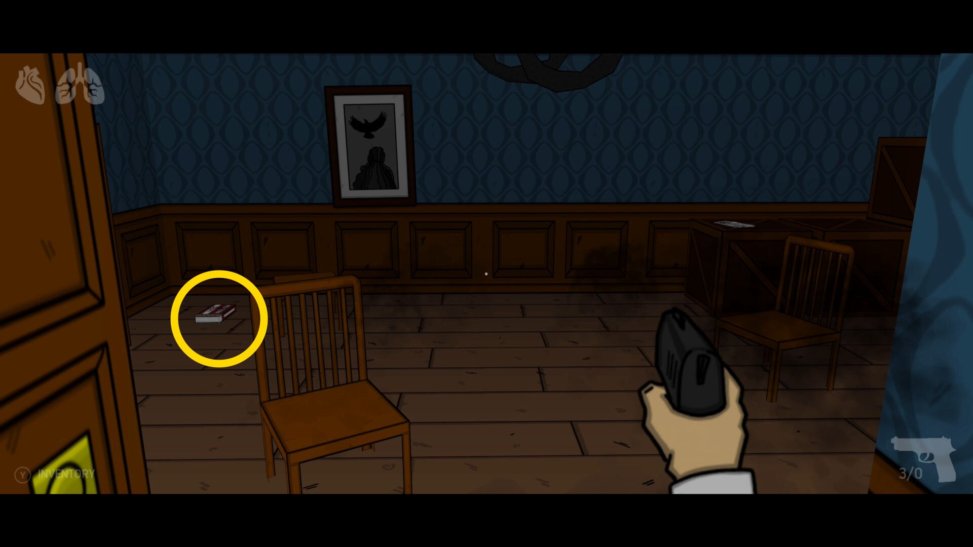 • 部屋に入り、左奥隅に 弾薬(+4発)