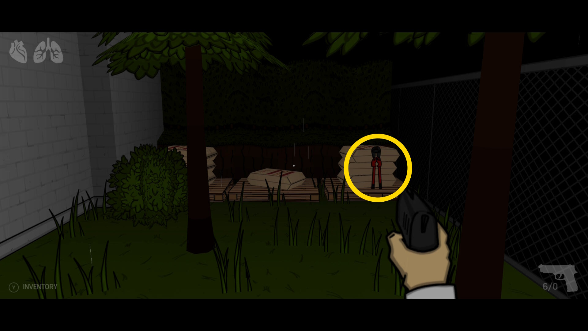 • 近接攻撃でツタを壊し、有刺鉄線を「ボルトカッター」で切断( A 連打)