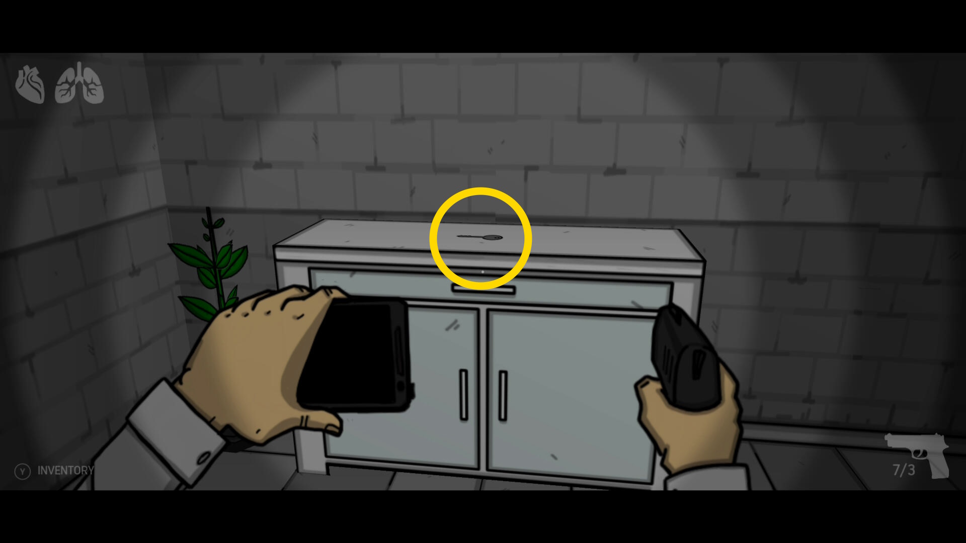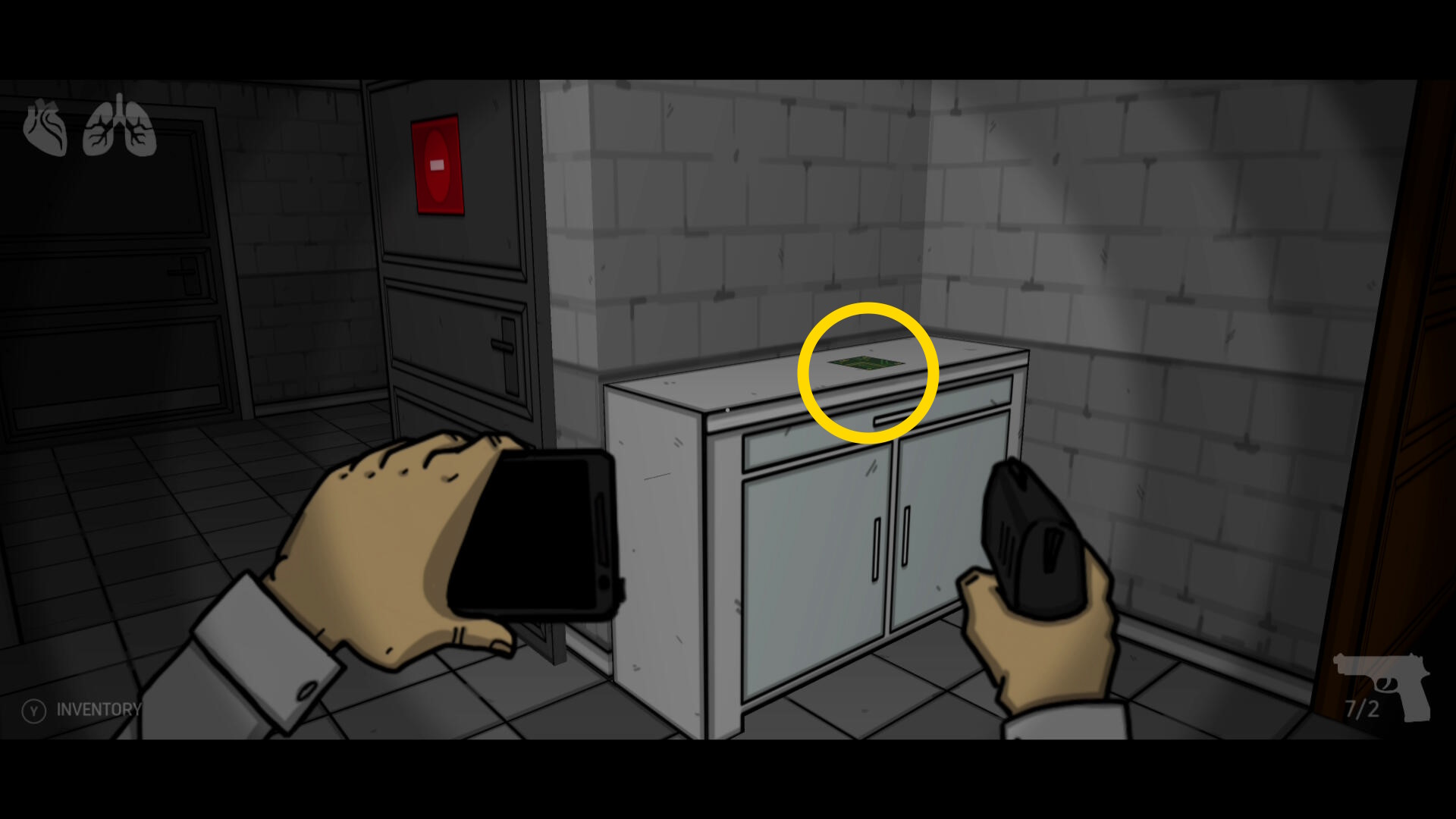 - 中に入り、キャビネットの上から エレベーターの鍵 を回収