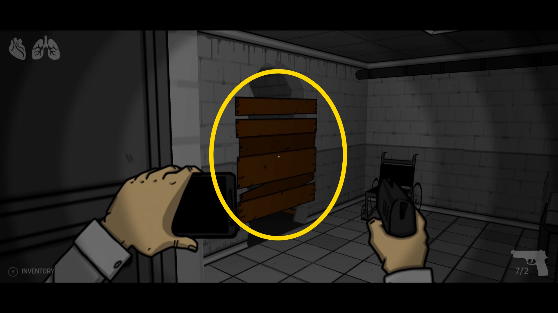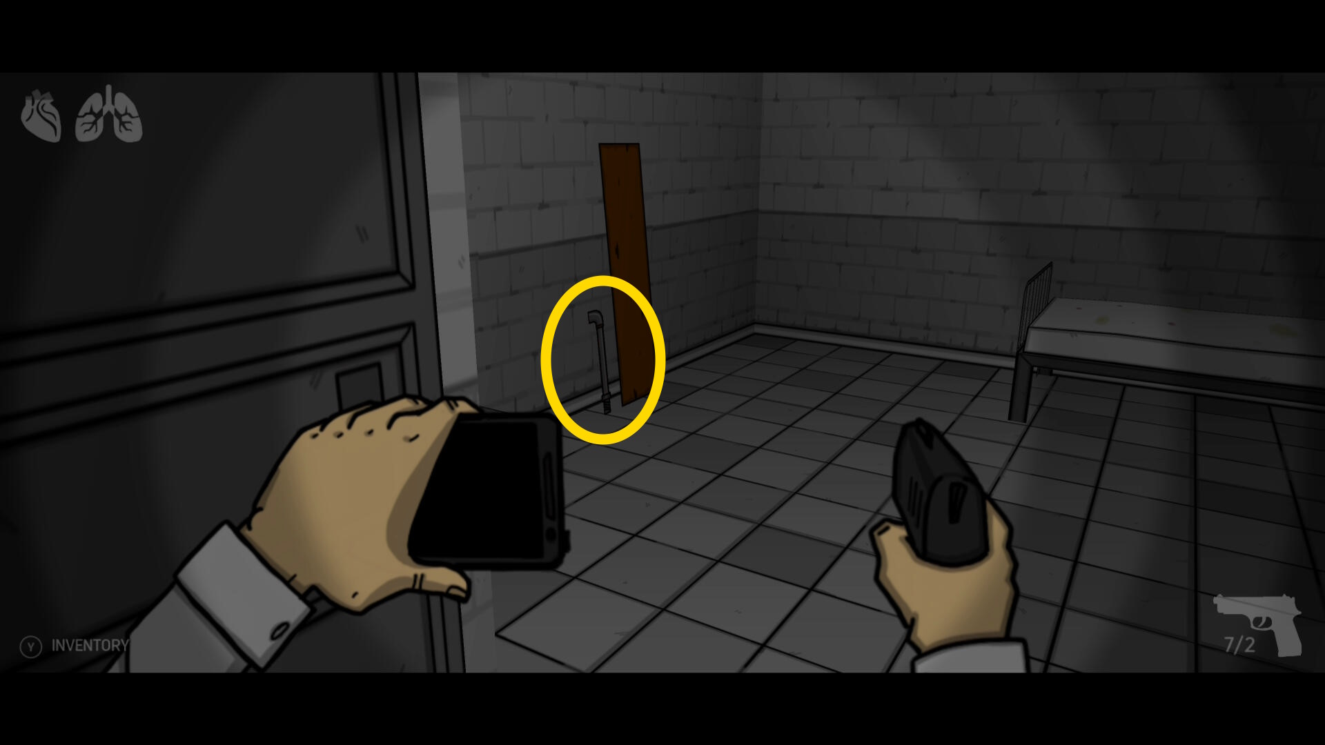 - 木の板を「鉄パイプ」で破壊( A 連打)