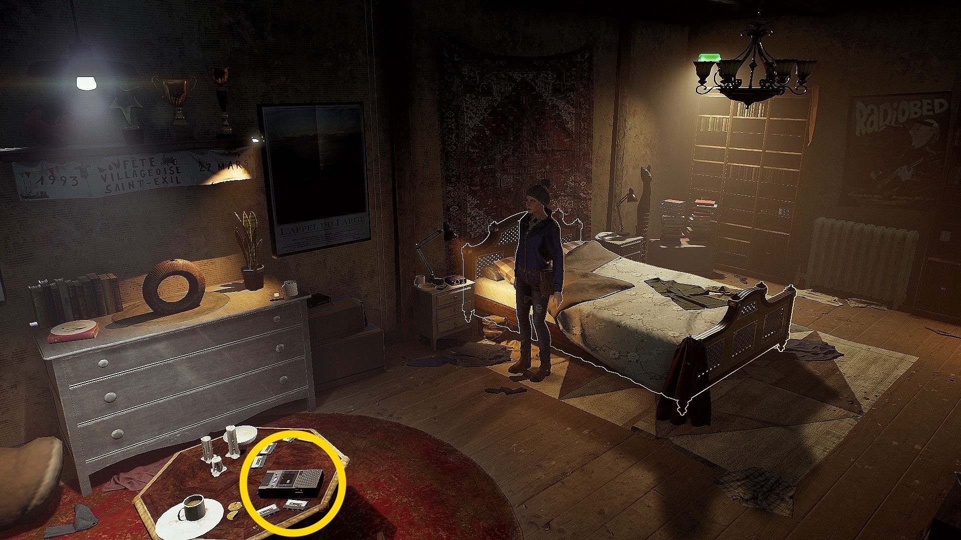 - 起床したら、ベッド前の机を調べると以下のカセットテープを回収