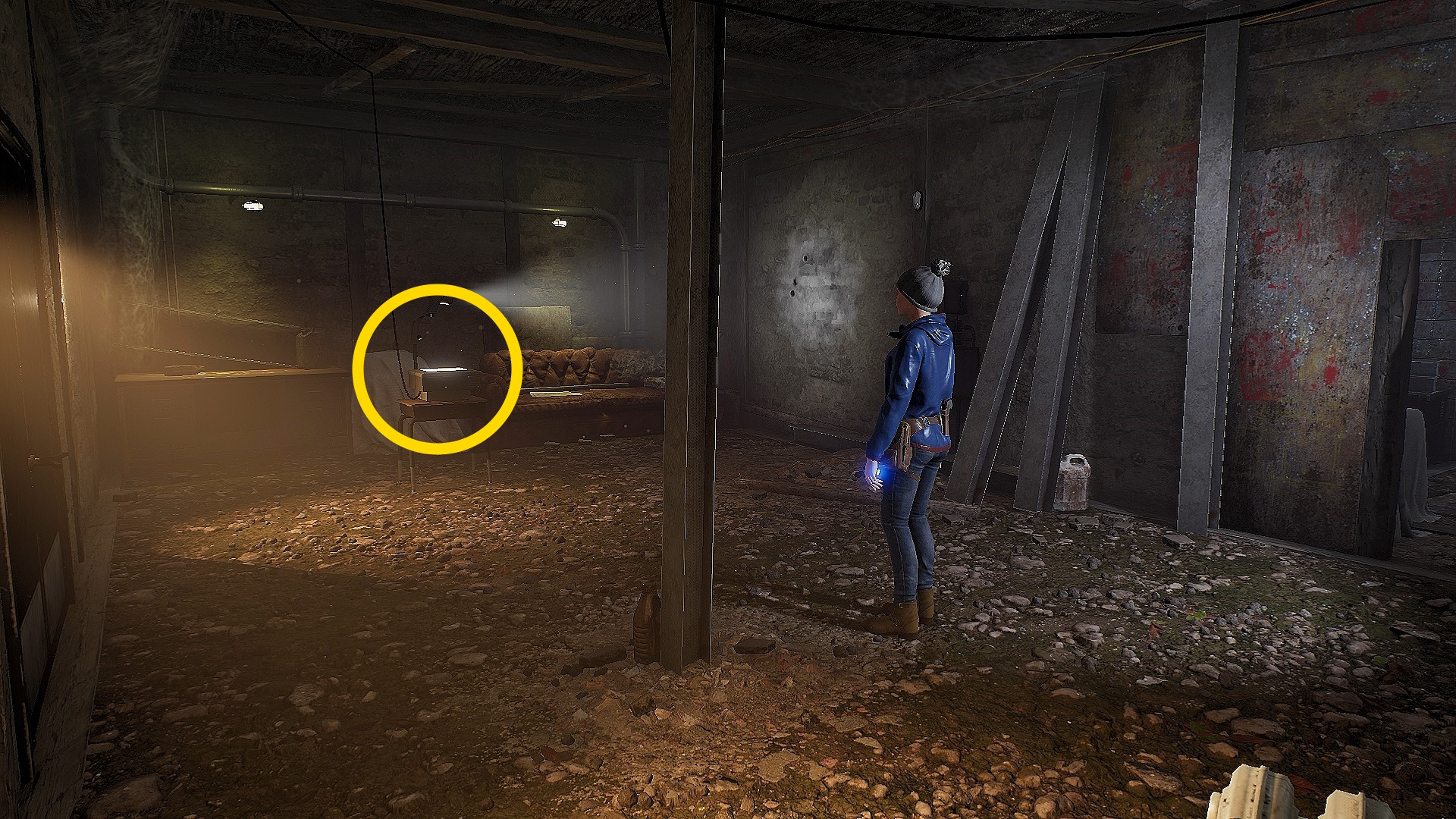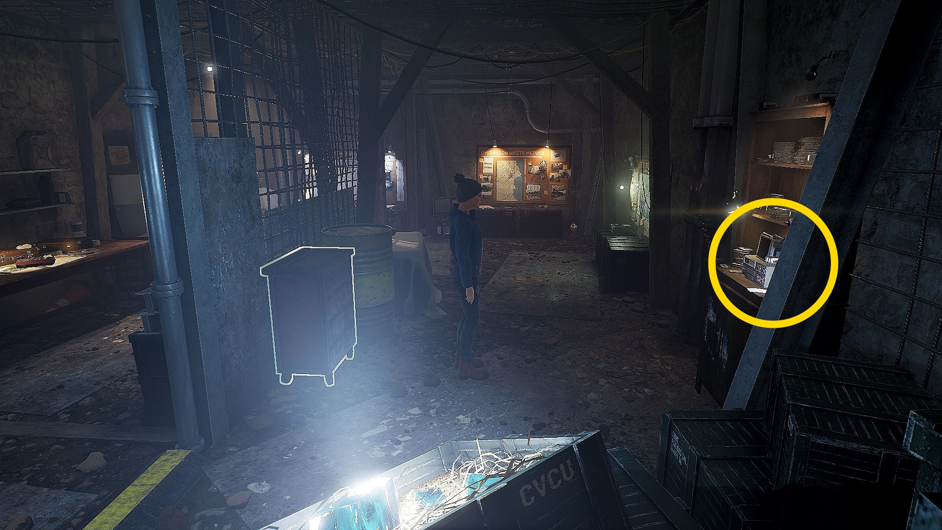 - カセットテープの解読を終えたら、地下室入口方面へ戻り、プロジェクターへ