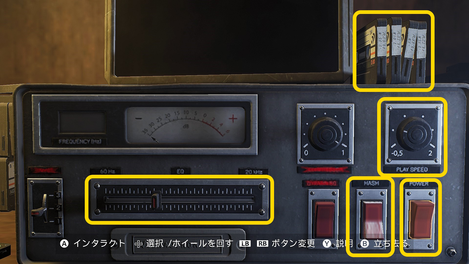 - POWER の上の PLAY SPEED は「0.5から数えて」3個目の「・」に合わせておく(下画像の場合は 0.5 から数えて1番目)