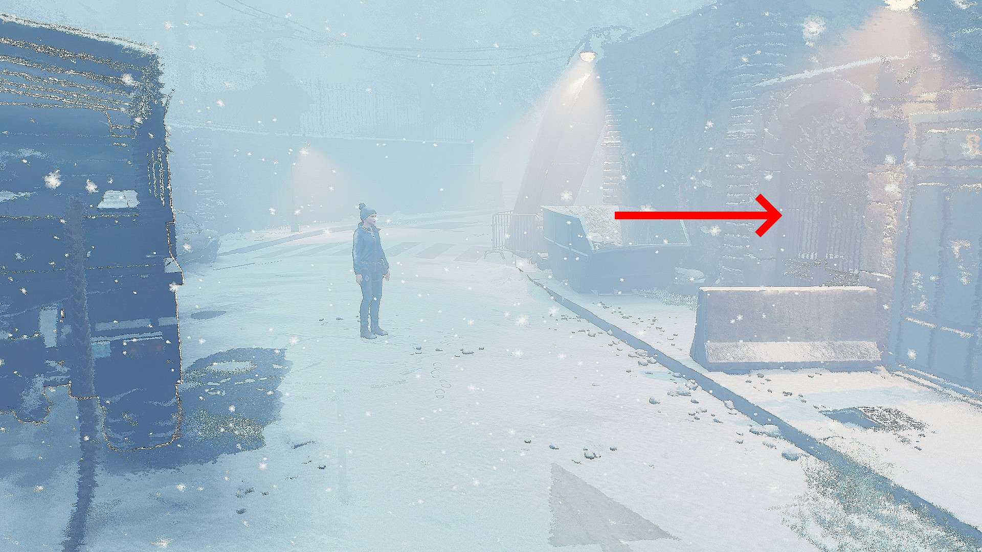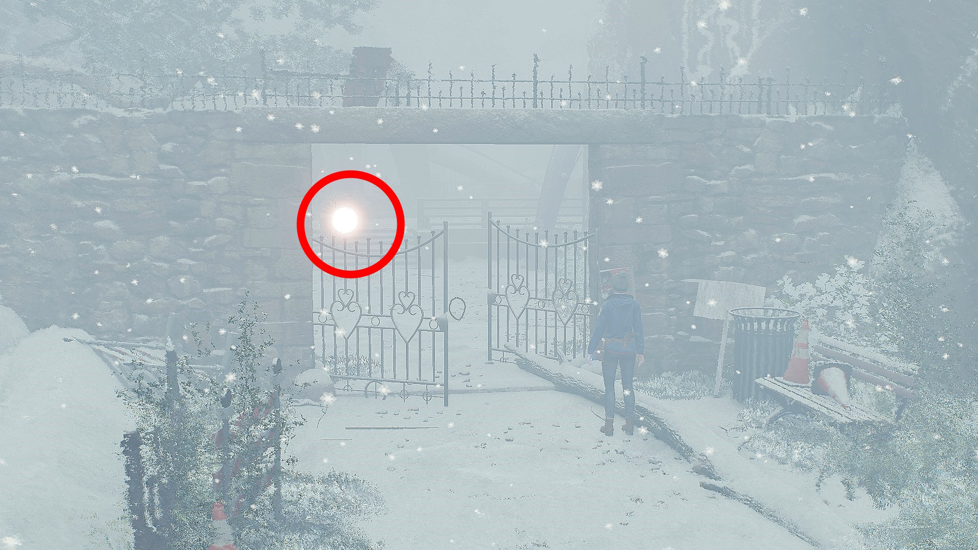 - 灯台前に着いたら、ゲーム序盤に初めてブレーカーを取り付けた電圧ボックスへ(雪の影響で見にくいけど下画像1枚目)