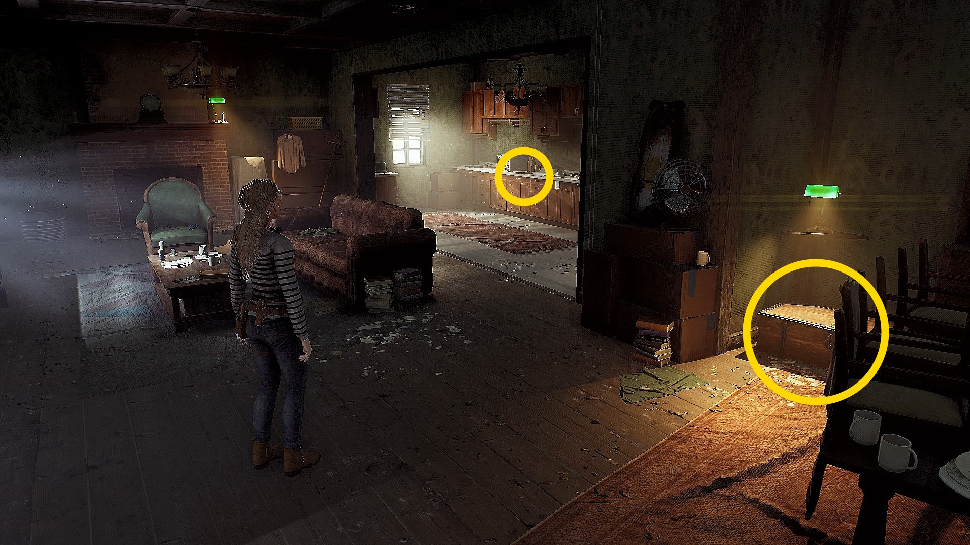 • 左前方のシステムキッチンのワークトップに置かれた メモ帳 を回収(セレクトボタンで開く)
