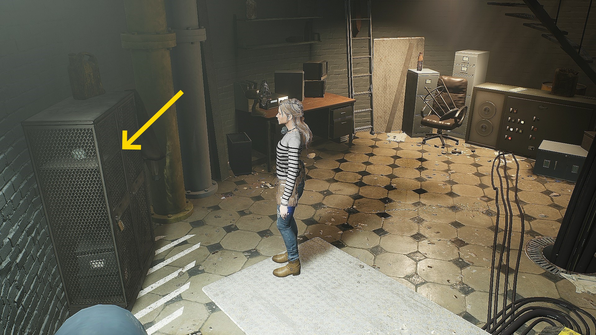 • 部屋の隅にフェンスがあり、その向こう側を移動するとロッカーがある