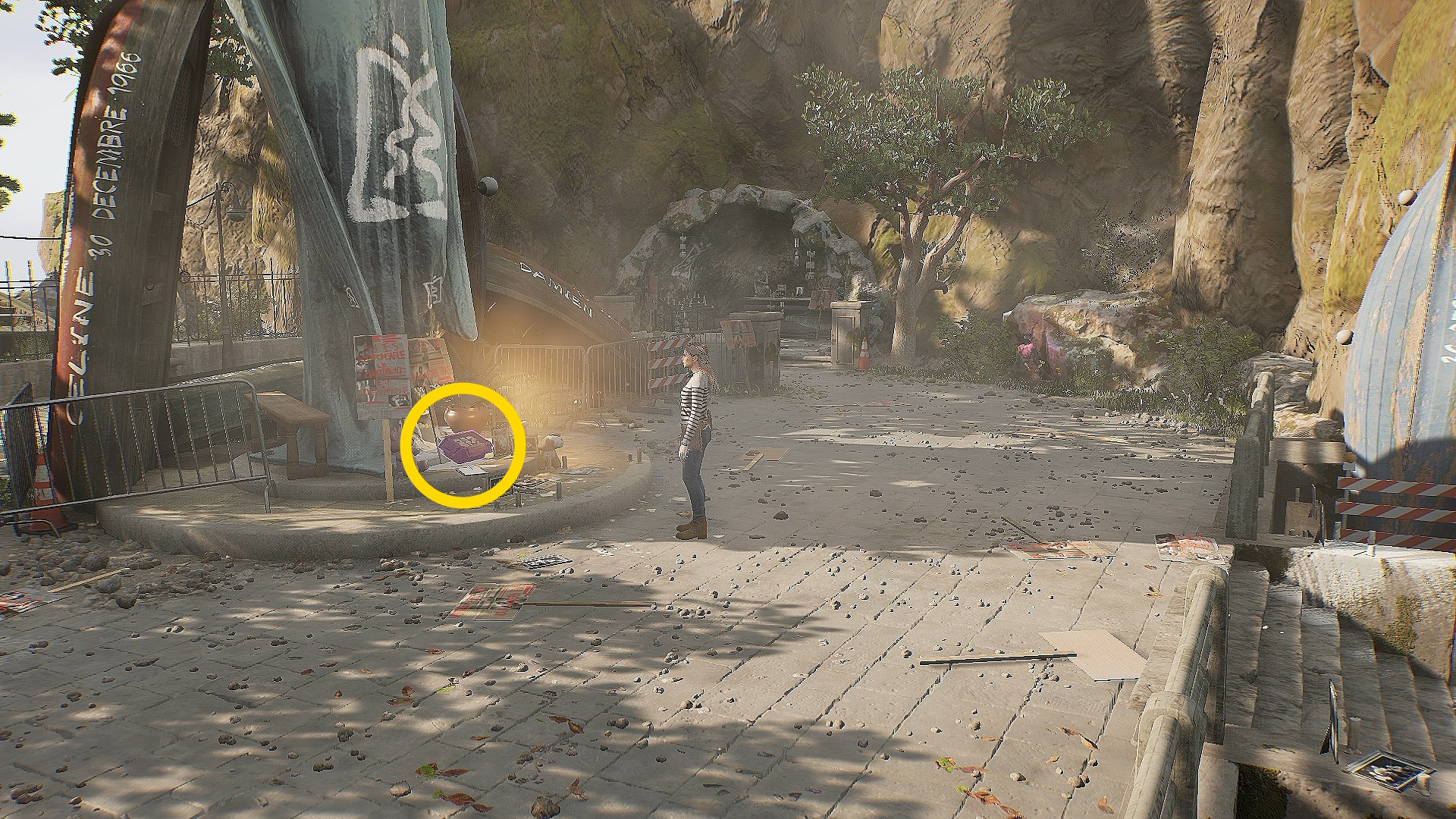 • 一度調べたあと、モニュメントの足元の段ボール箱を調べると 心を開きなさい(カセットテープ:6/39)