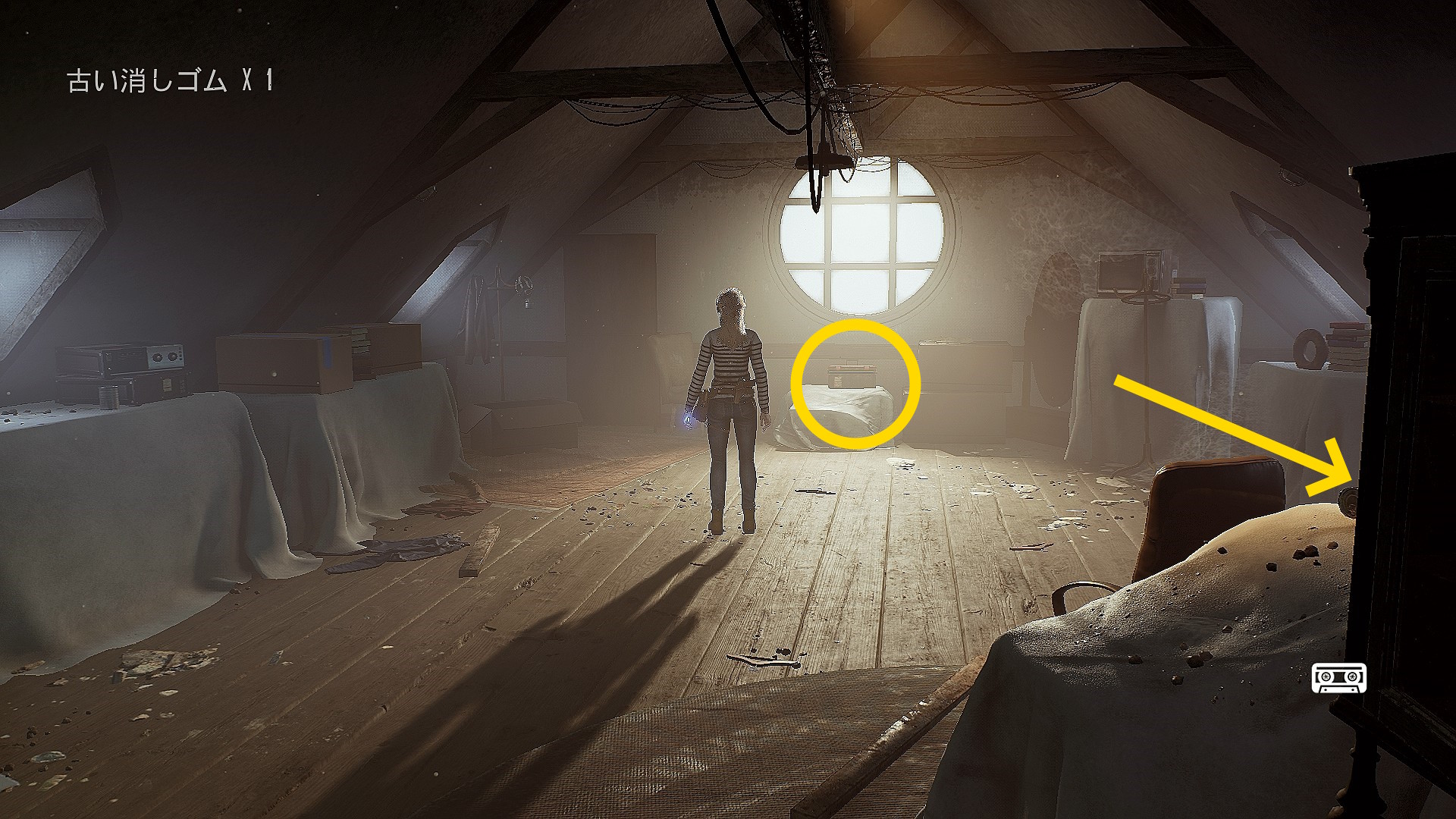 - オプション扱いなので主目的ではないが、実績解除に必要な収集物があるため、屋根裏に向かう