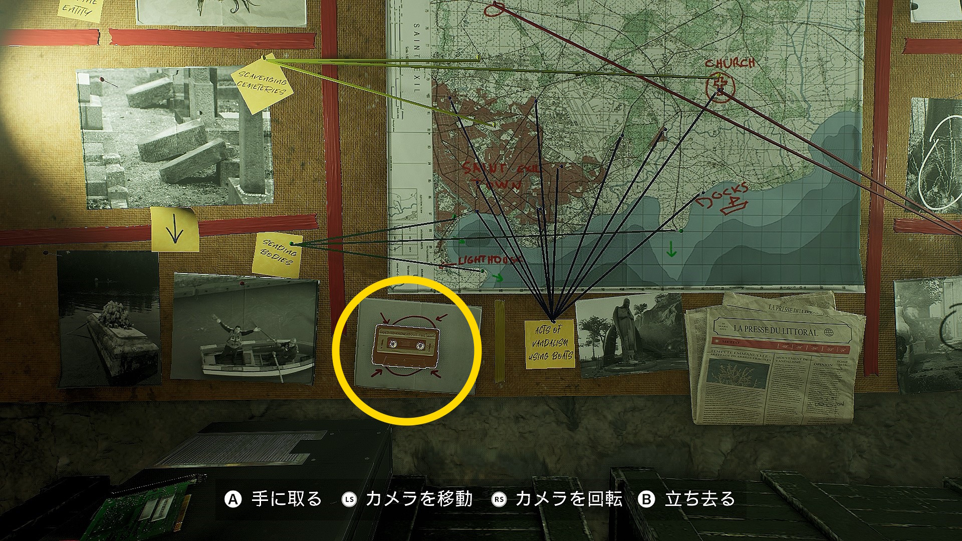- 画面右奥の机を調べて、ピエール #4 – 消えゆくもの(カセットテープ:7/39)