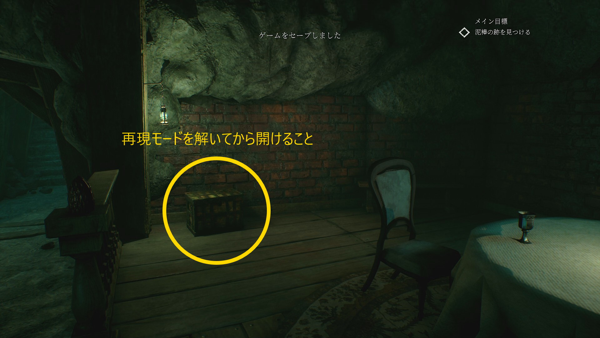 • 暖炉の上の写真、テーブル上の手紙は確認せず、再現モードも発動しなくてオーケー