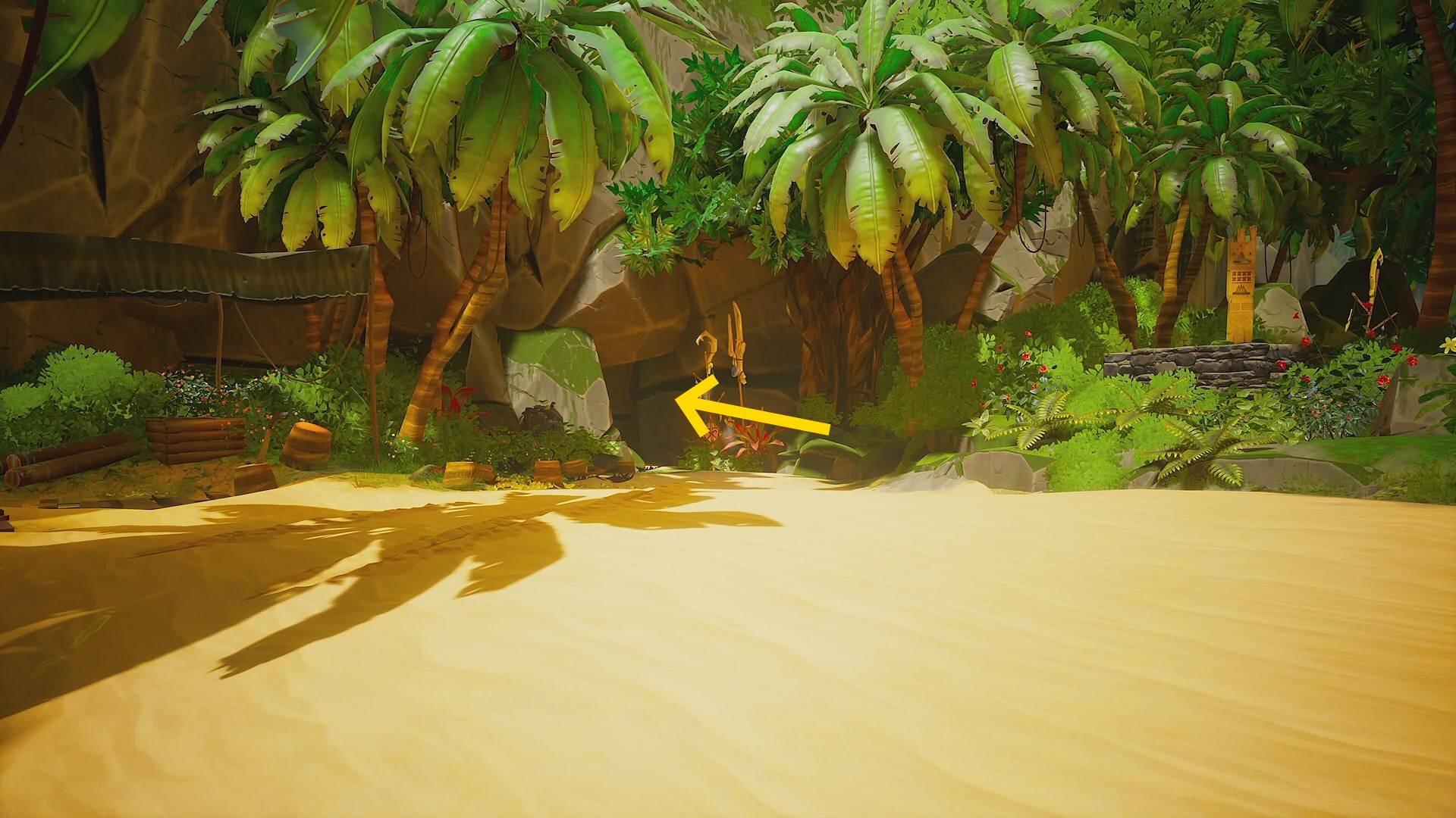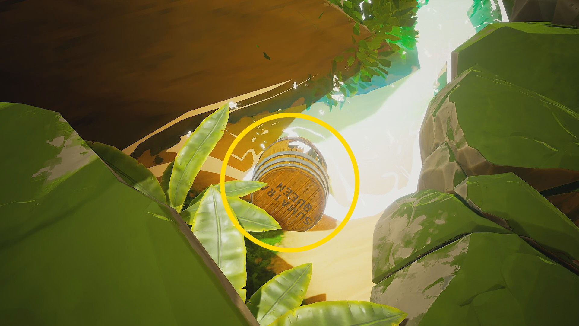 • それに登って奥に進むと右眼下に「 SUMATRA QUEEN 」と書かれた樽(チャプター1のシークレット)が落ちている