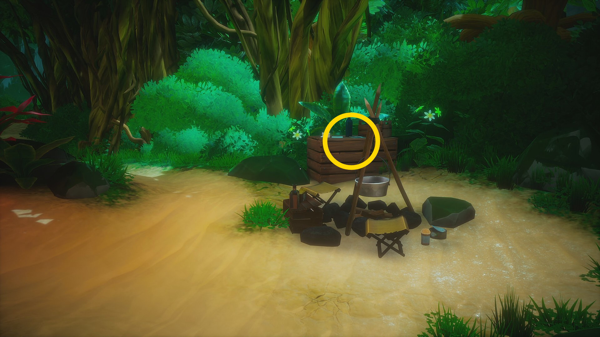 • 焚き火(火は消えている)の奥、木箱の上に ハリーたちが写る写真 があるので回収(左にあるレディ・シャノン号の積荷記録も確認しておく)