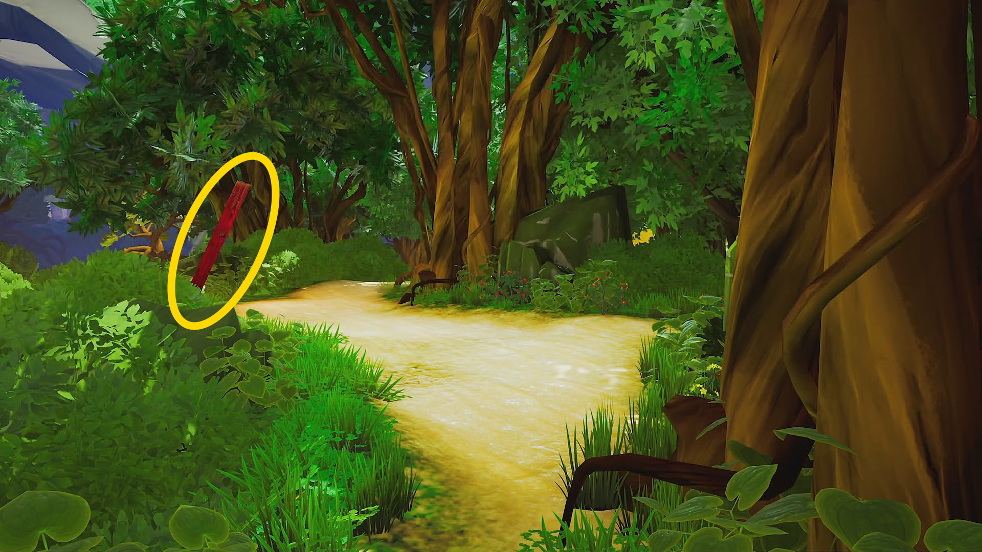 • 丁字路を右に進むと赤いシンボルがいくつも設置された開けたエリアに出てくる