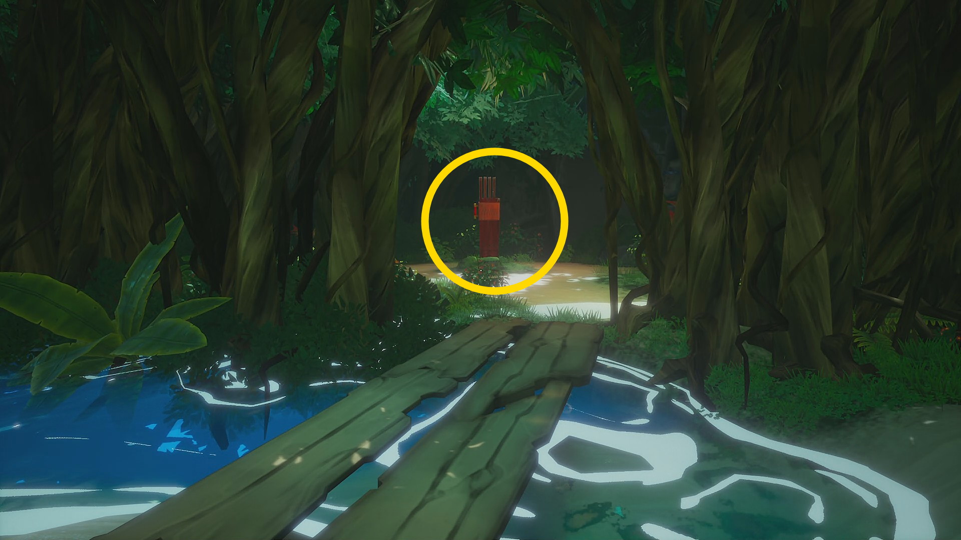 • 「このマングローブの沼地の空気はとっても濃いわ」とノラが言った先、赤いシンボル(太陽のシンボル)が見えるので、近付て左のハンドルを下げる
