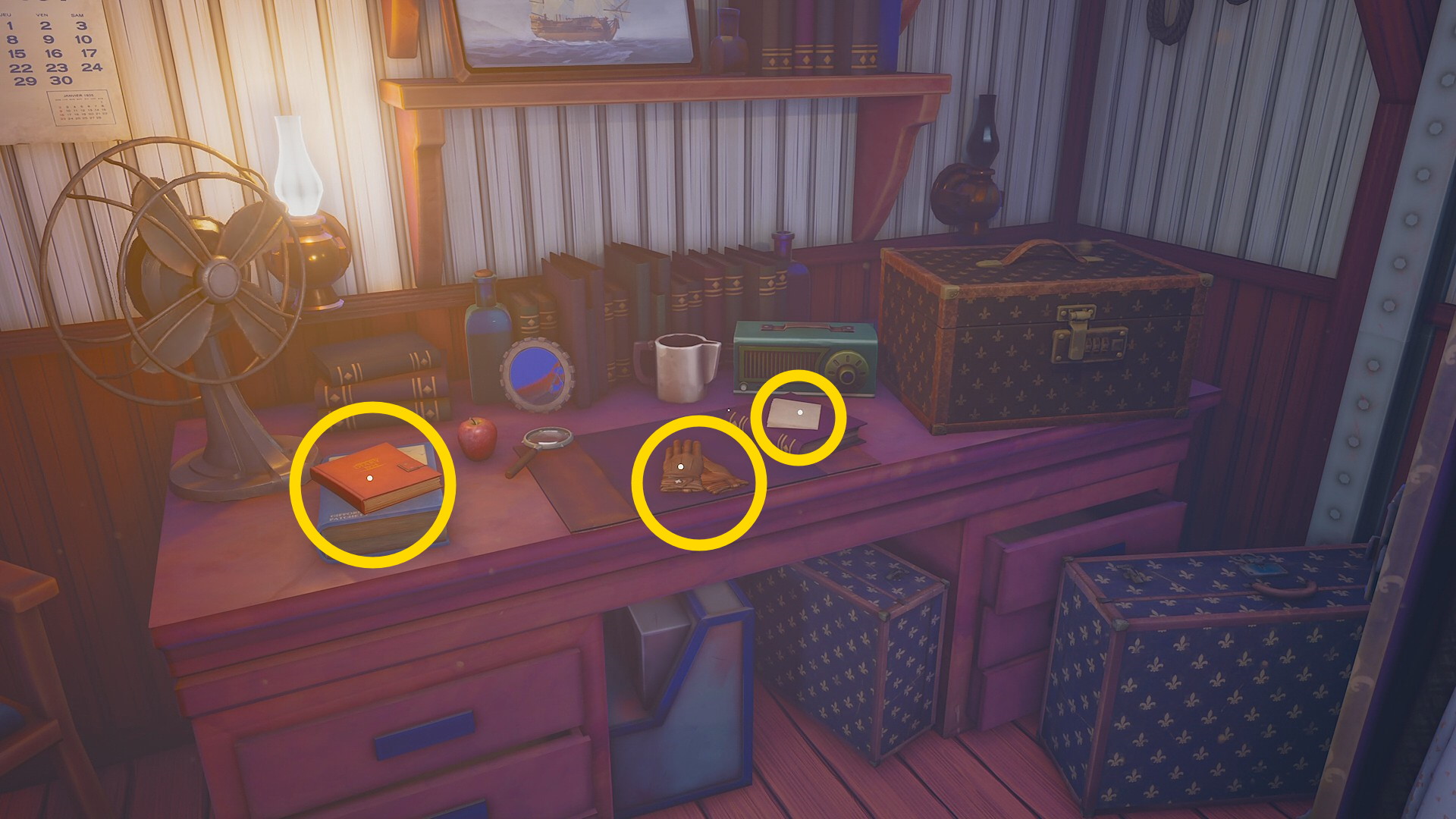 - 机上にあるいくつかのアイテムを回収する