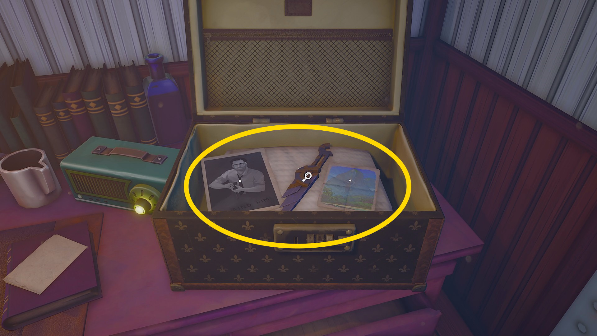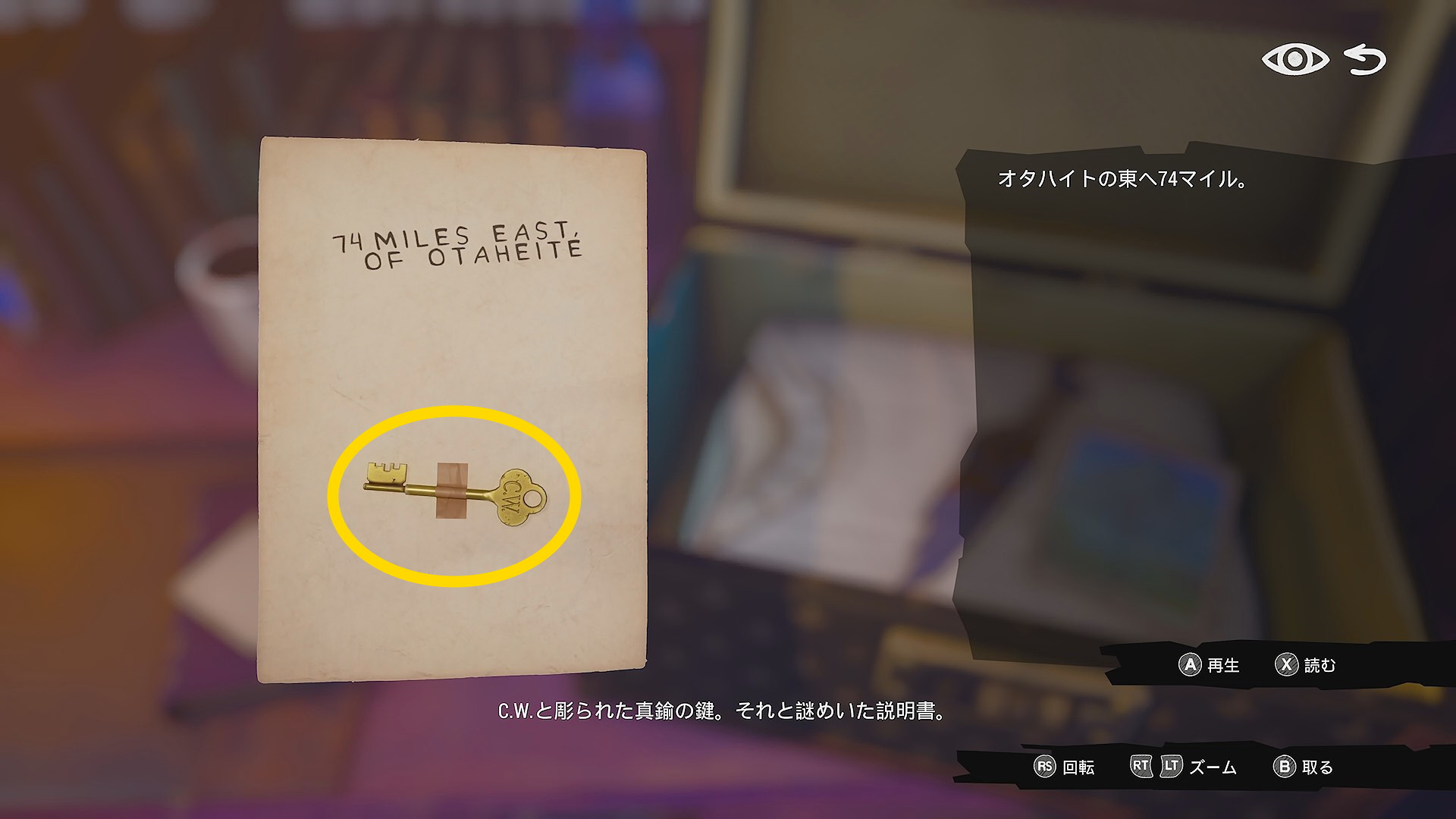 - ハリーの写真 ⇒ 裏面を確認して C.W. と彫られた真鍮の鍵 も回収