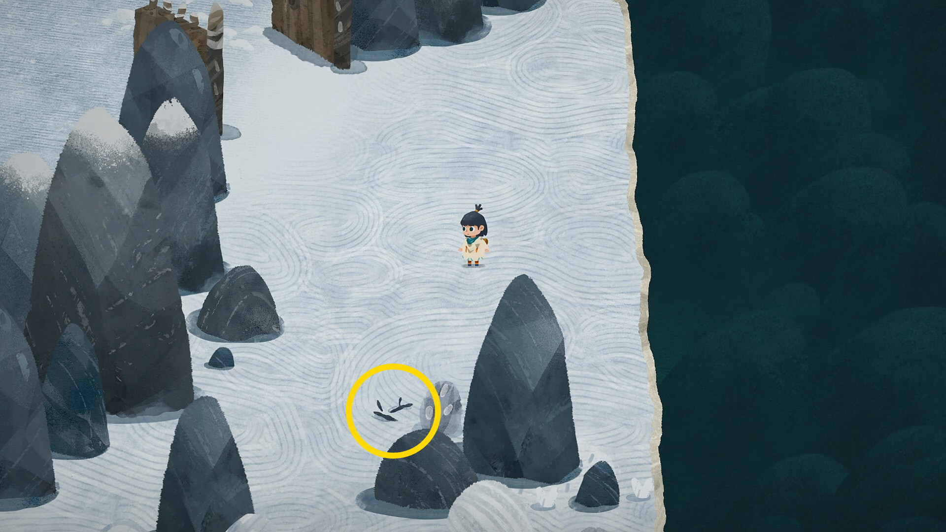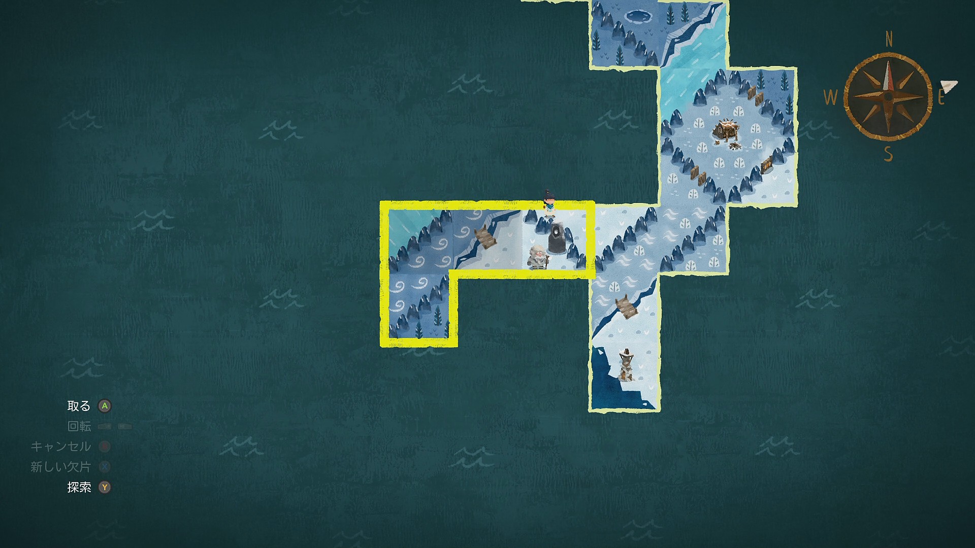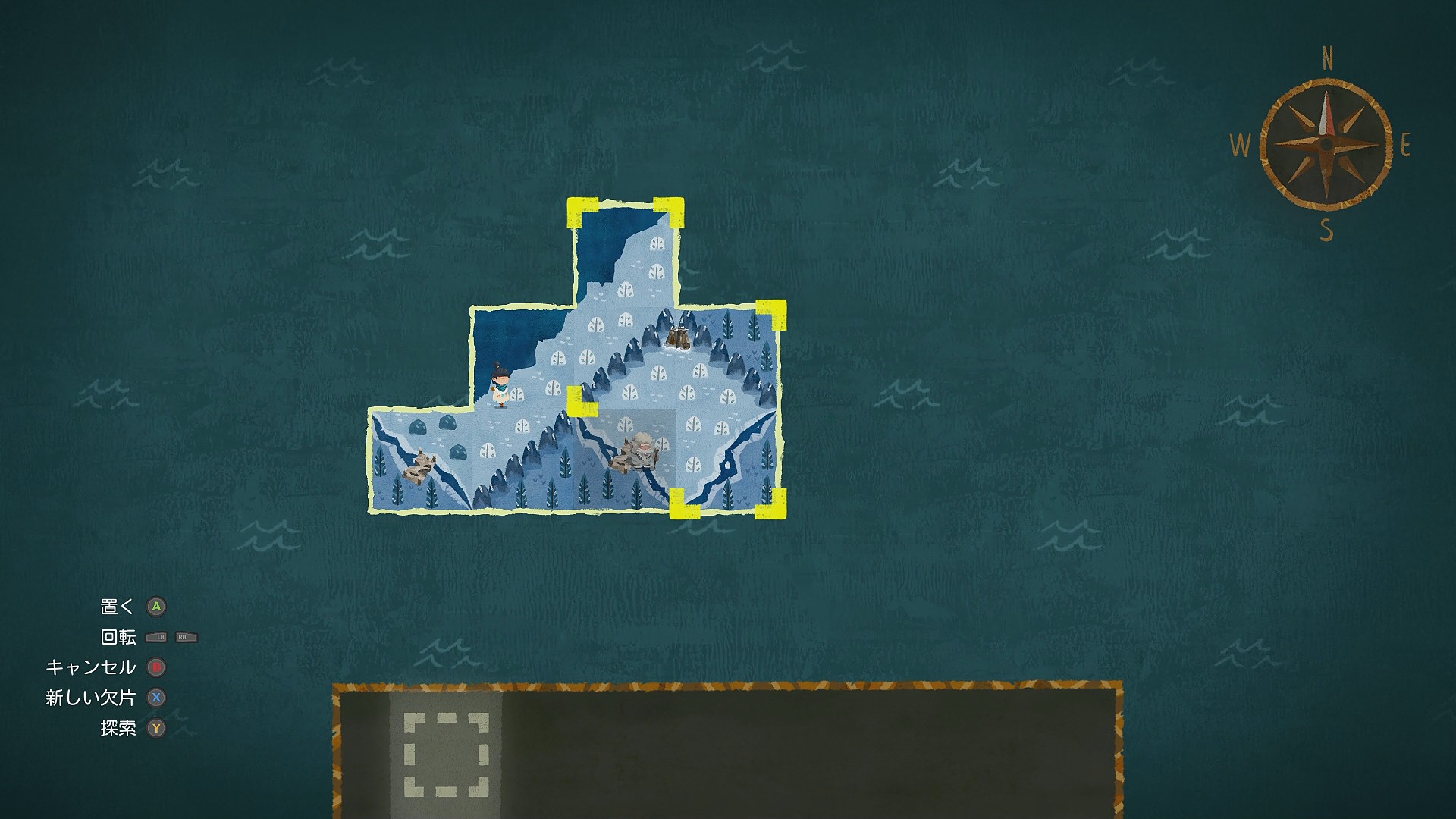 • 会話後、灯台の東側に新しい地図の欠片を配置