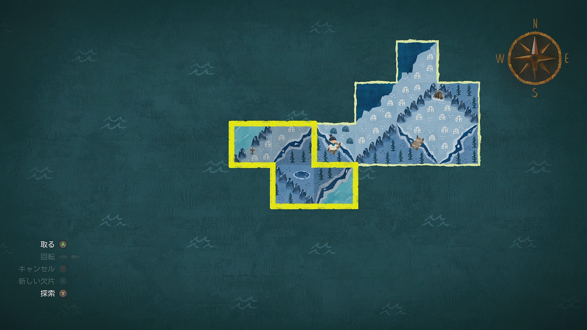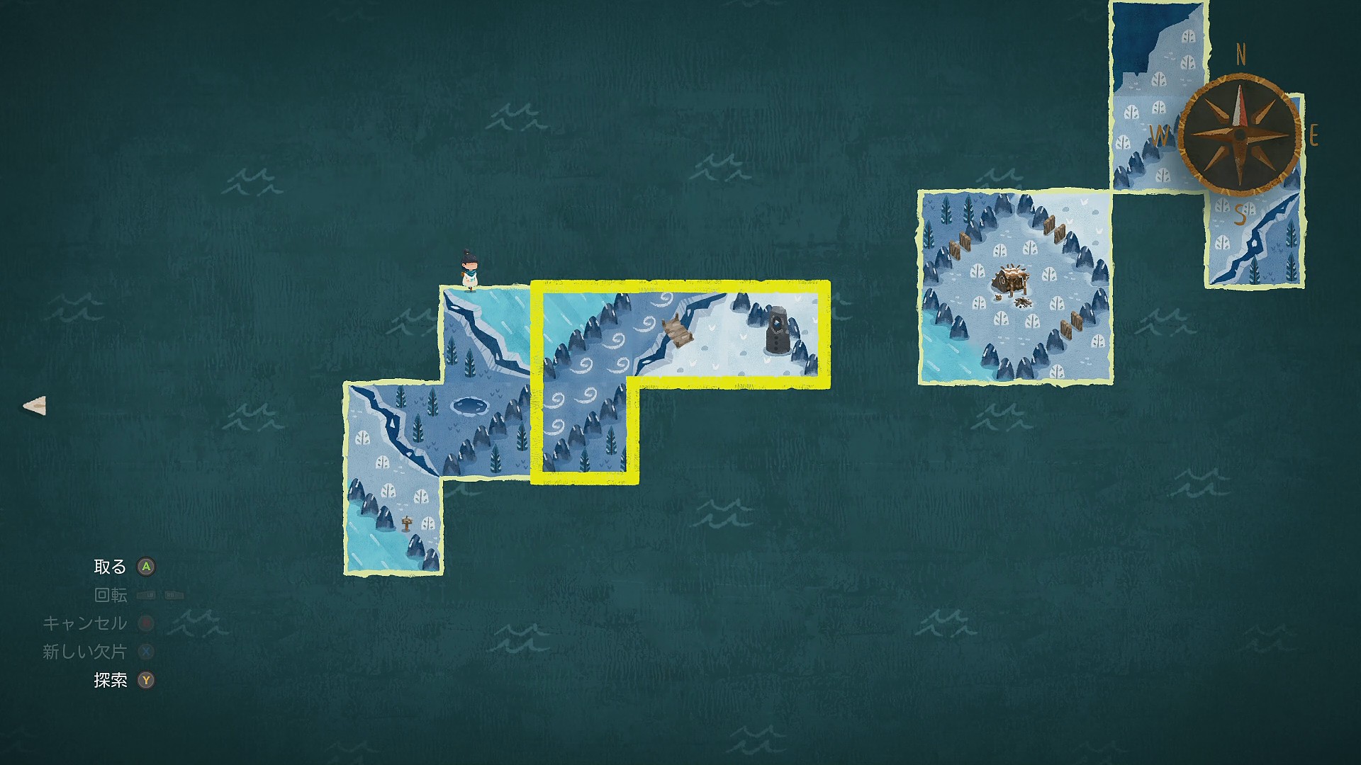 • 青年と会話後、回収した新しい地図の欠片にたどり着くために地図を動かしていく