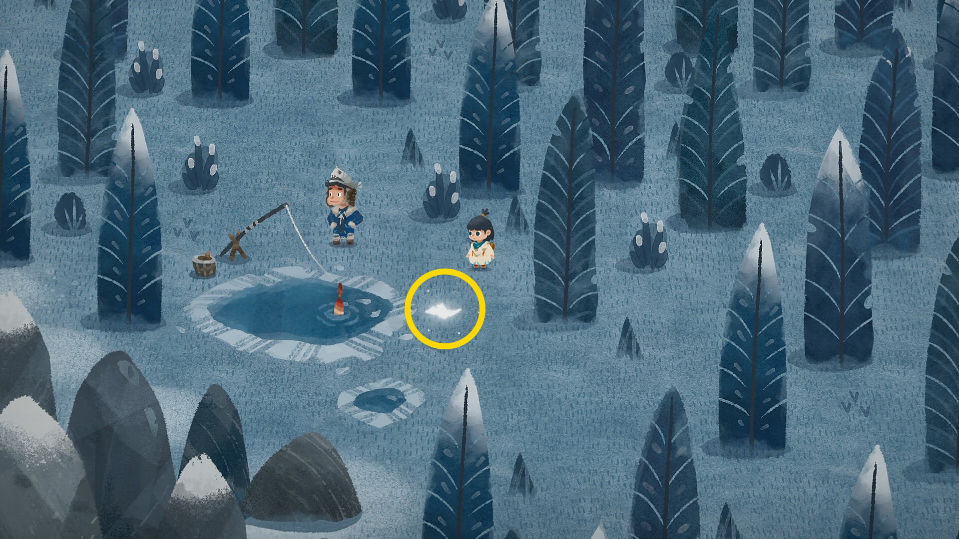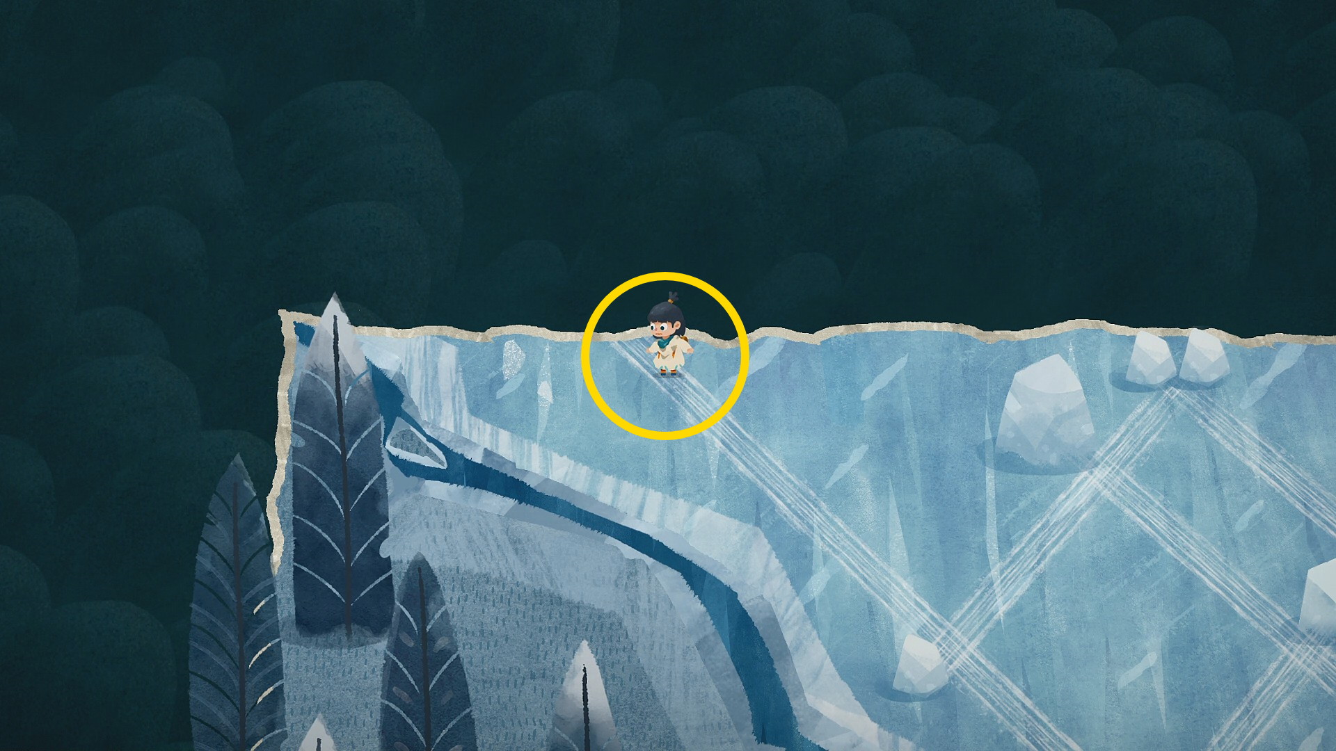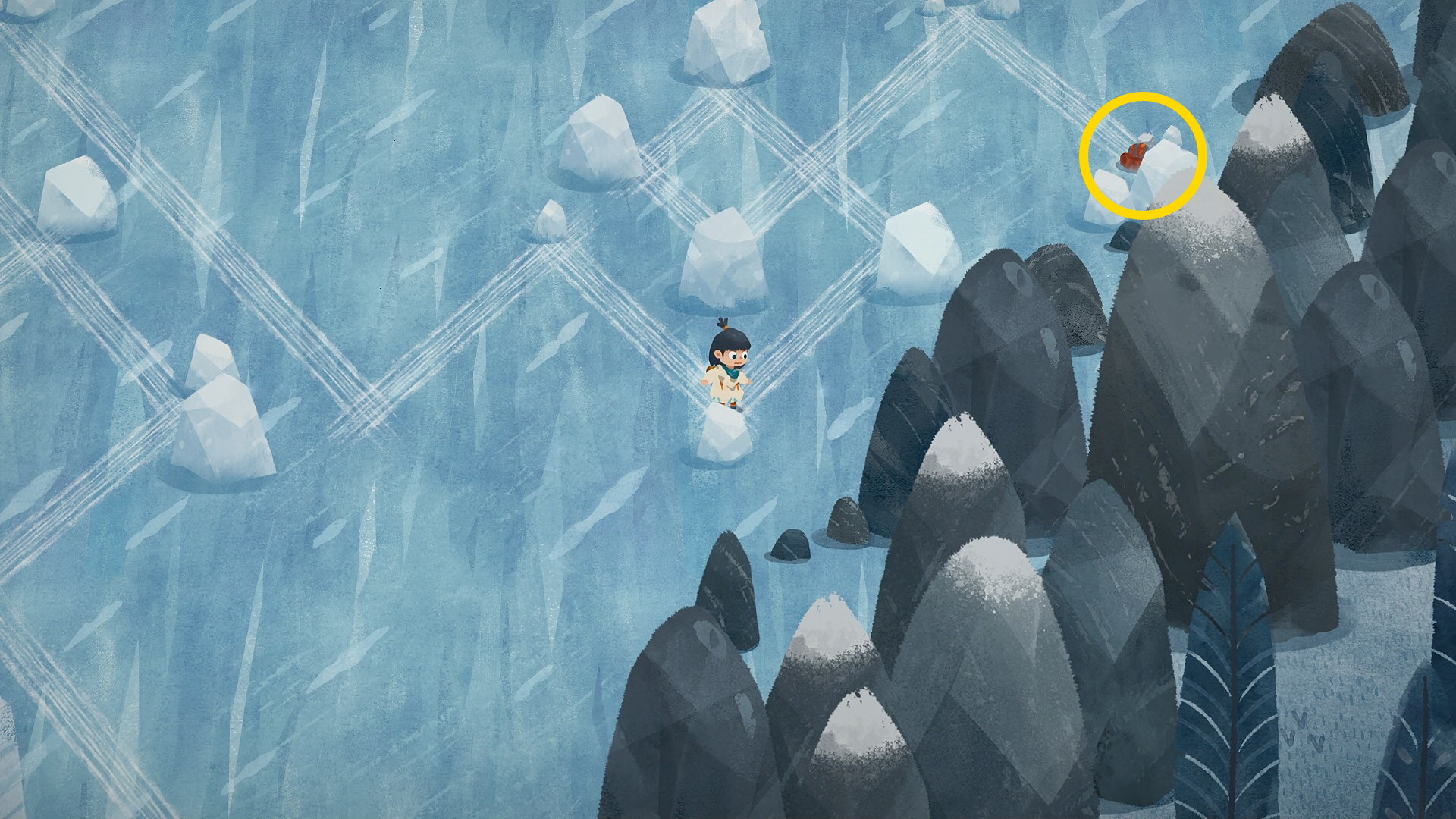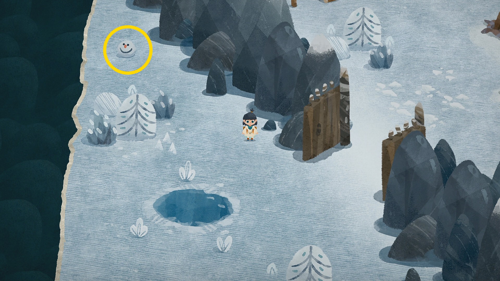 • そこで A を押すと雪だるまが完成し 秘密の欠片 VI を入手するとともに実績「冷たい友だち」 解除