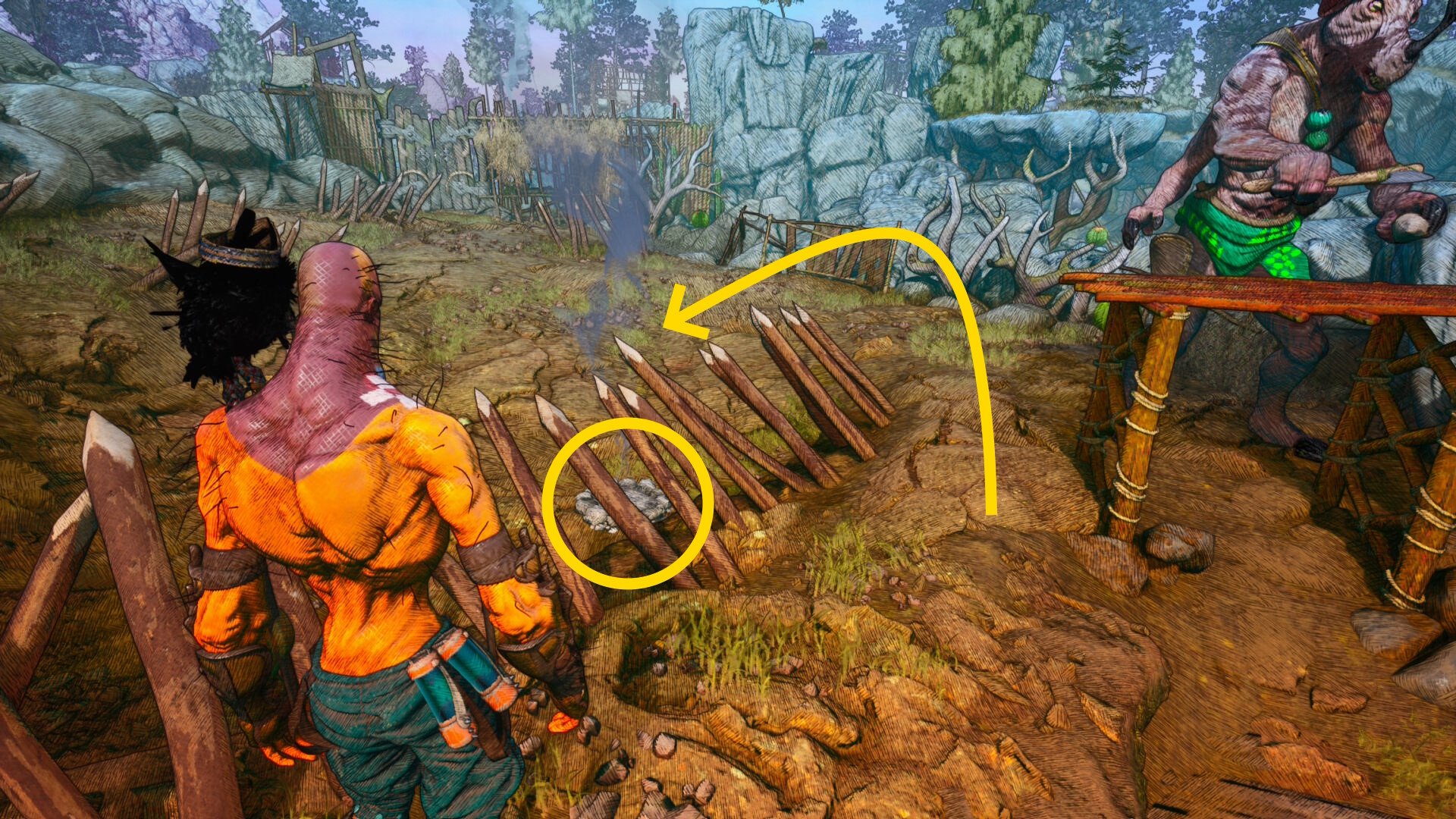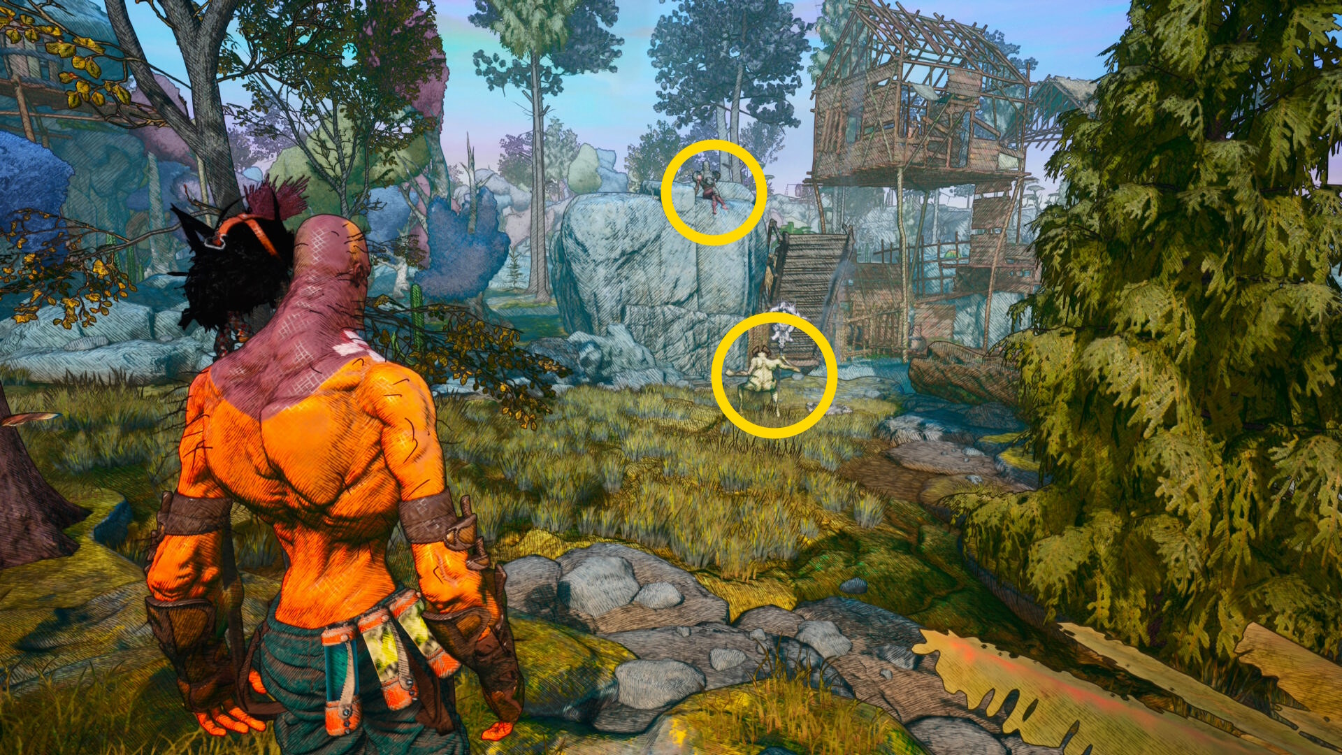 - 木に囲まれた狭い通路での戦いになるので注意が必要だが、その分ハンマー持ちの攻撃を2体の敵も食らうことが多い