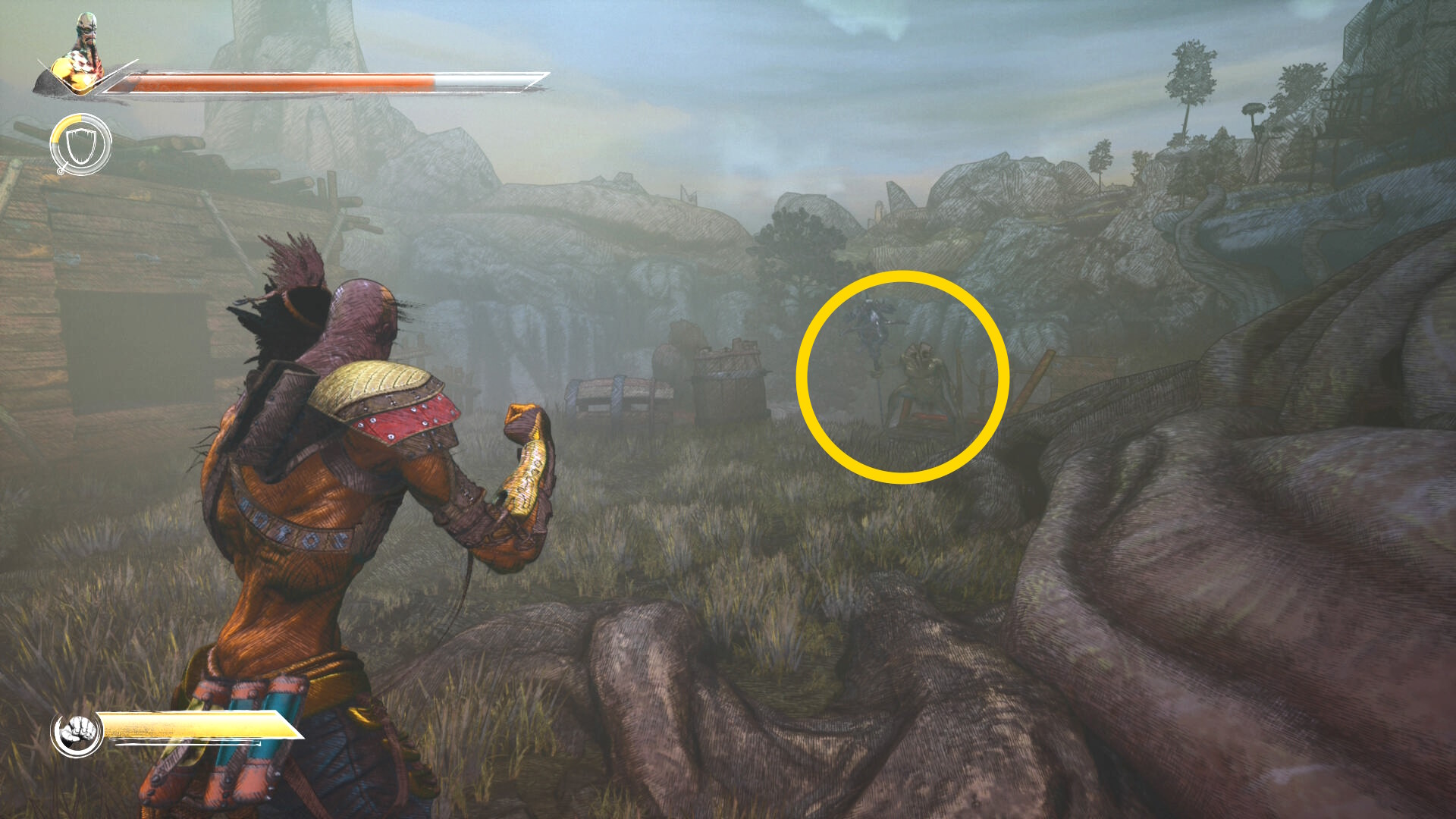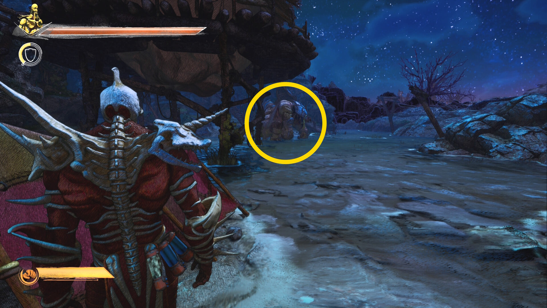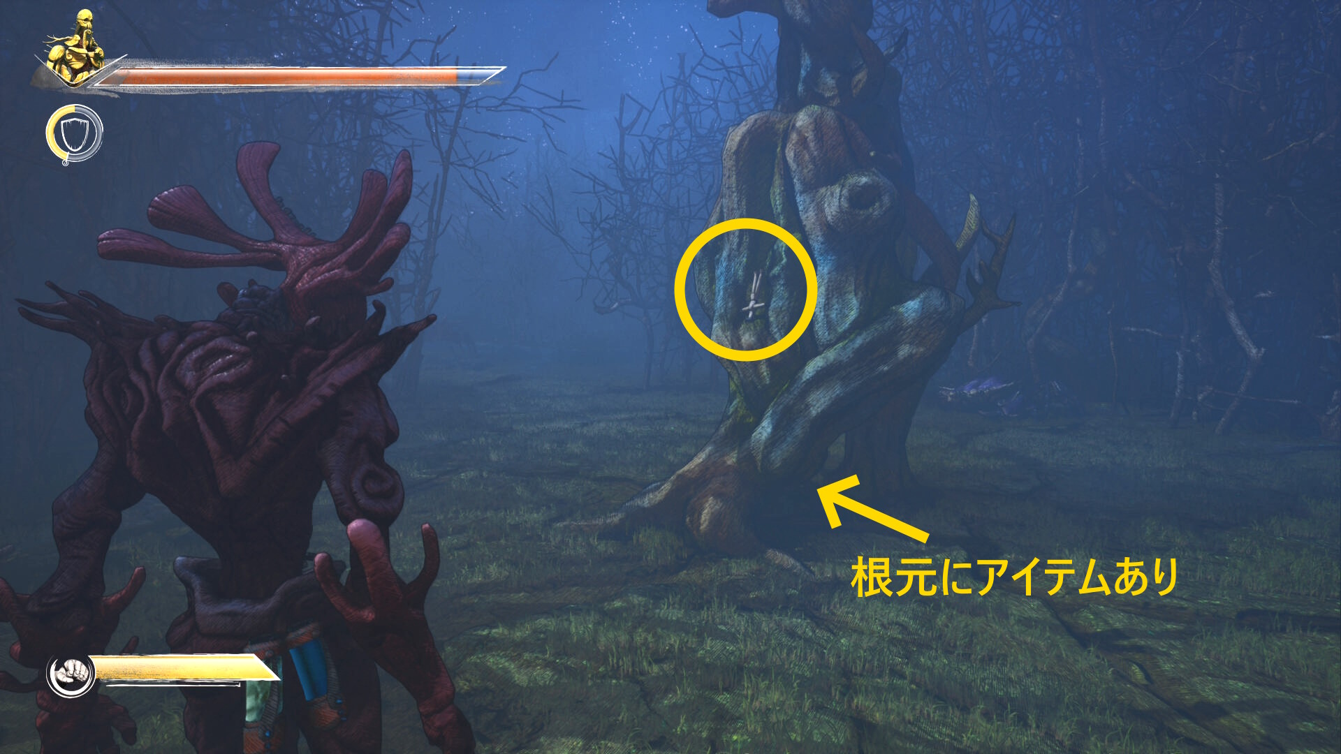 - 左前方に広がるフィールドには2体の獣がいる(名称不明なため、人面獣と呼ぶ)