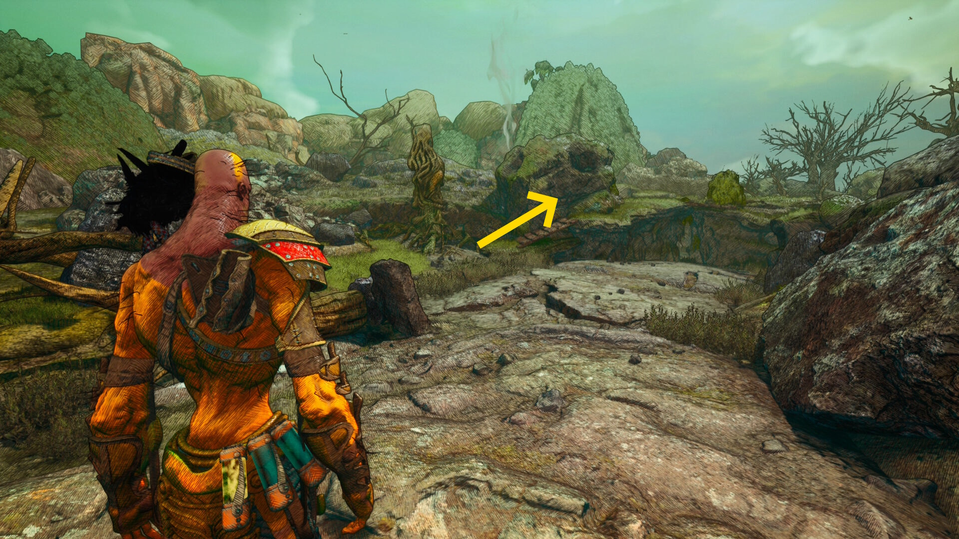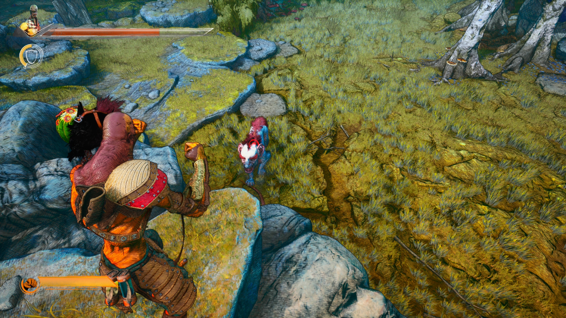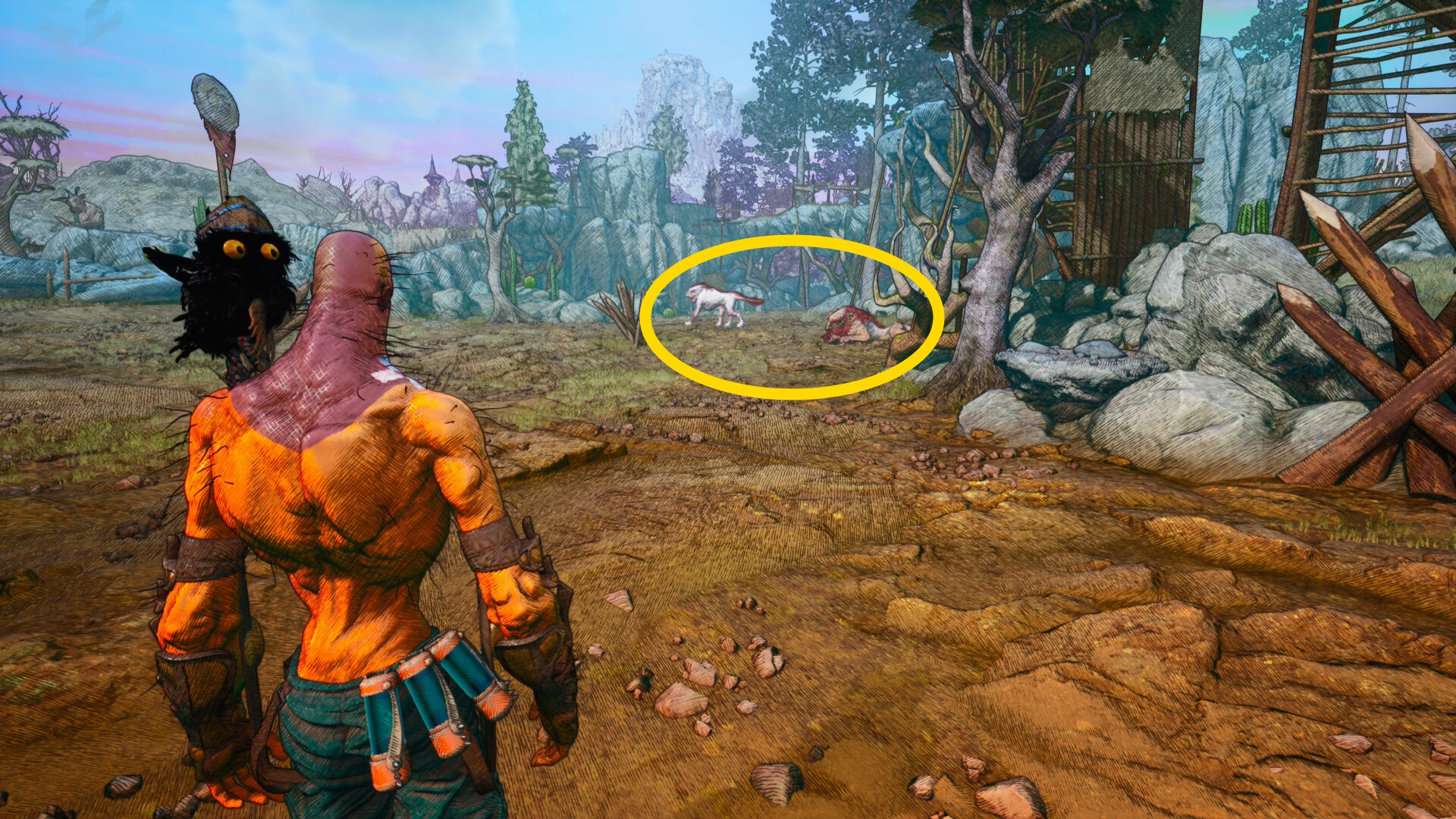 - 左前方に広がるフィールドには2体の獣がいる(名称不明なため、人面獣と呼ぶ)
