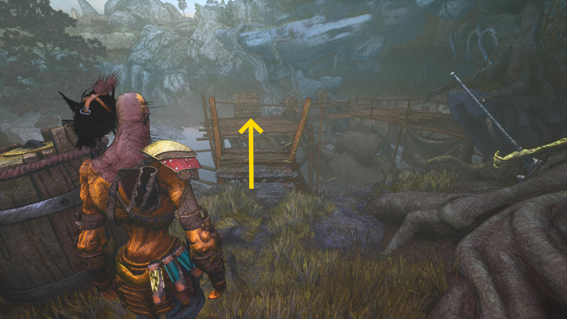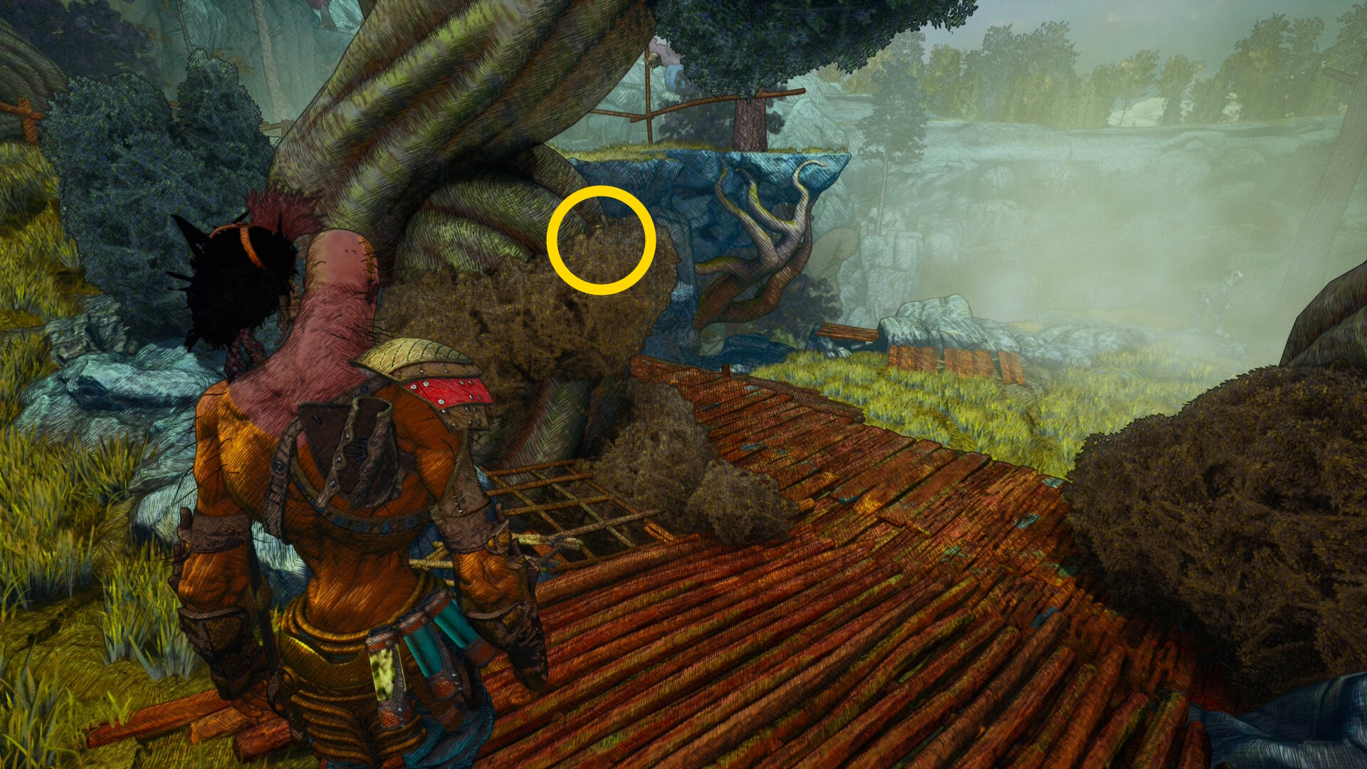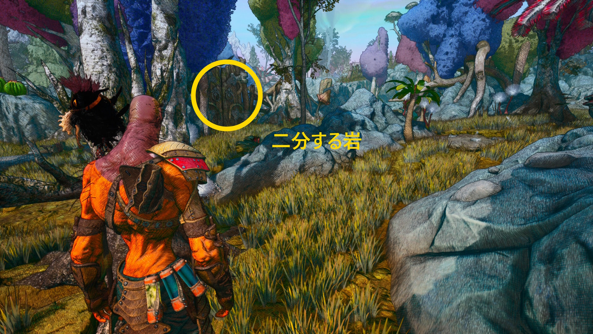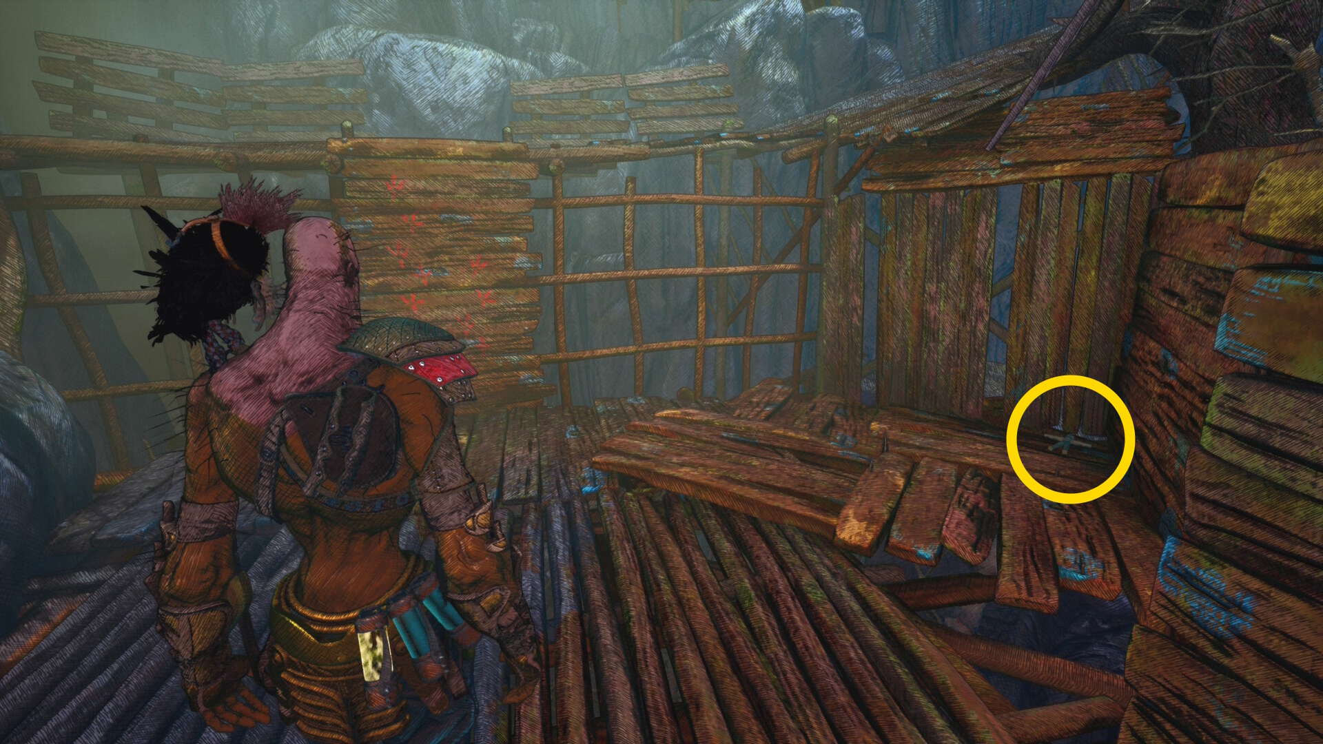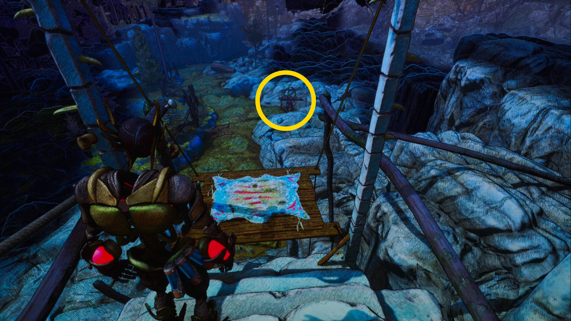 - ボディパーツがあった洞窟を出て、右に進んで木の足場を移動する