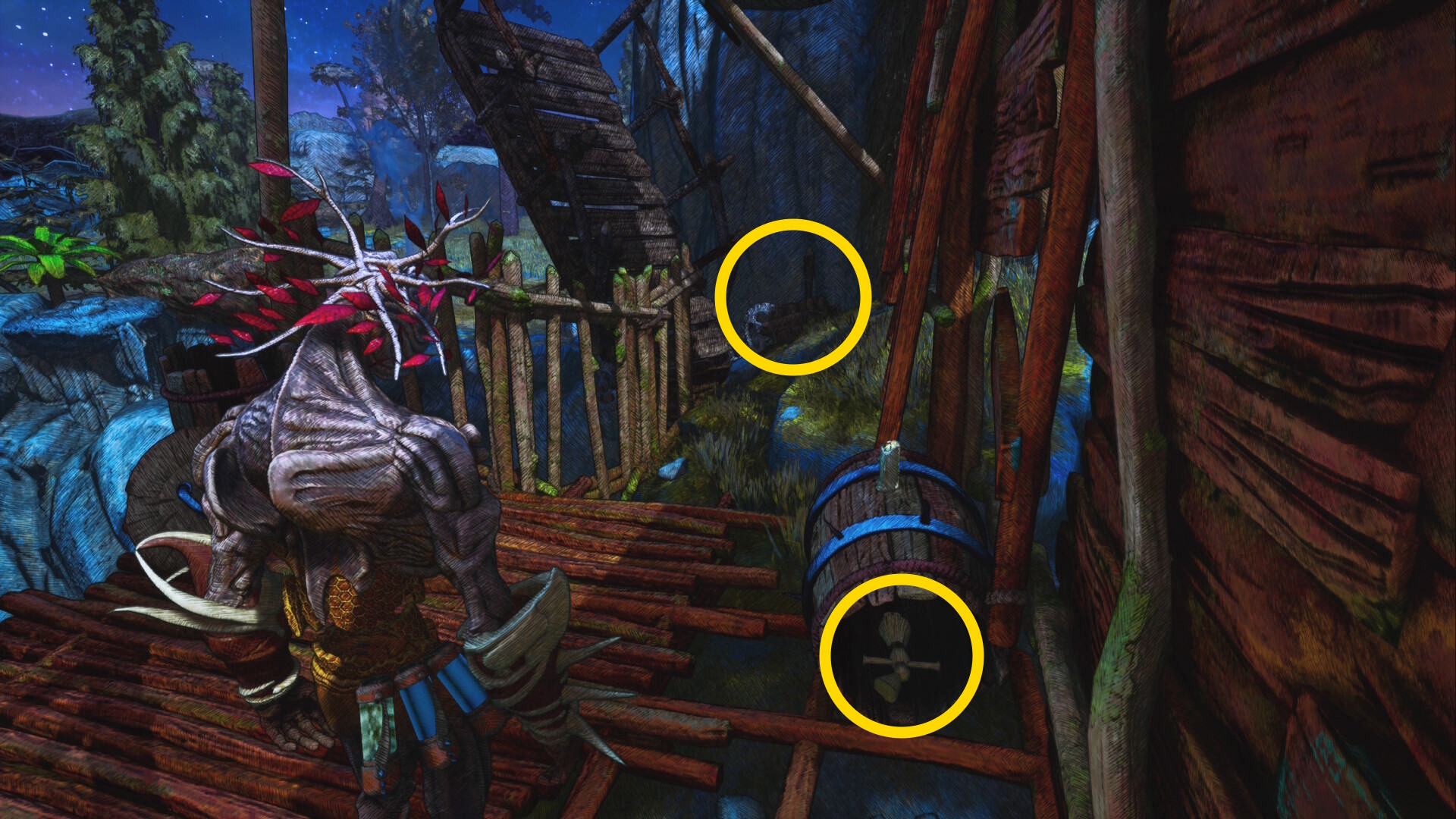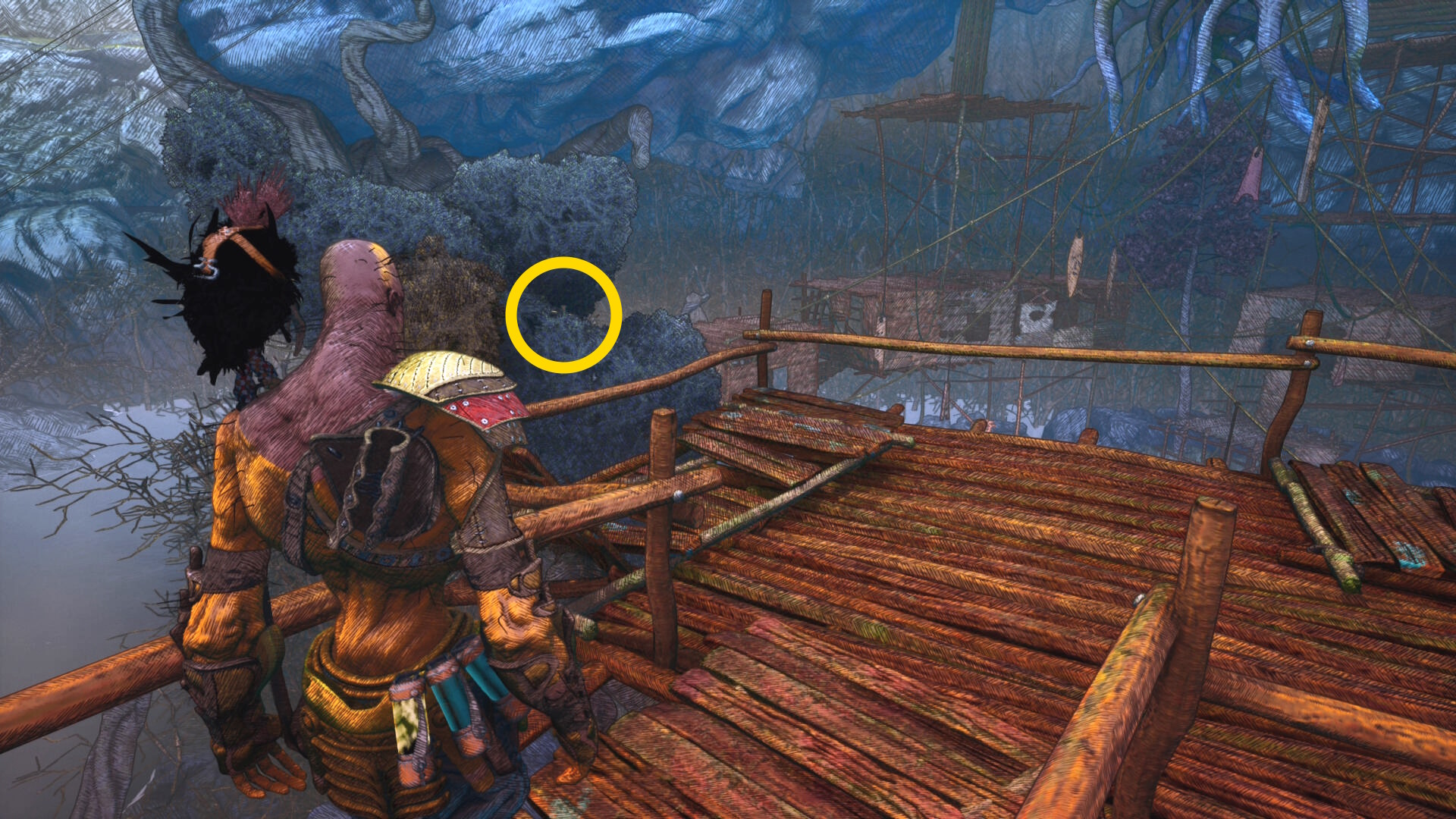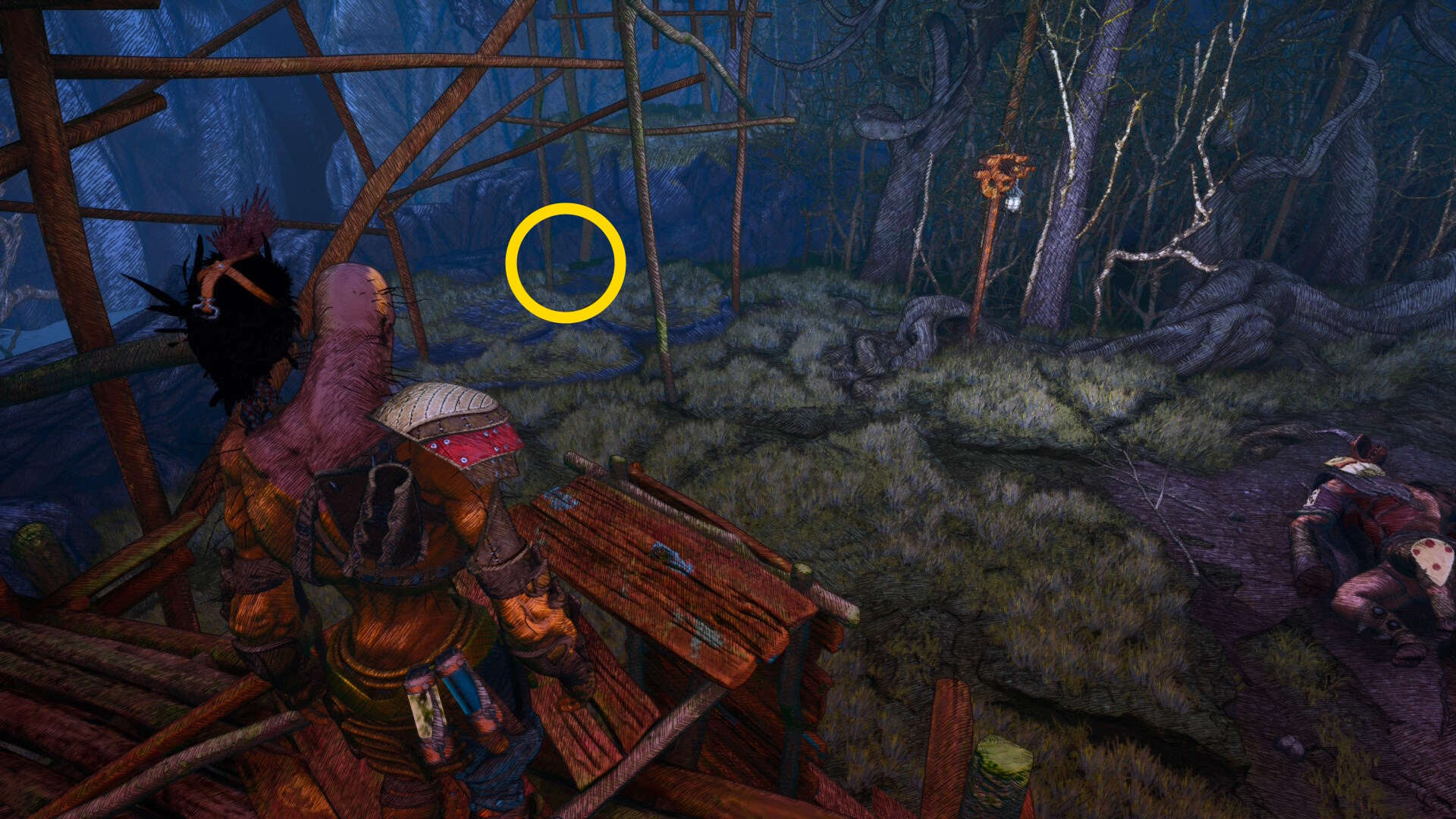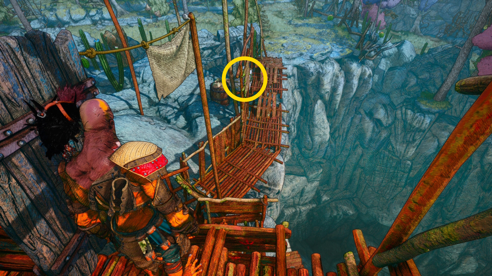 - ボディパーツがあった洞窟を出て、右に進んで木の足場を移動する
