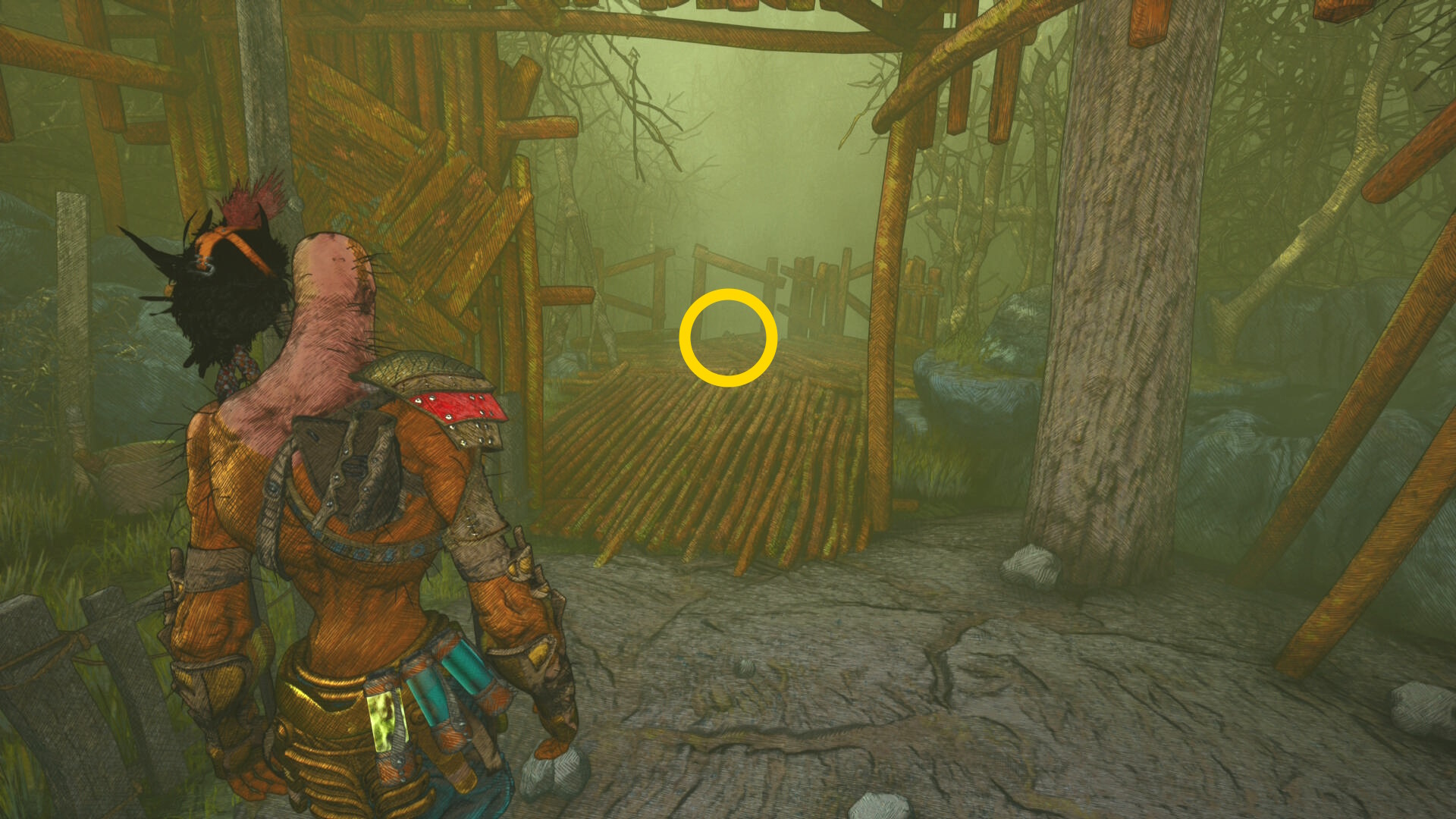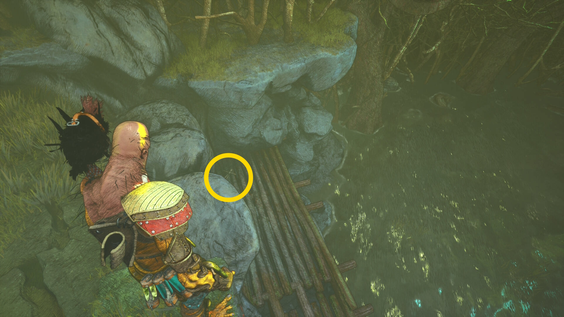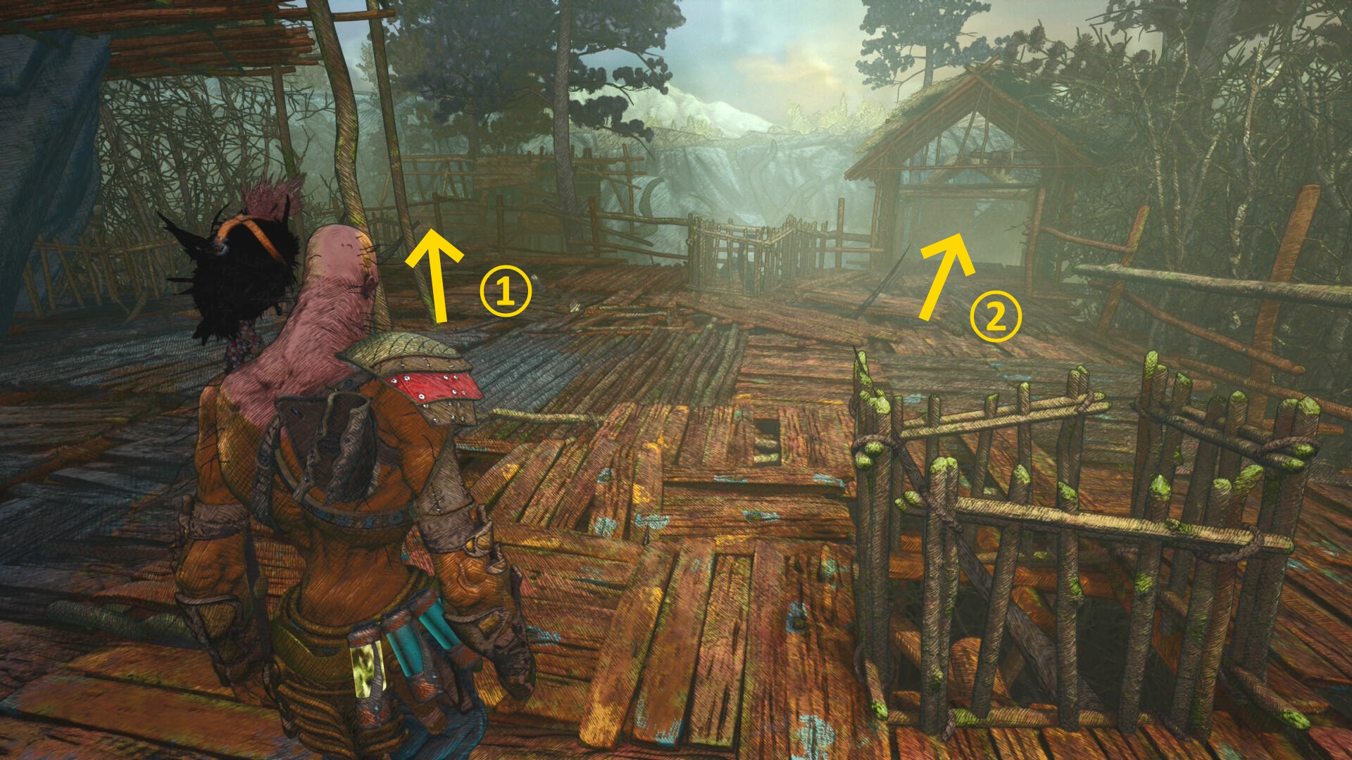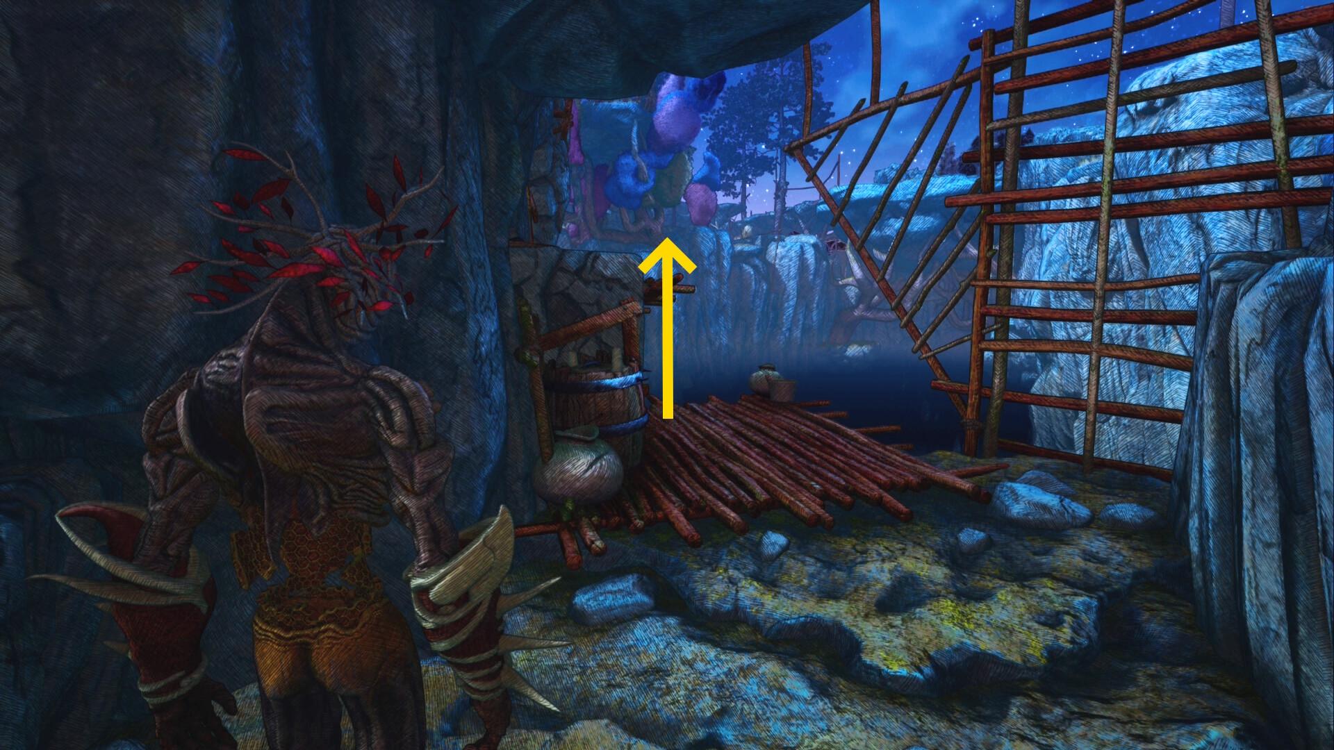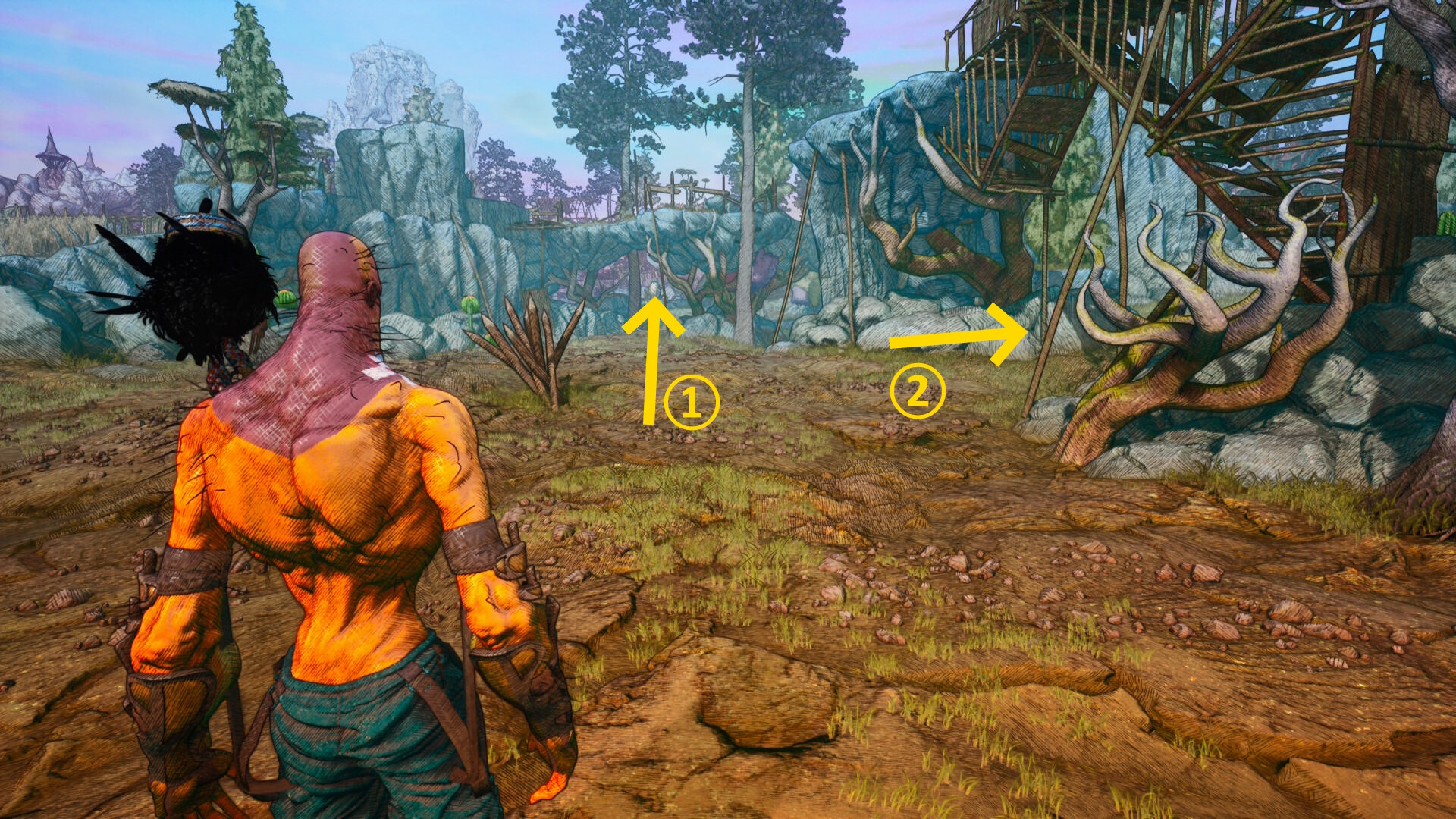 - ボディパーツがあった洞窟を出て、右に進んで木の足場を移動する