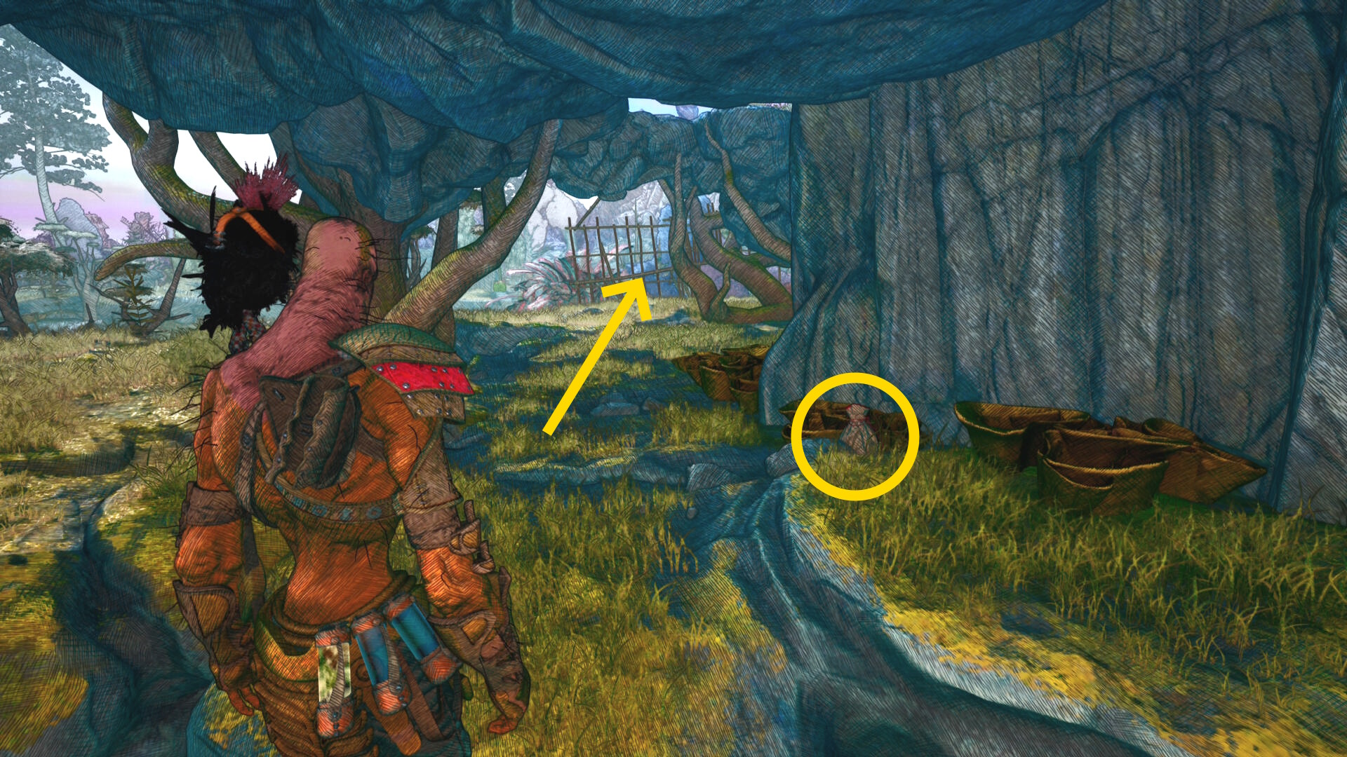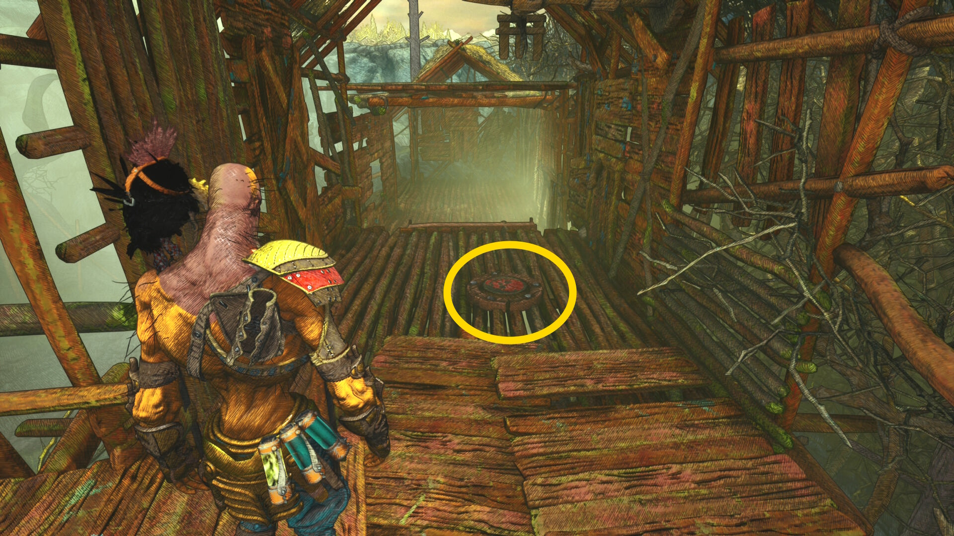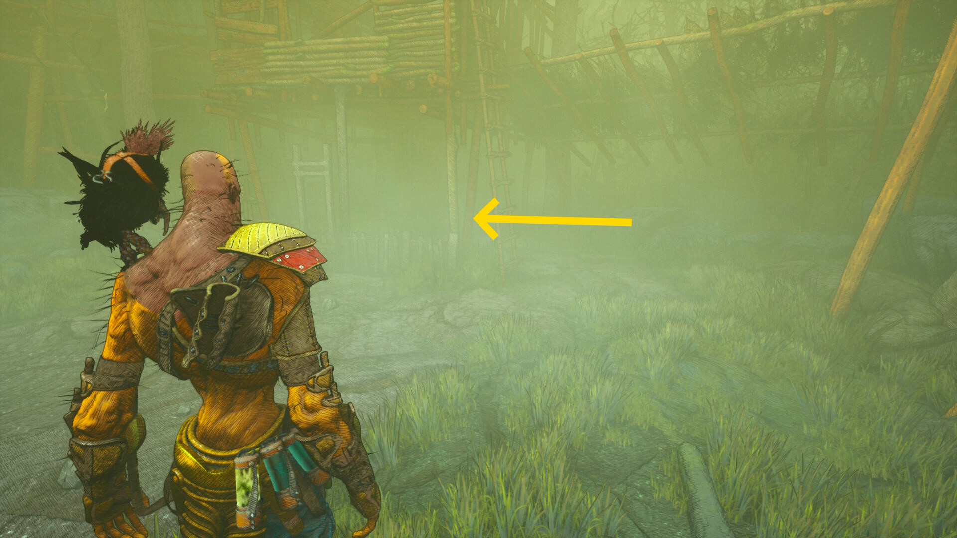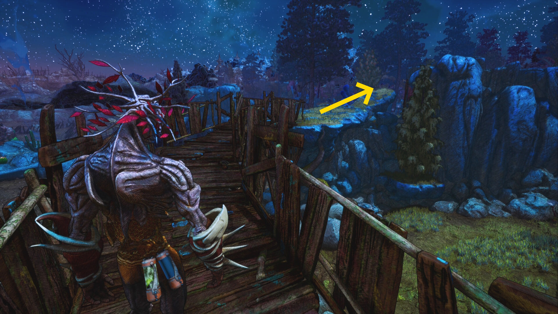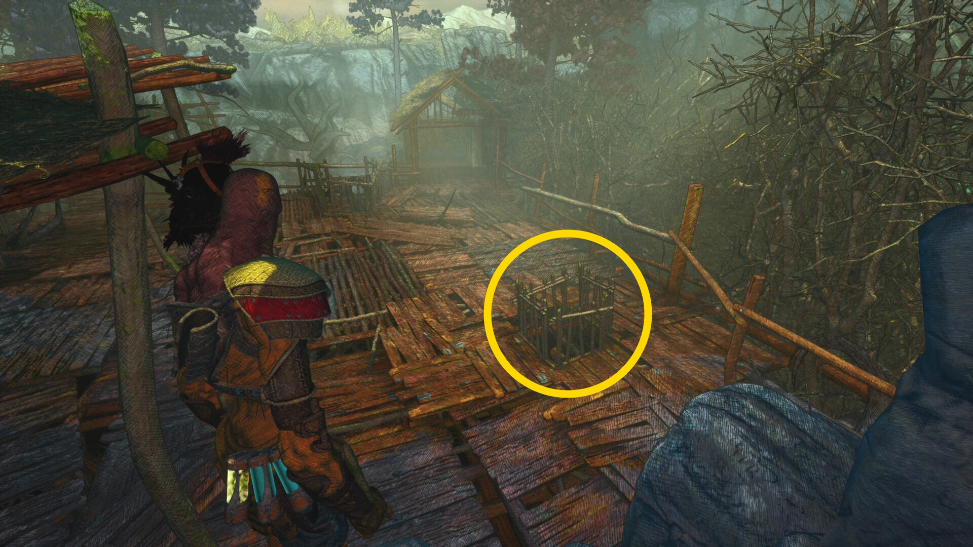 - ボディパーツがあった洞窟を出て、右に進んで木の足場を移動する