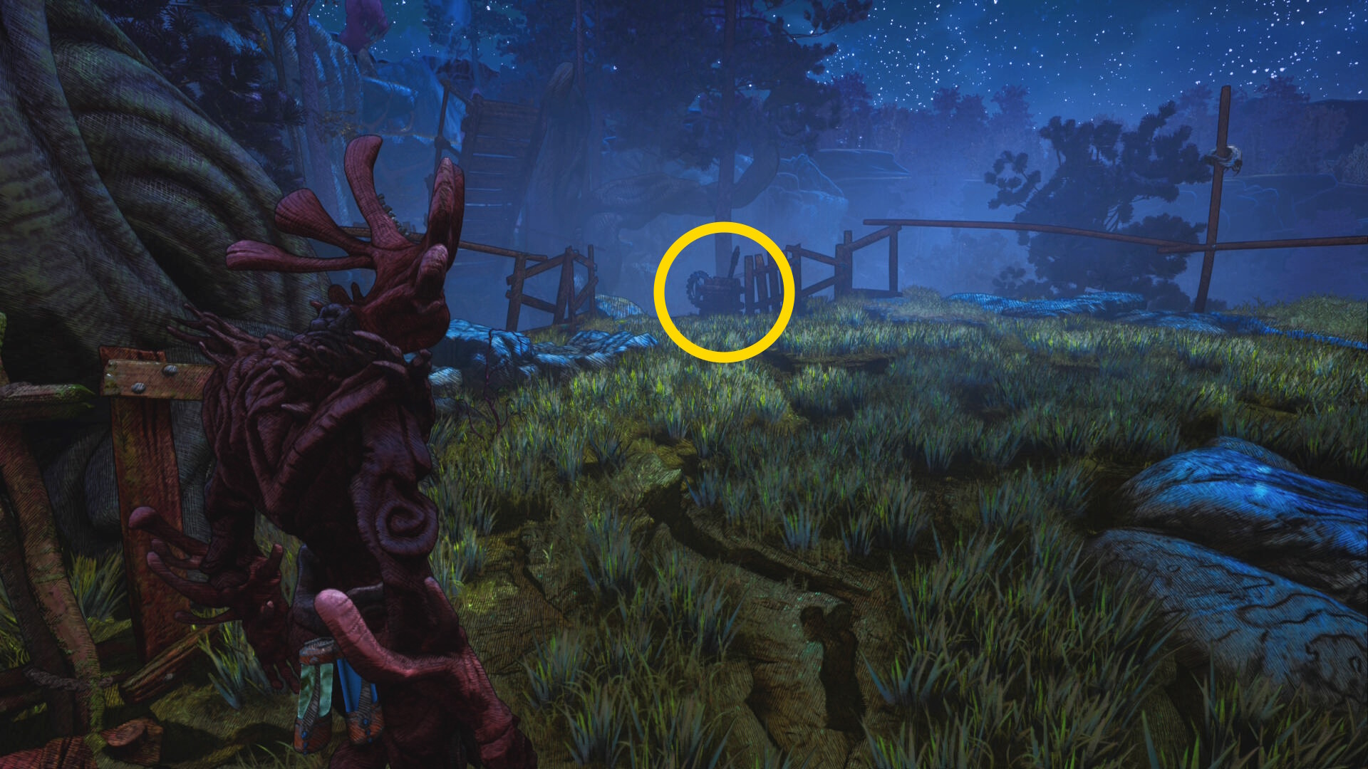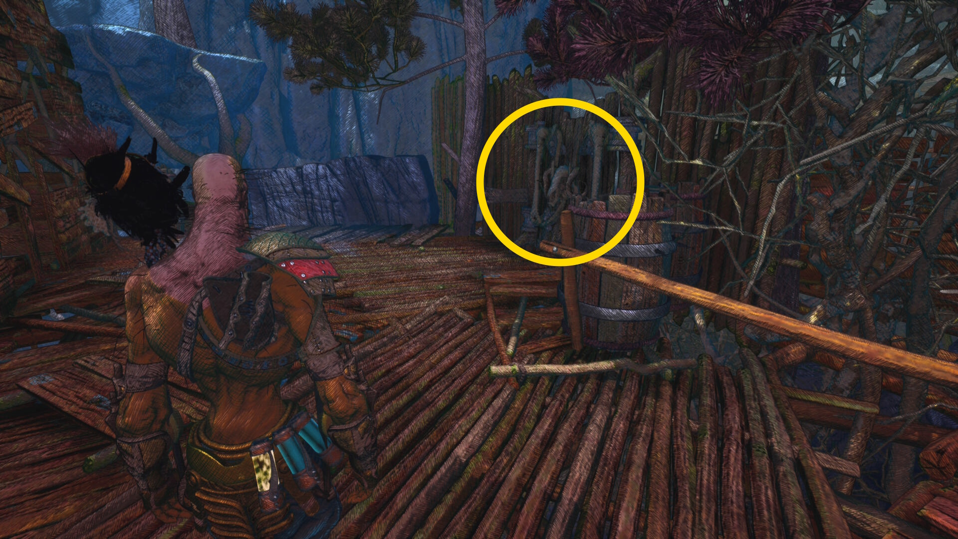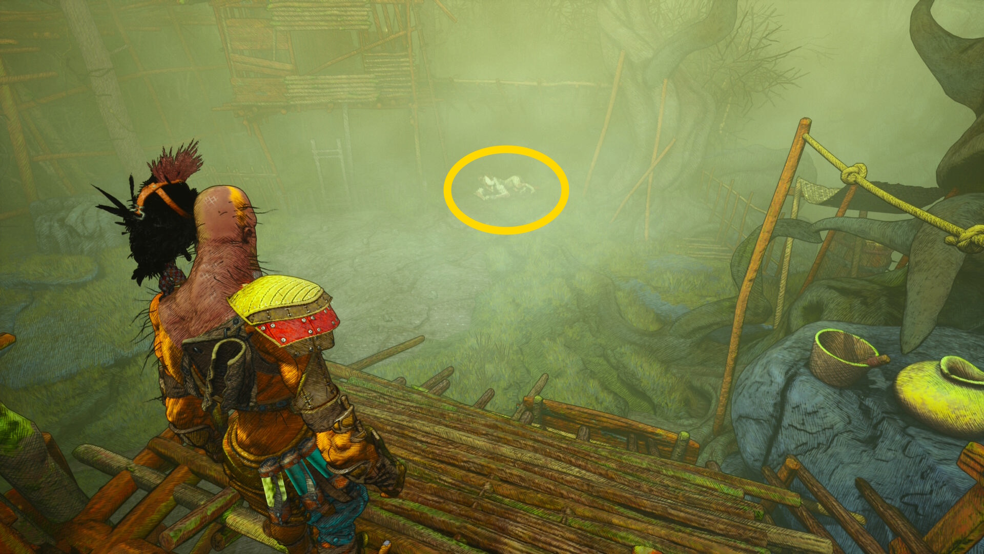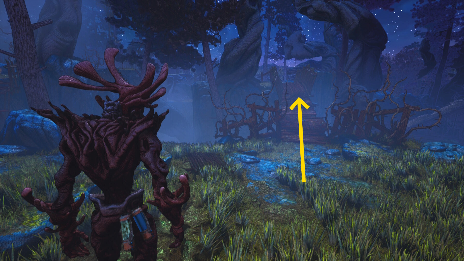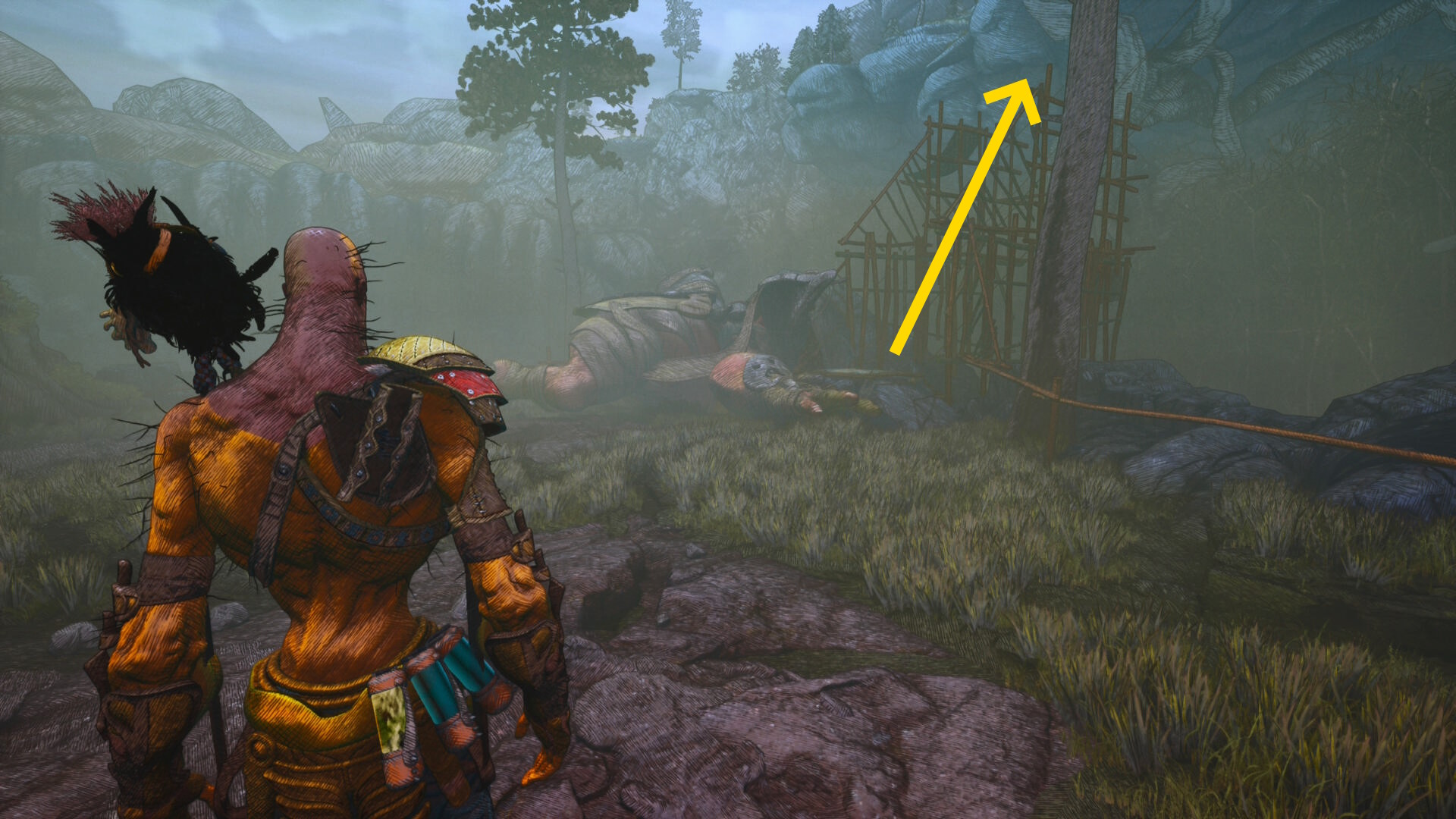 - ボディパーツがあった洞窟を出て、右に進んで木の足場を移動する