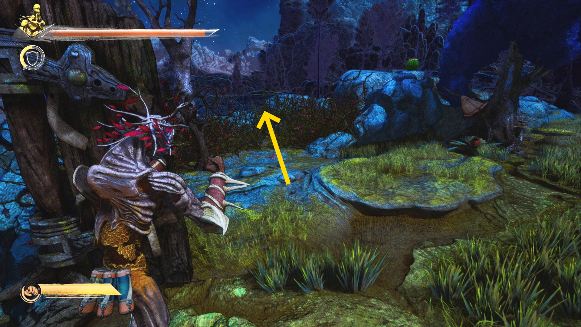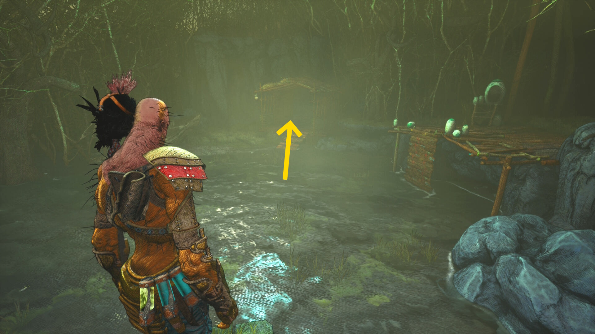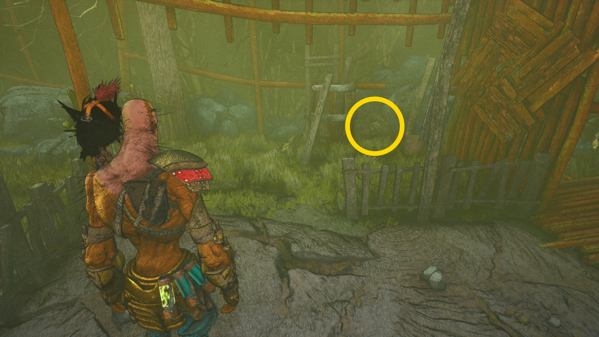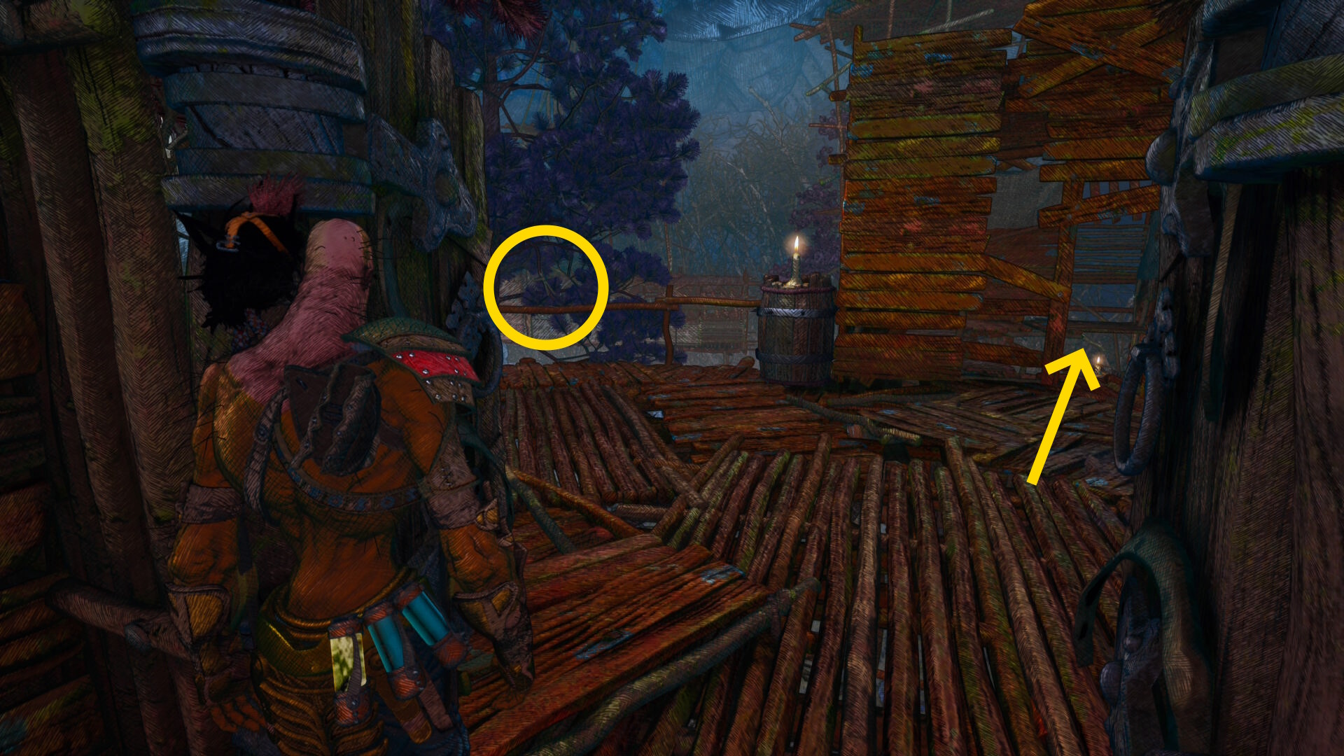 - ボディパーツがあった洞窟を出て、右に進んで木の足場を移動する