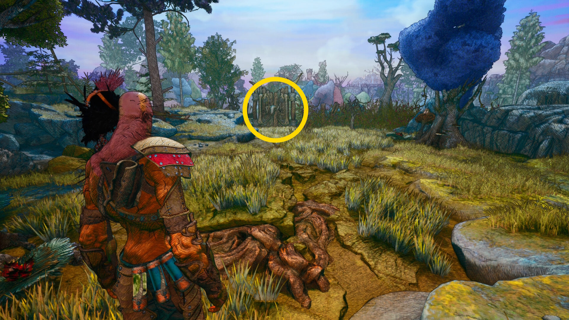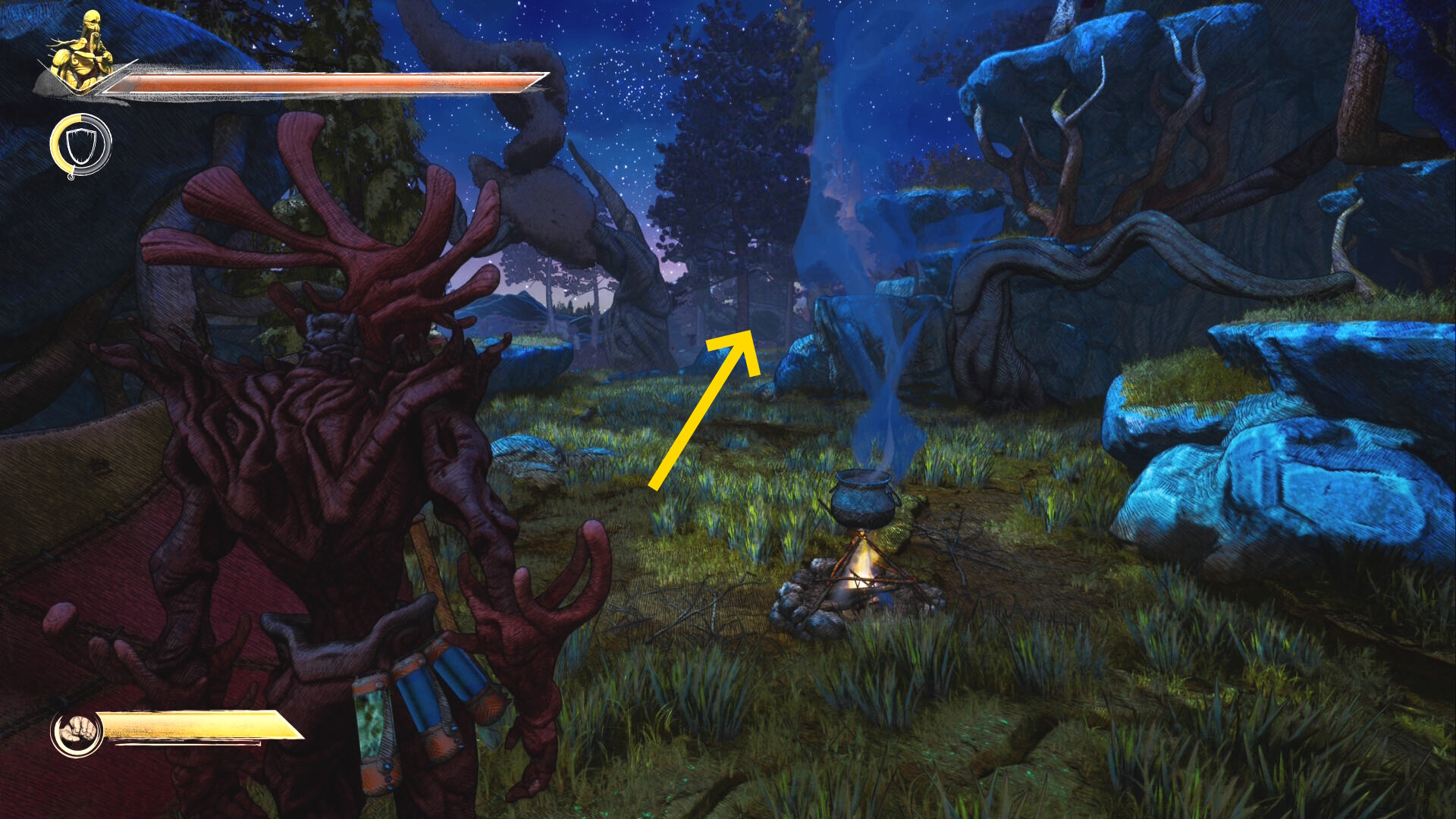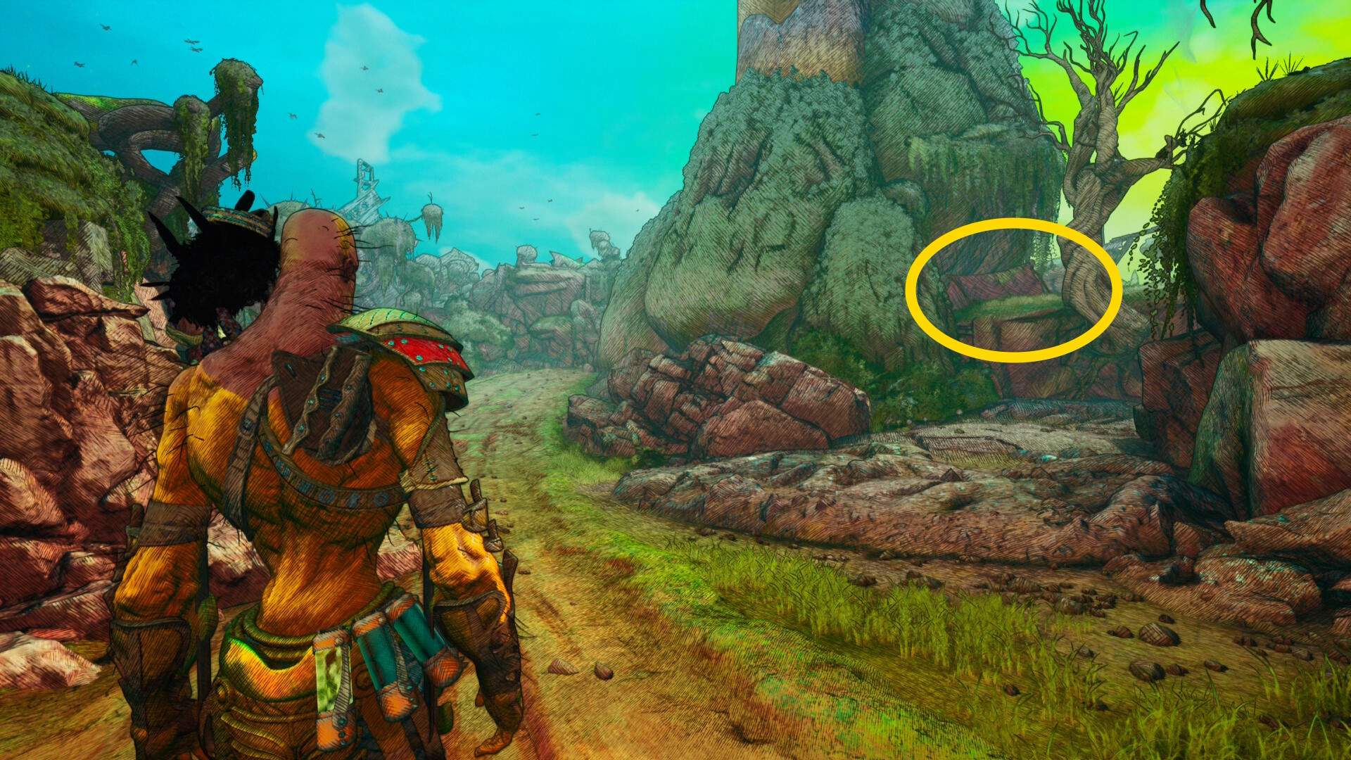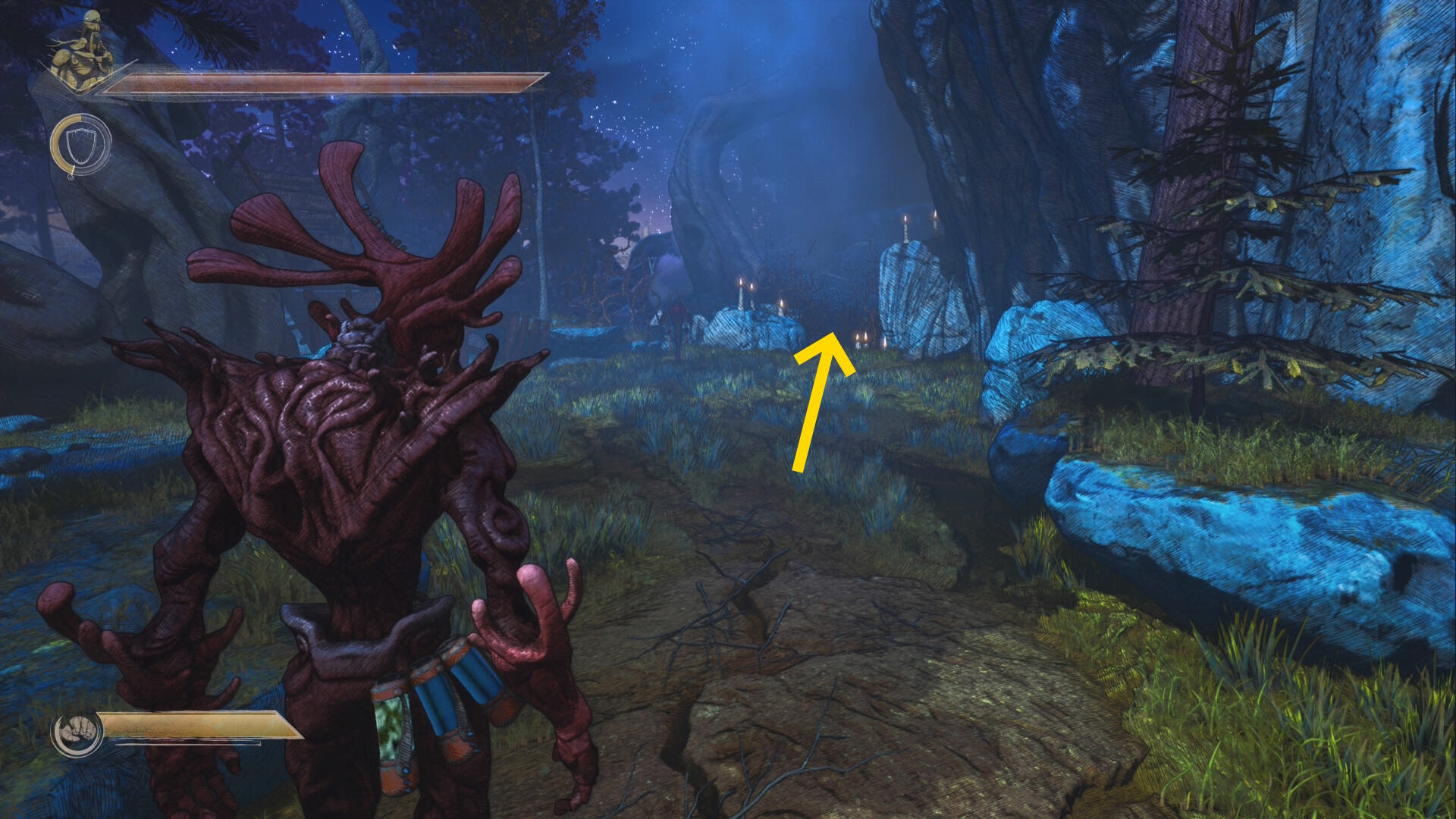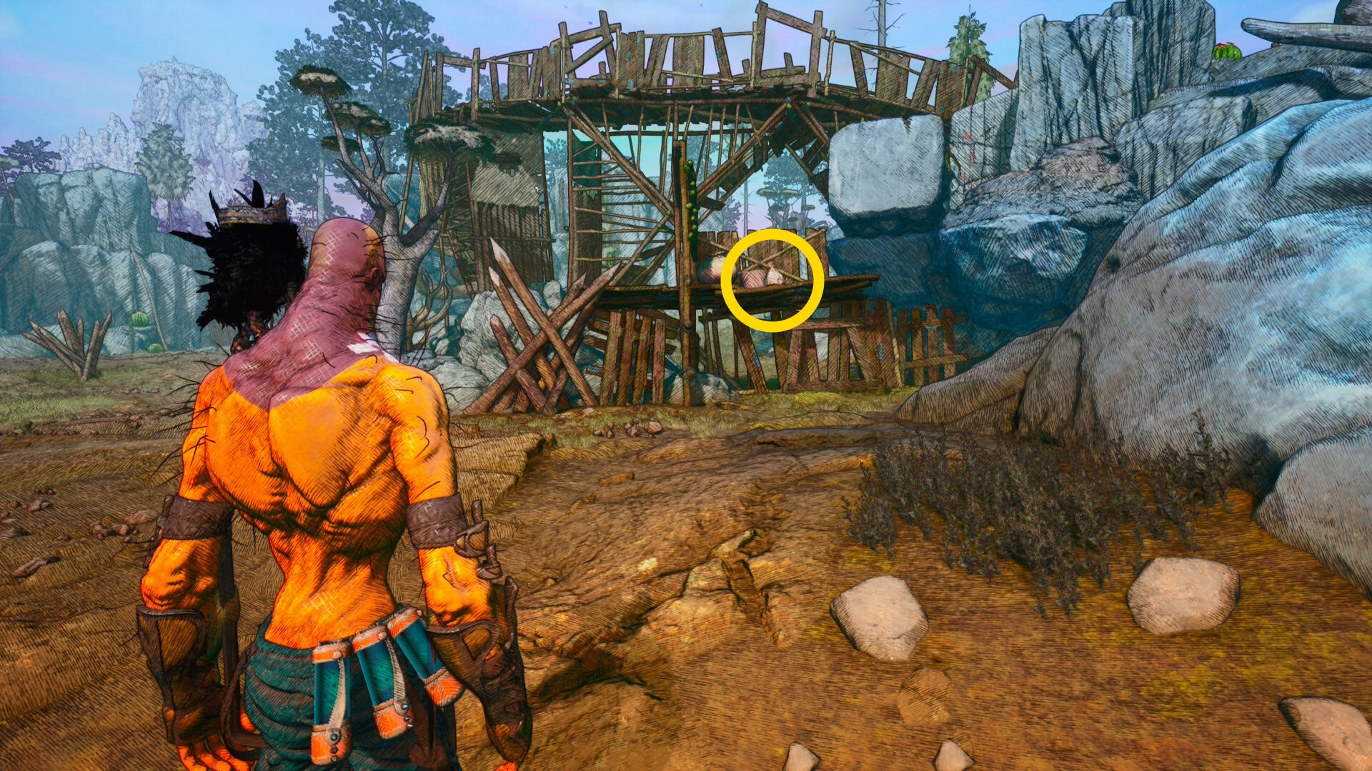 - ボディパーツがあった洞窟を出て、右に進んで木の足場を移動する