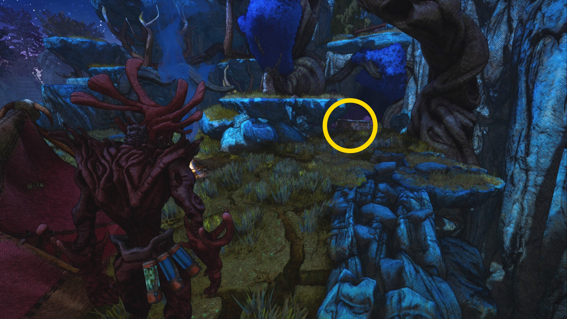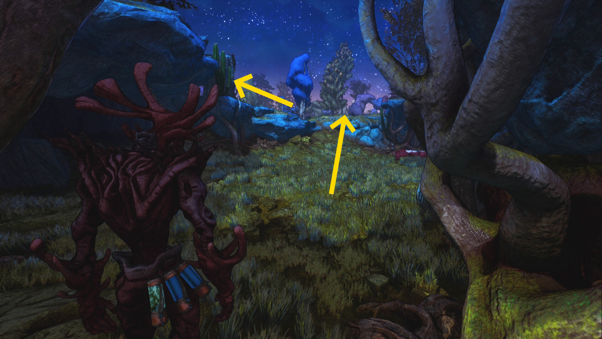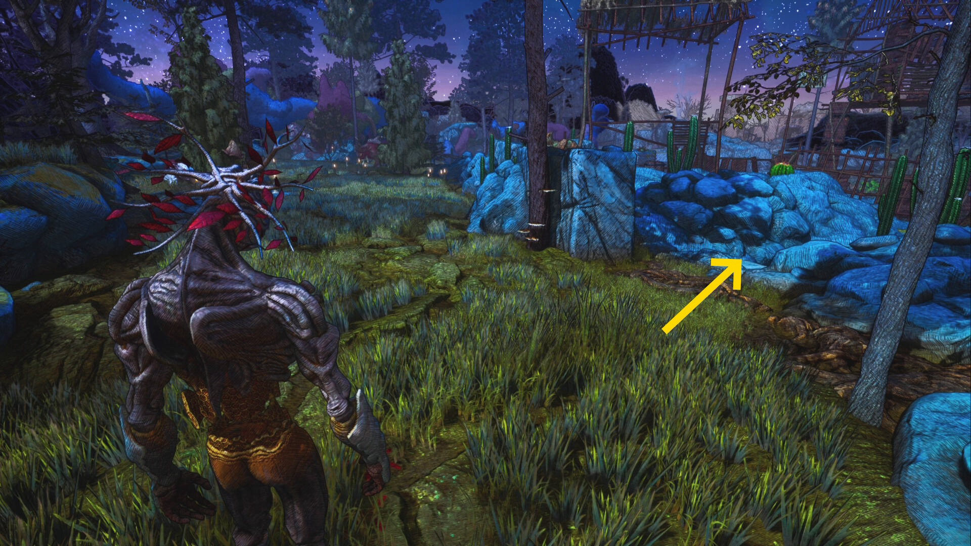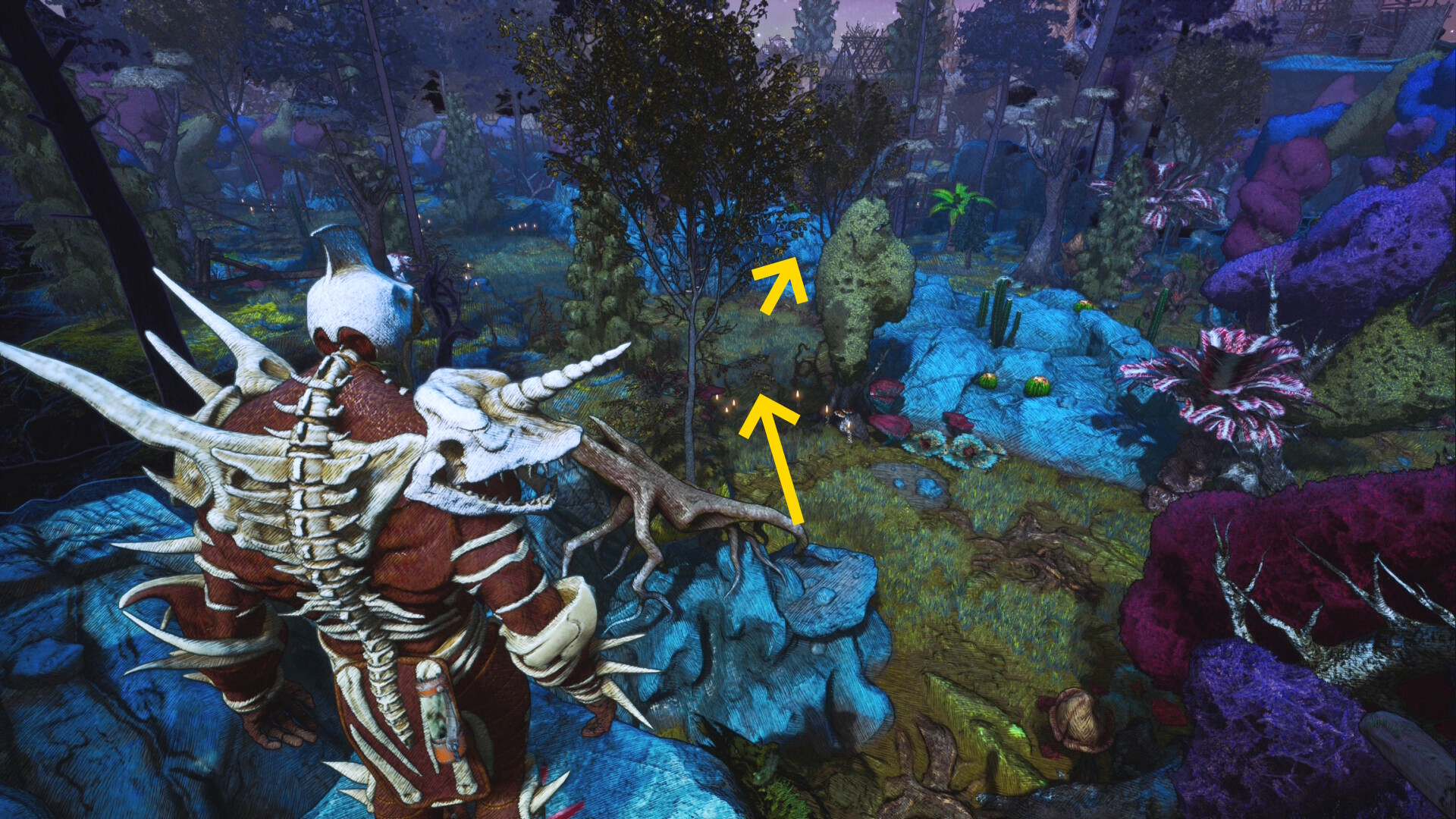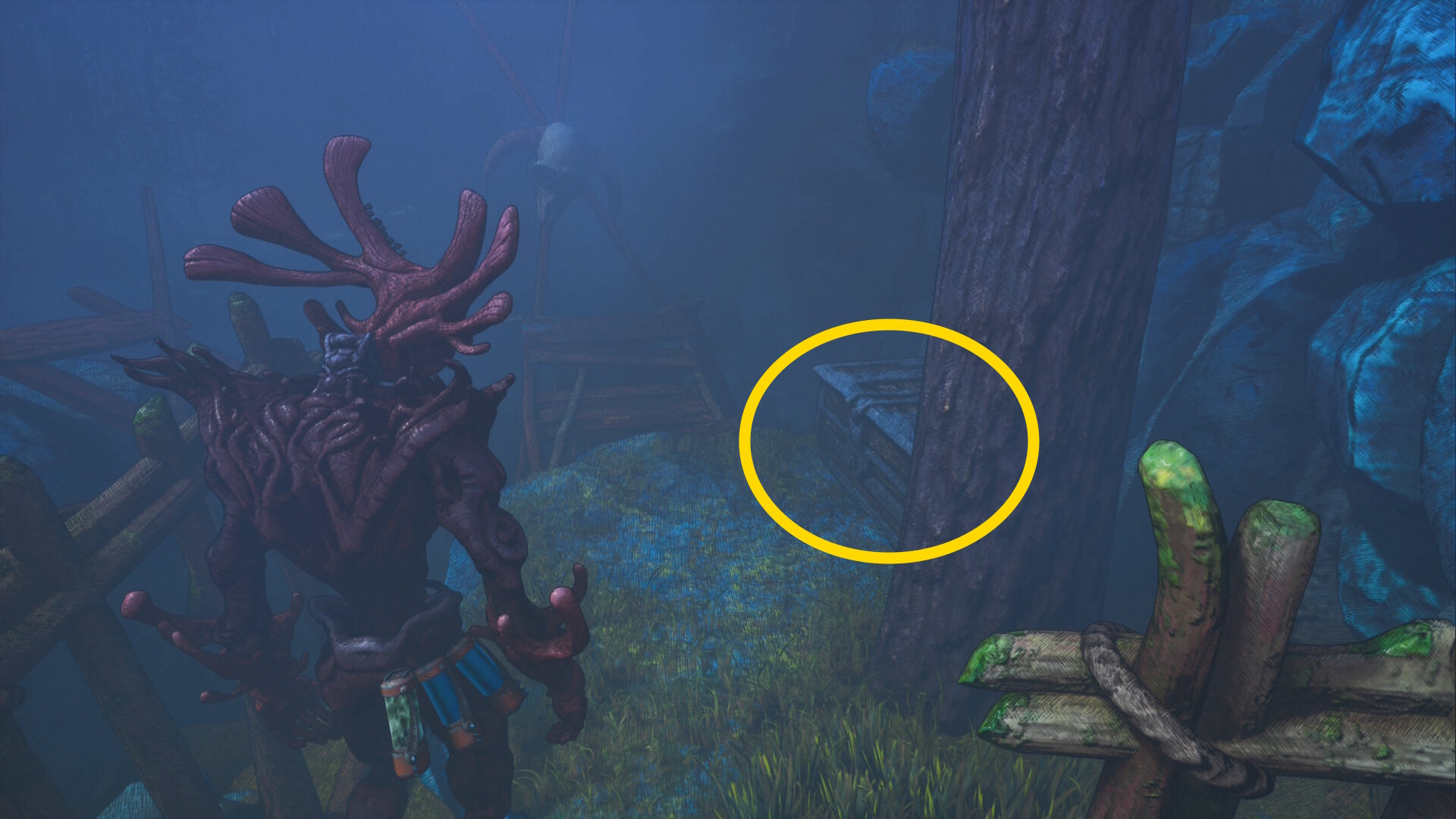- 中に入ると正面、中央に見える木の裏に ボーンスキン – 頭(ボディパーツ:32/28)