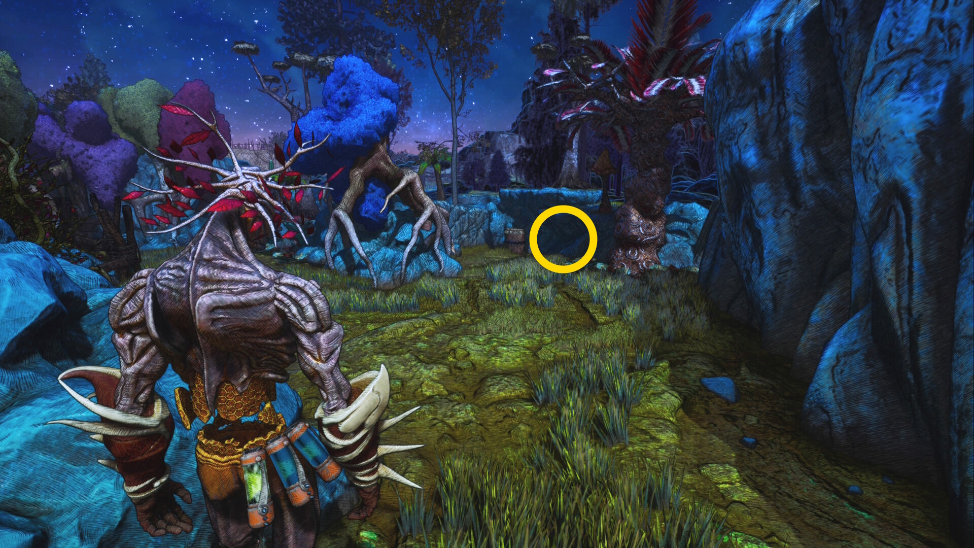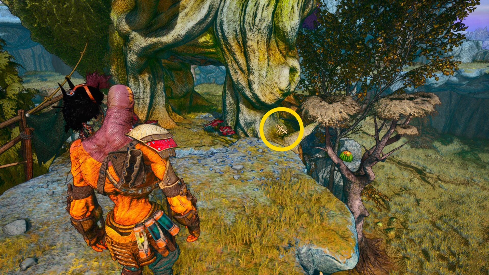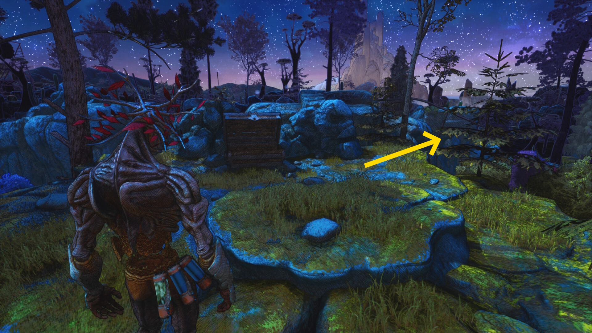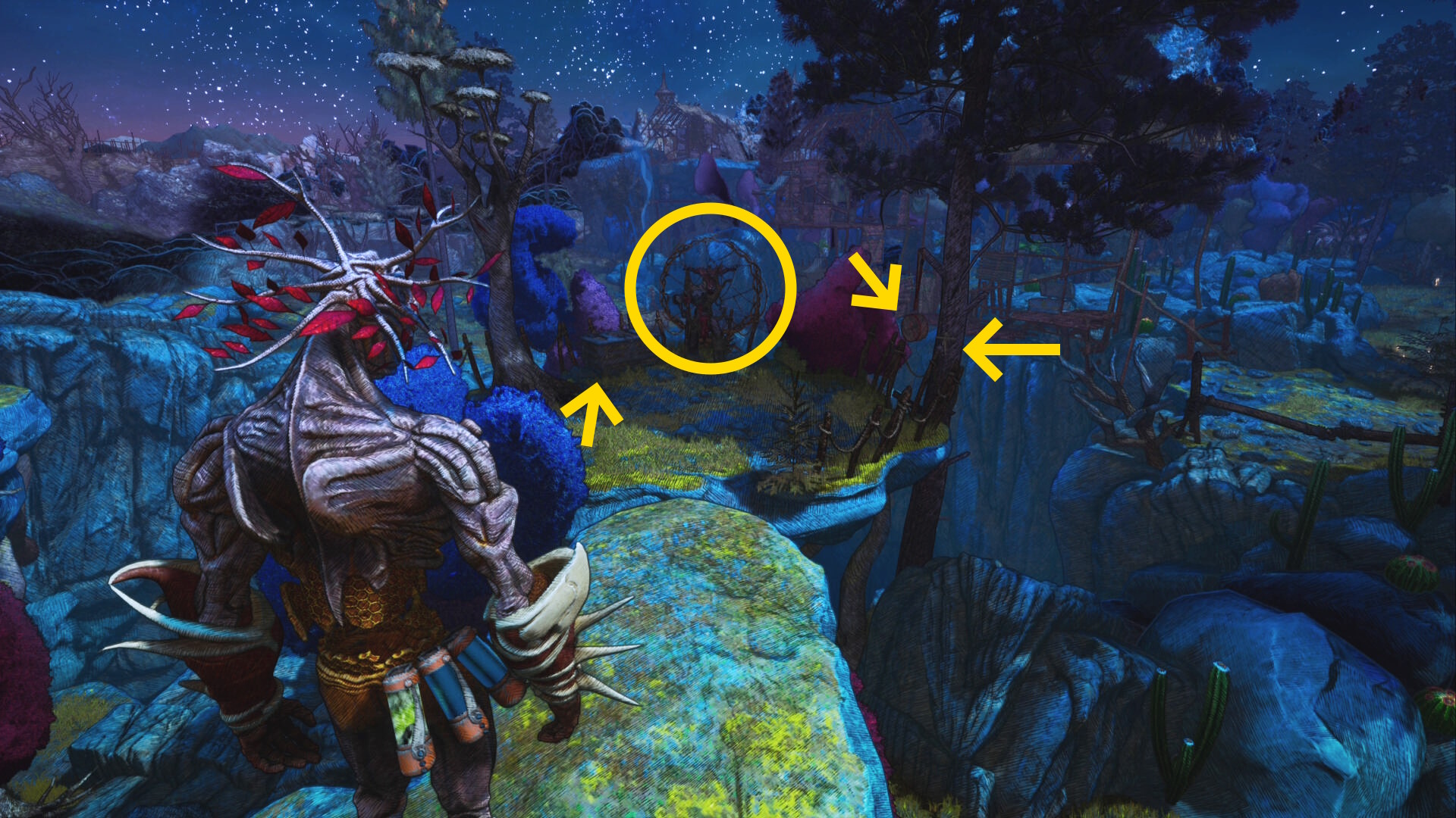 - 中に入ると正面、中央に見える木の裏に ボーンスキン – 頭(ボディパーツ:32/28)