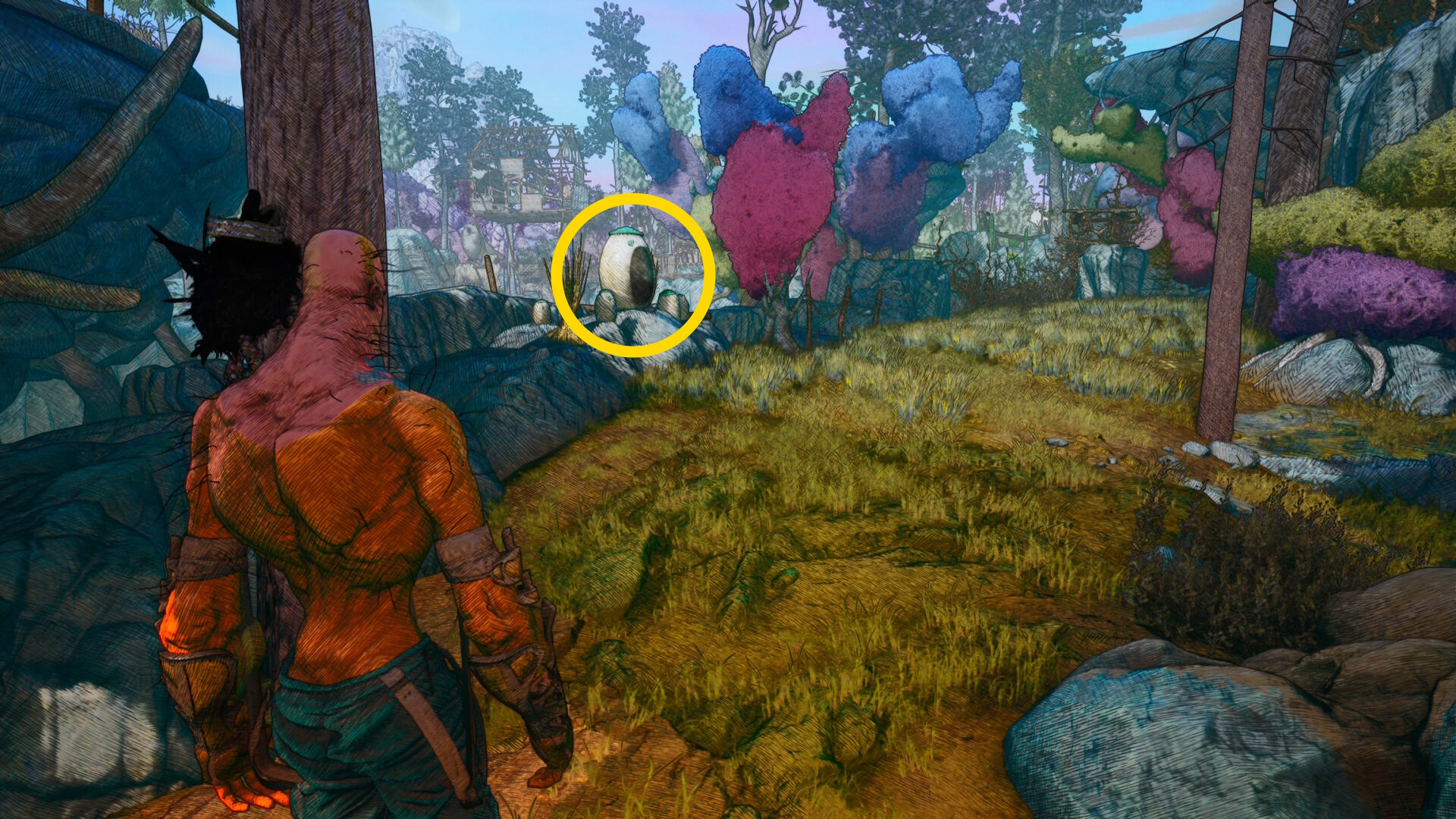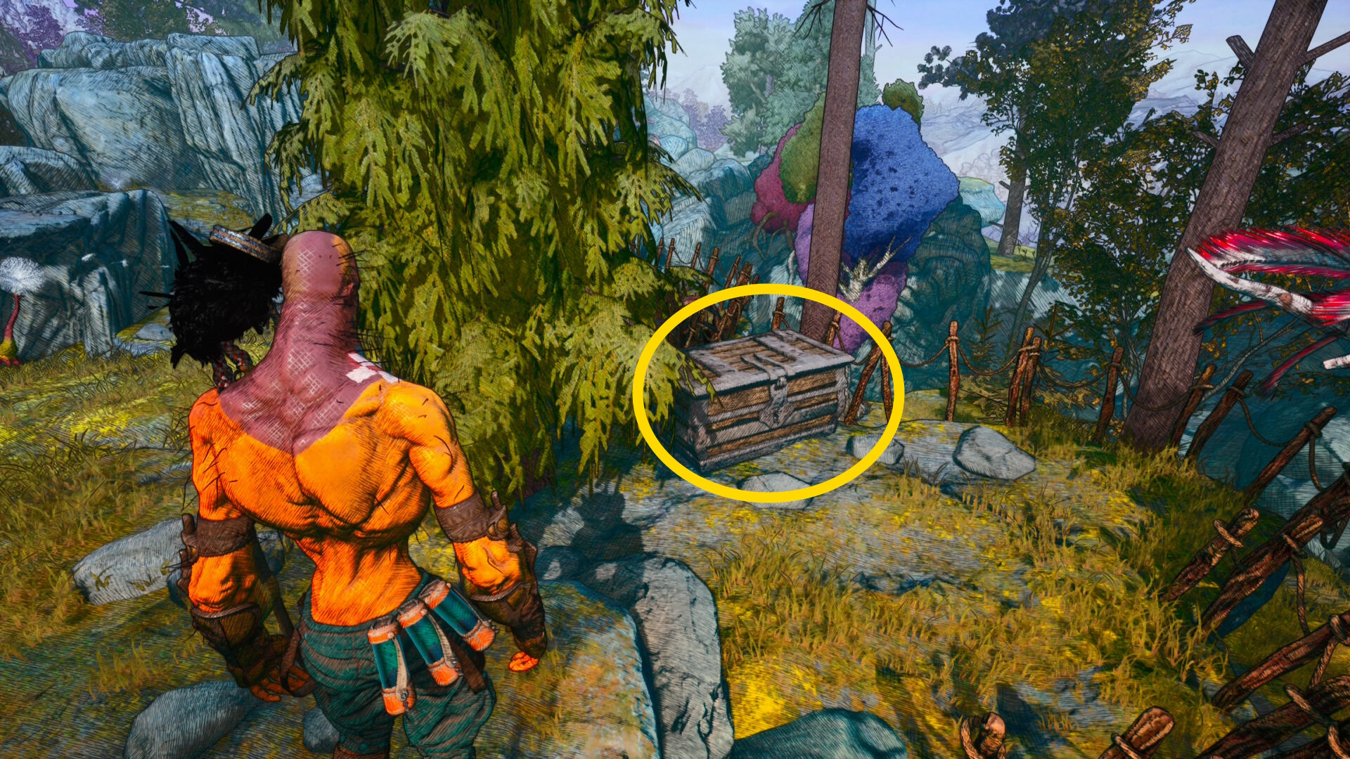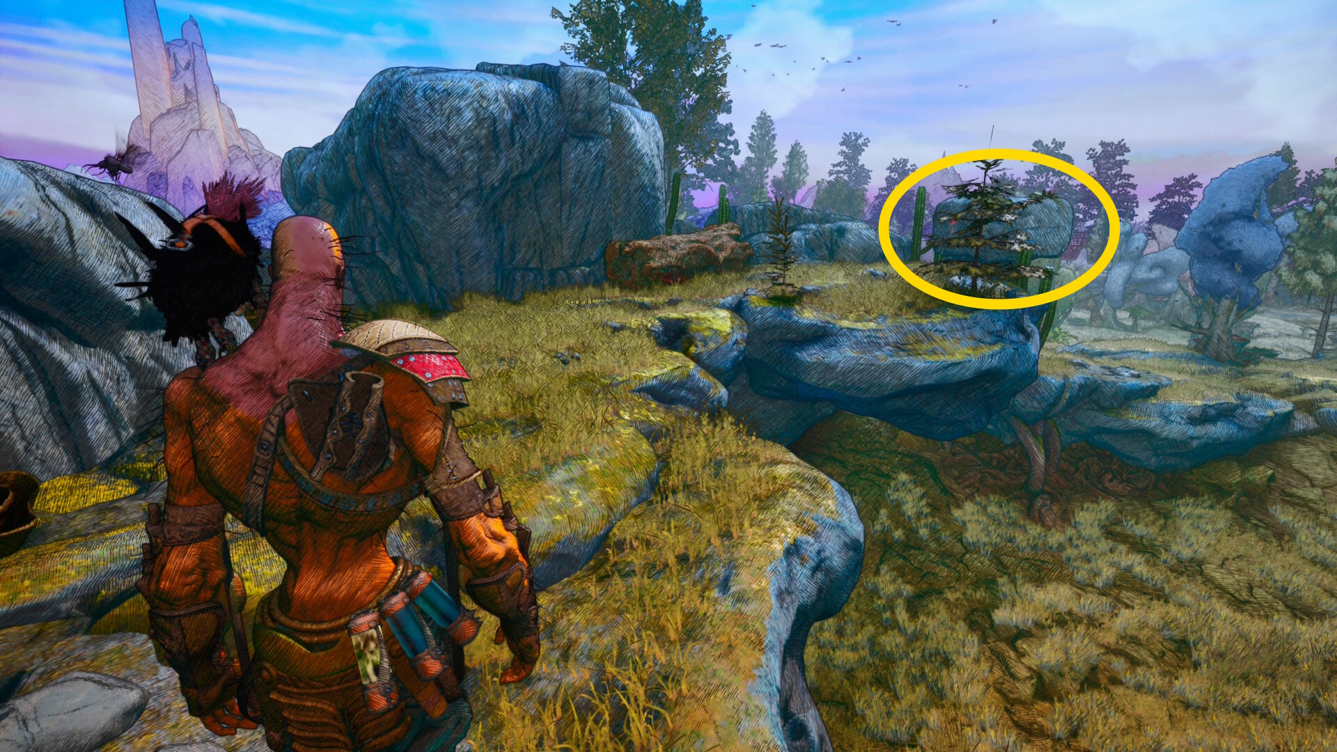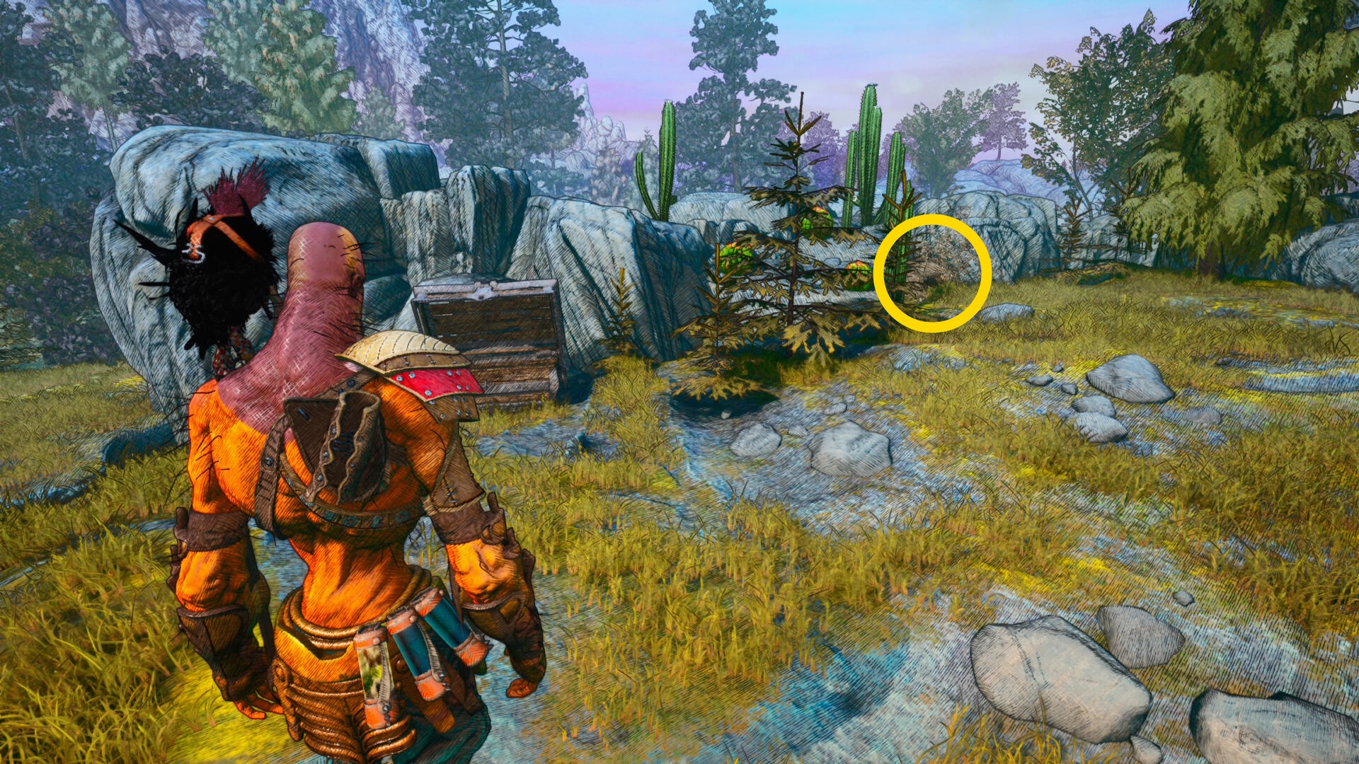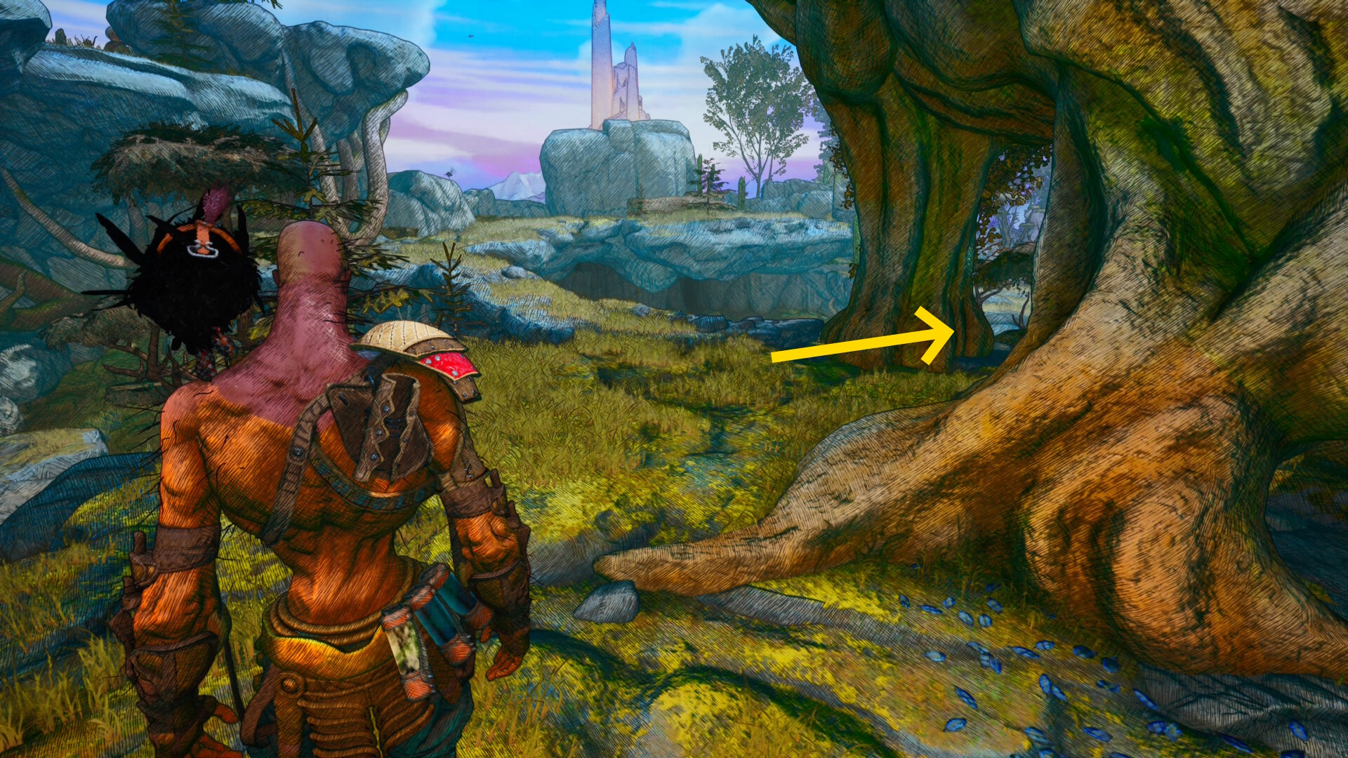 - 中に入ると正面、中央に見える木の裏に ボーンスキン – 頭(ボディパーツ:32/28)