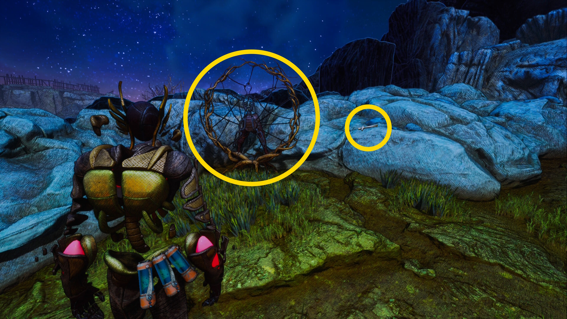 - コーウィッドと杖持ちがいたところには人型ロボット(夜)が1体出現する