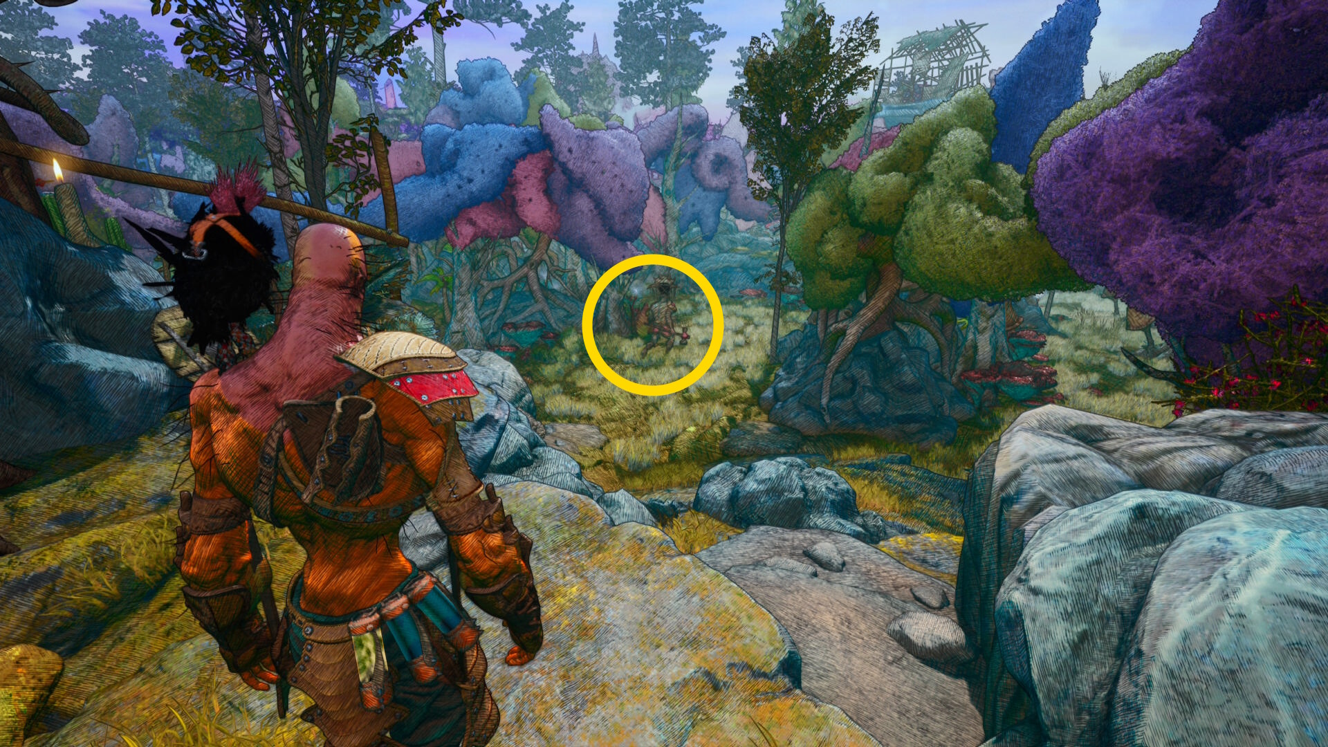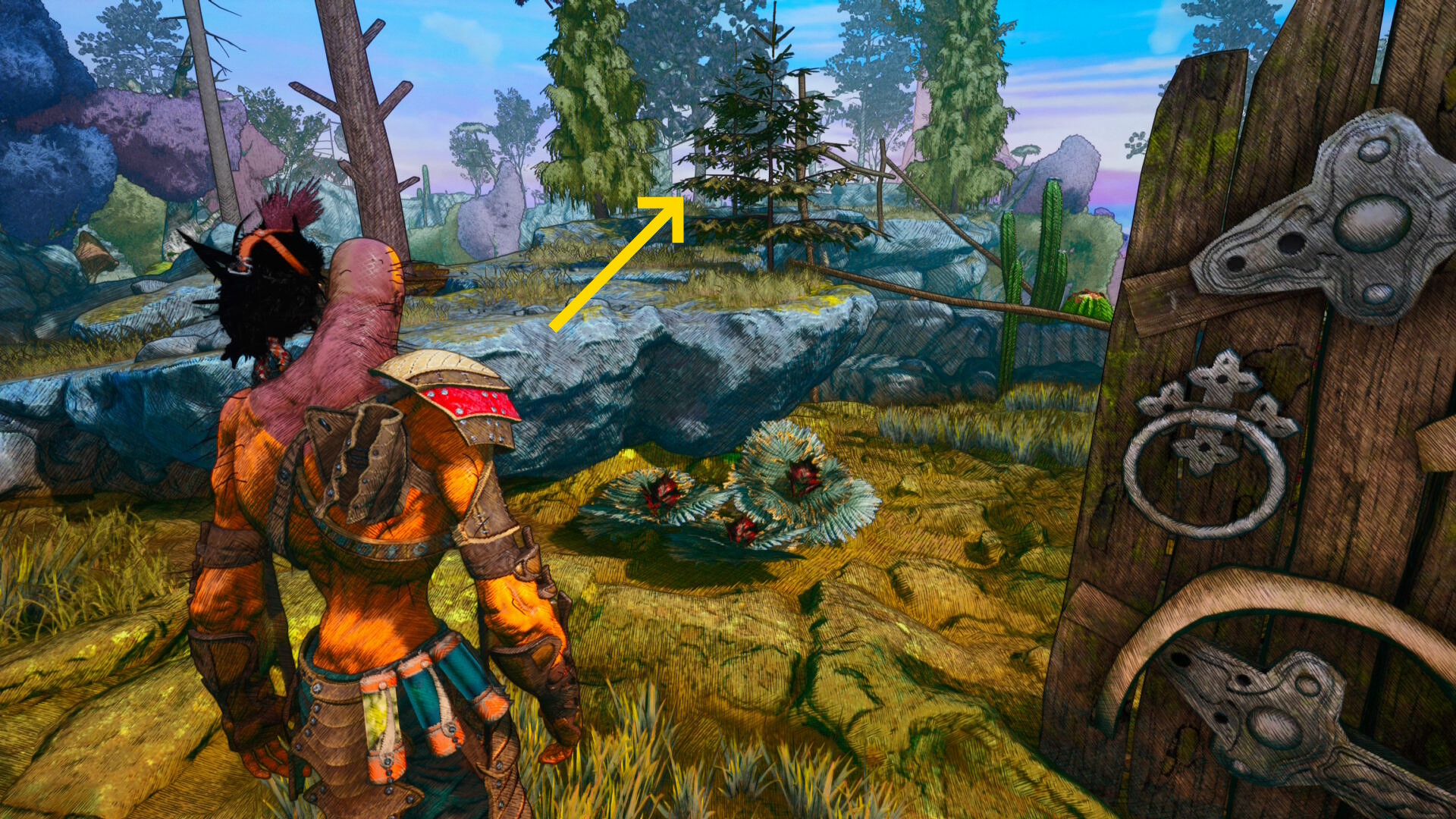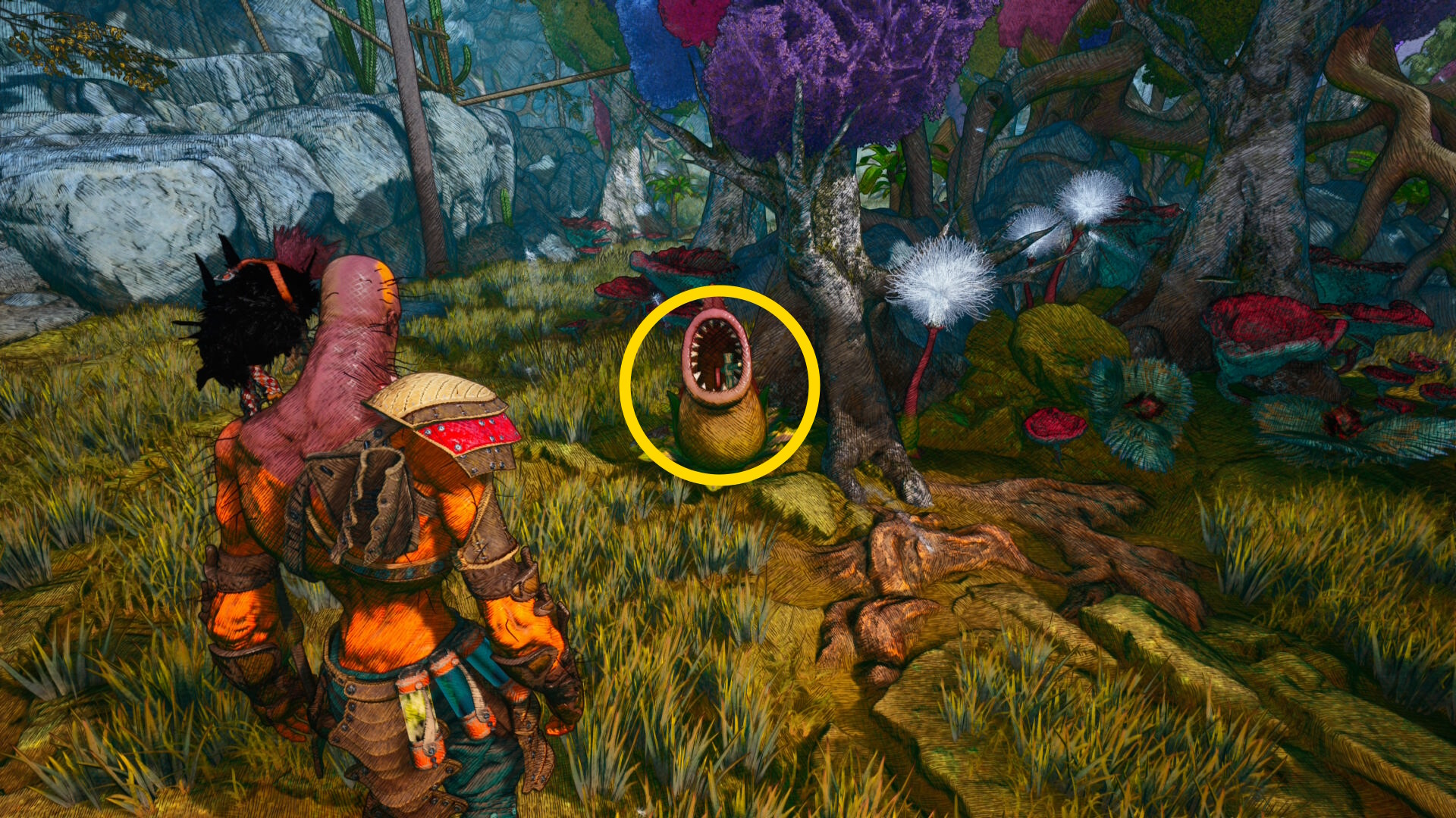 - 食虫植物のところから左奥に進むと戦闘になる(ハンマー持ち、ブーメラン持ち、ならず者の3体)