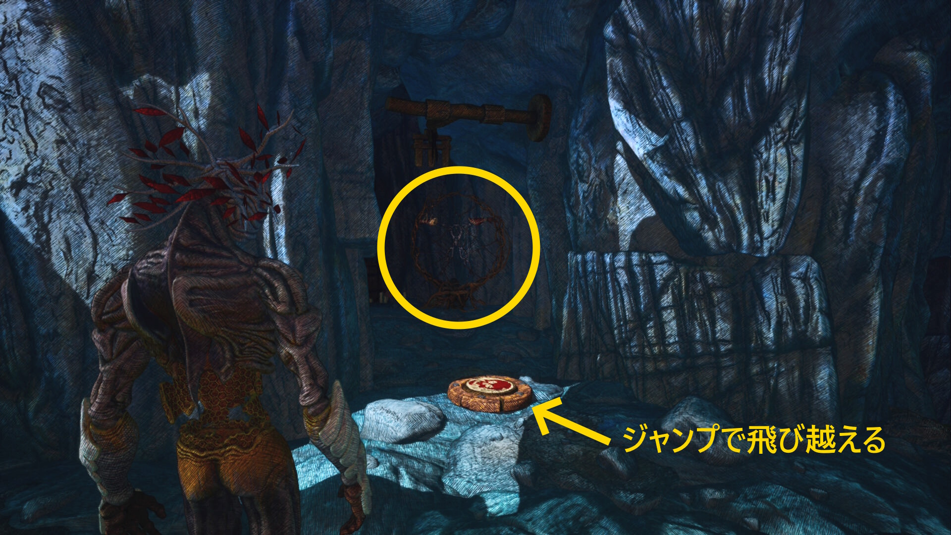 - 第2キャンプでセーブ後、奈落を背にして正面奥に進む