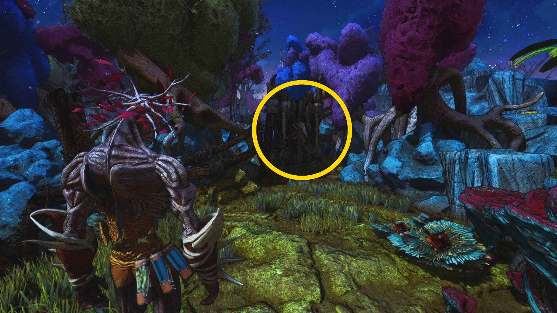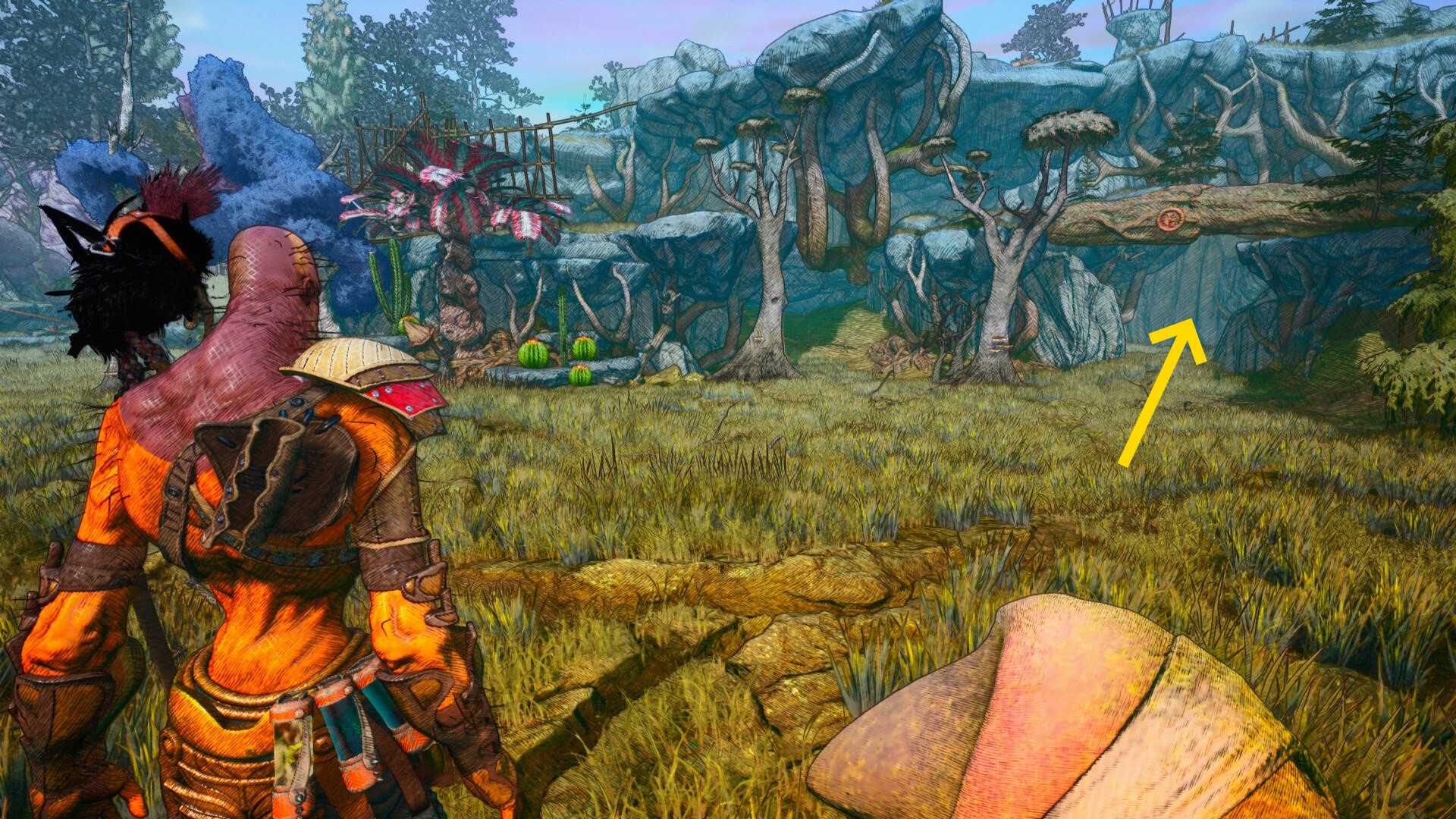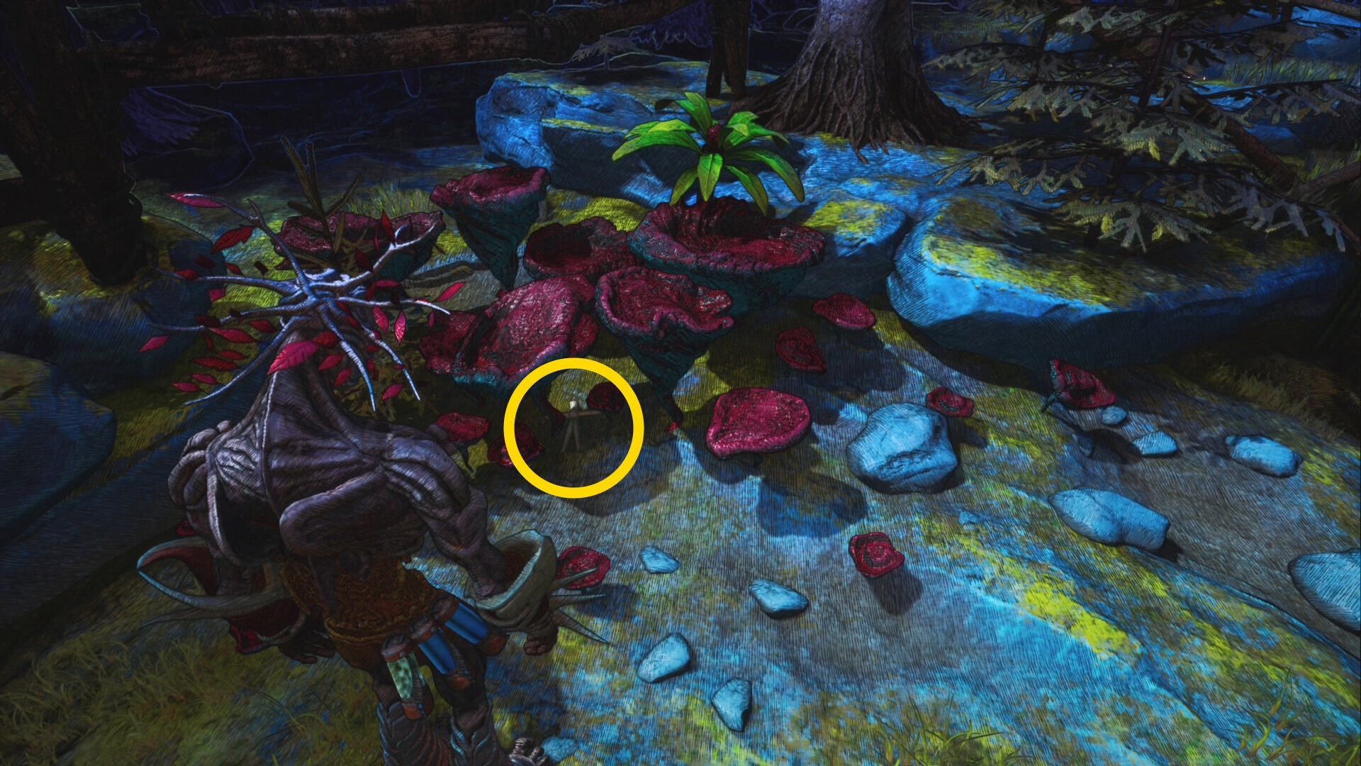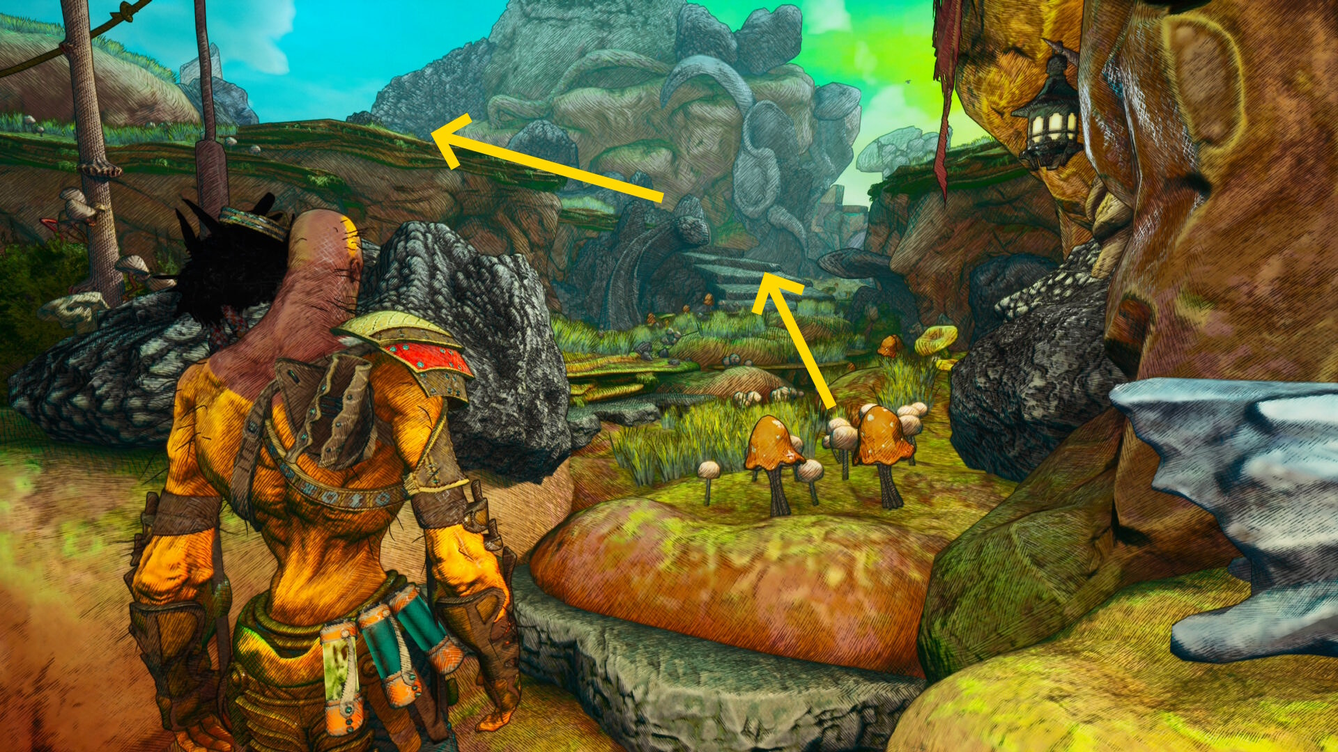 - キャンプを過ぎ、奥の壁を登り、キノコの林に到着