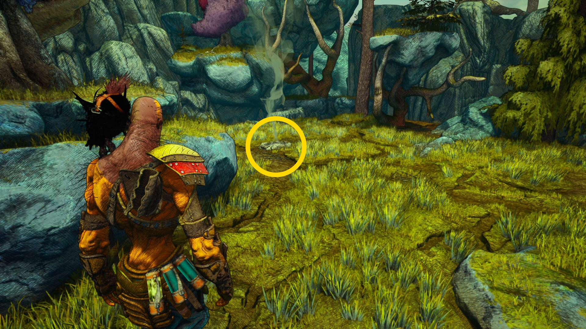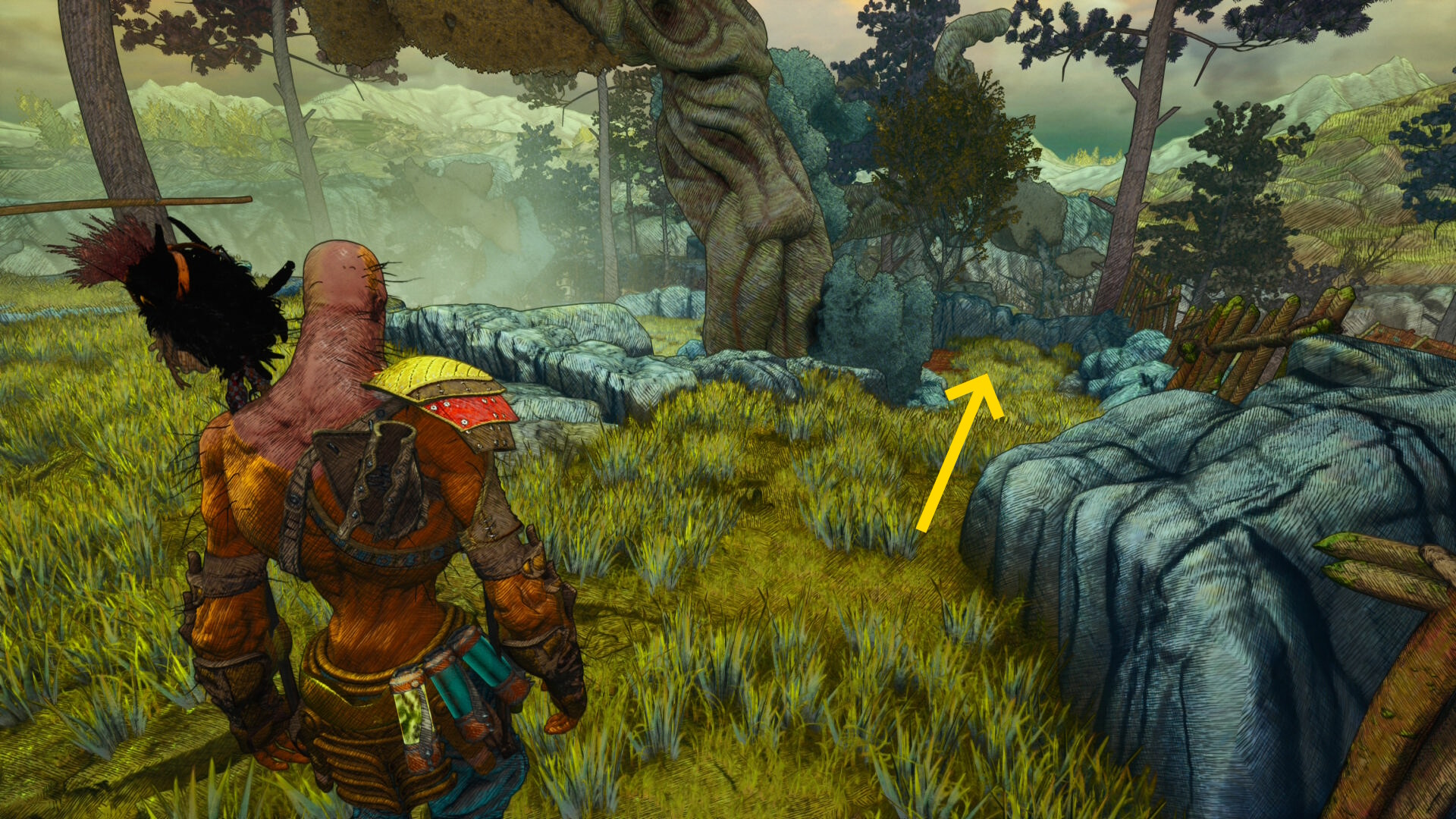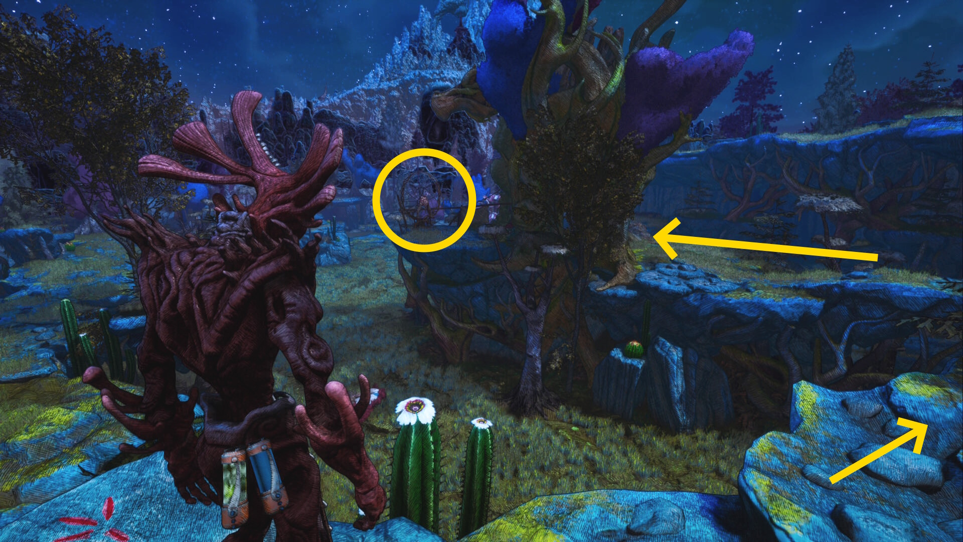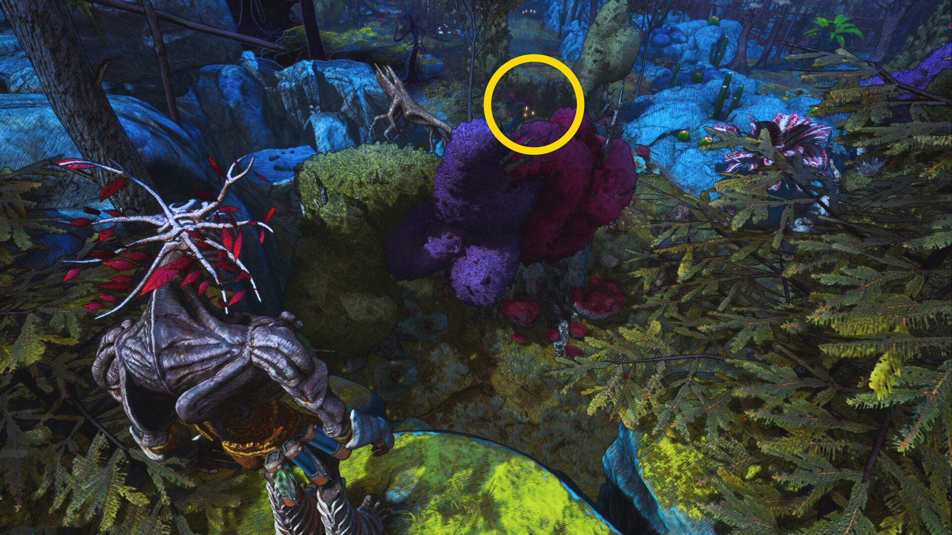 - キャンプを過ぎ、奥の壁を登り、キノコの林に到着
