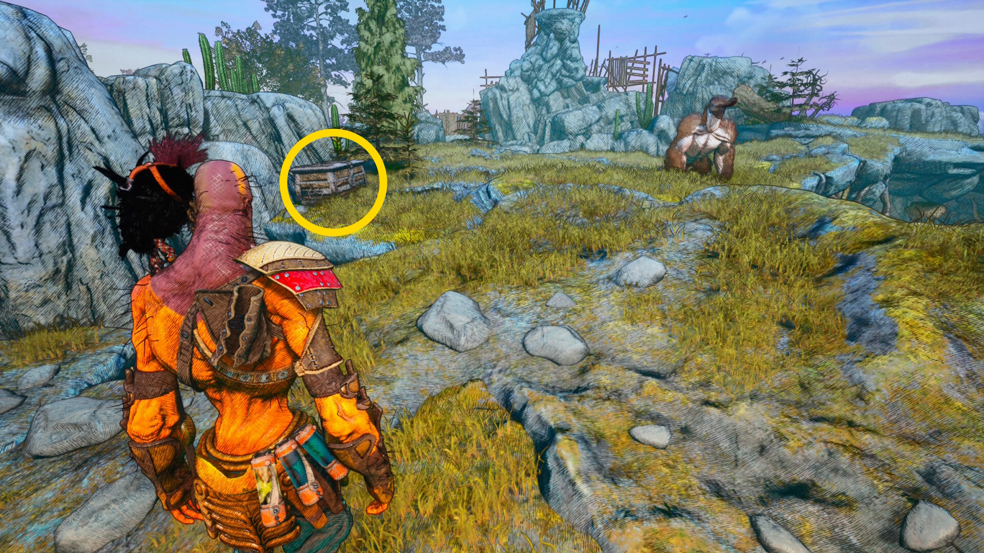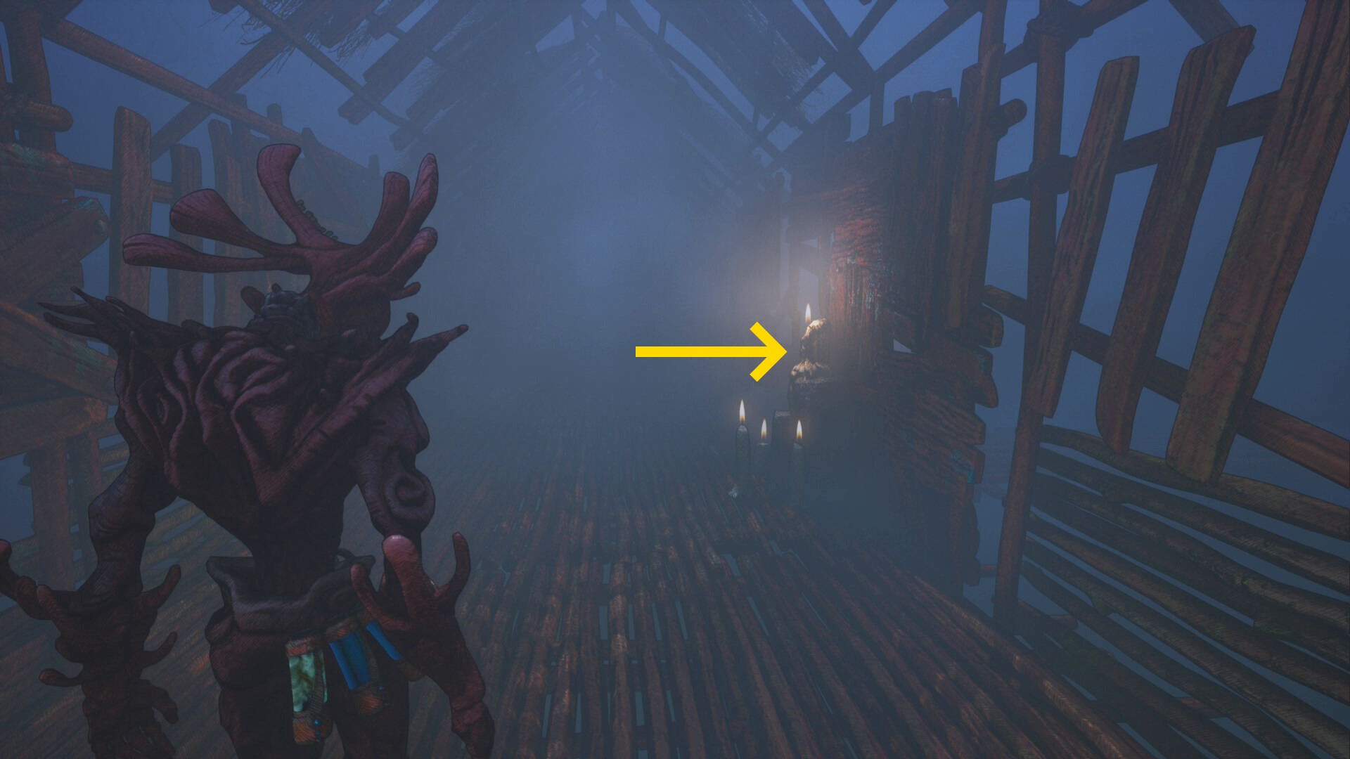 - 3体を殲滅後、奥に進むとブーメラン持ちらが座っていた小さな椅子が見えてくる
