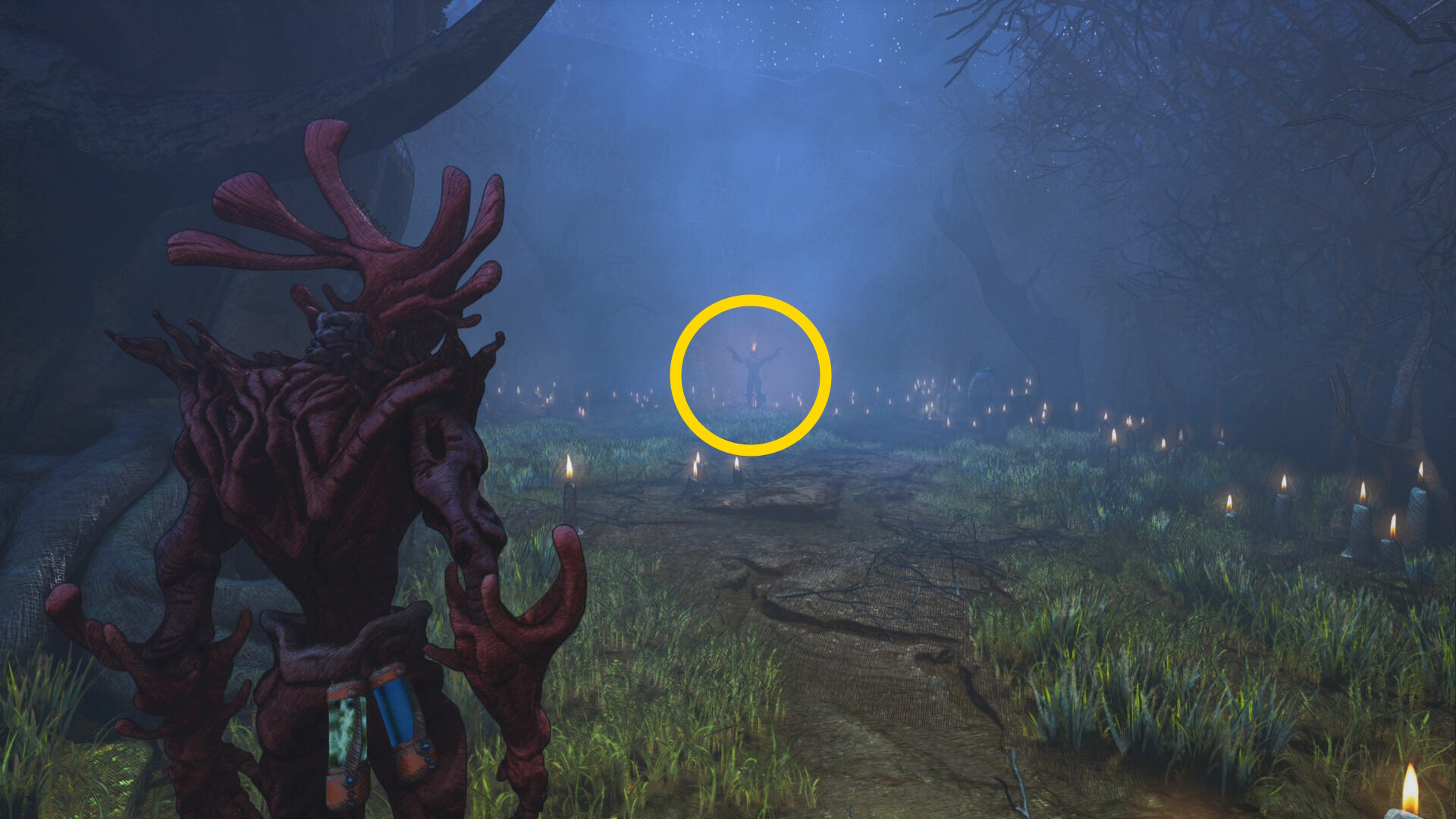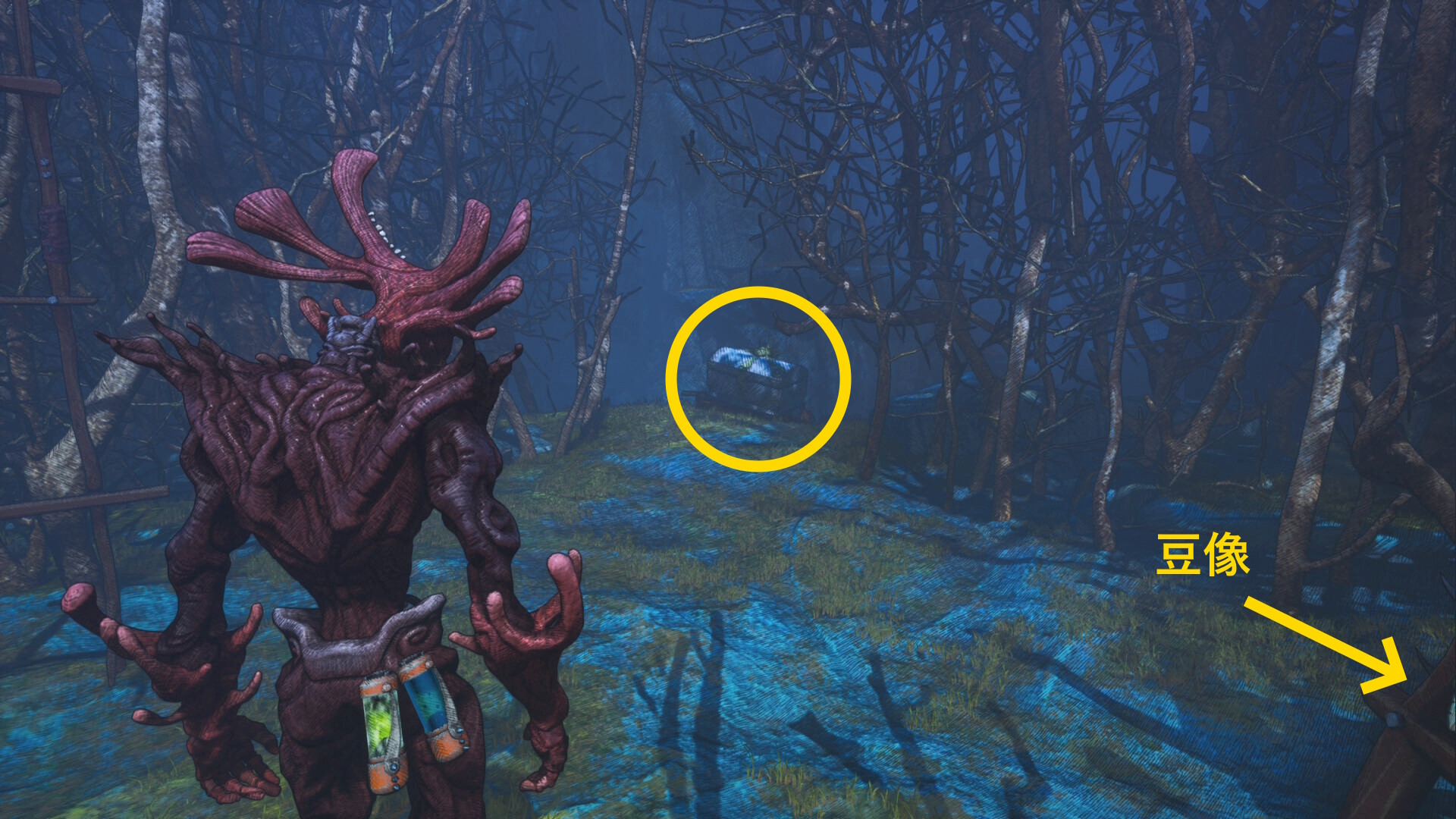 - 夜になると奥に「悪夢のマタキ・ザ・ビホルダー」が出現している